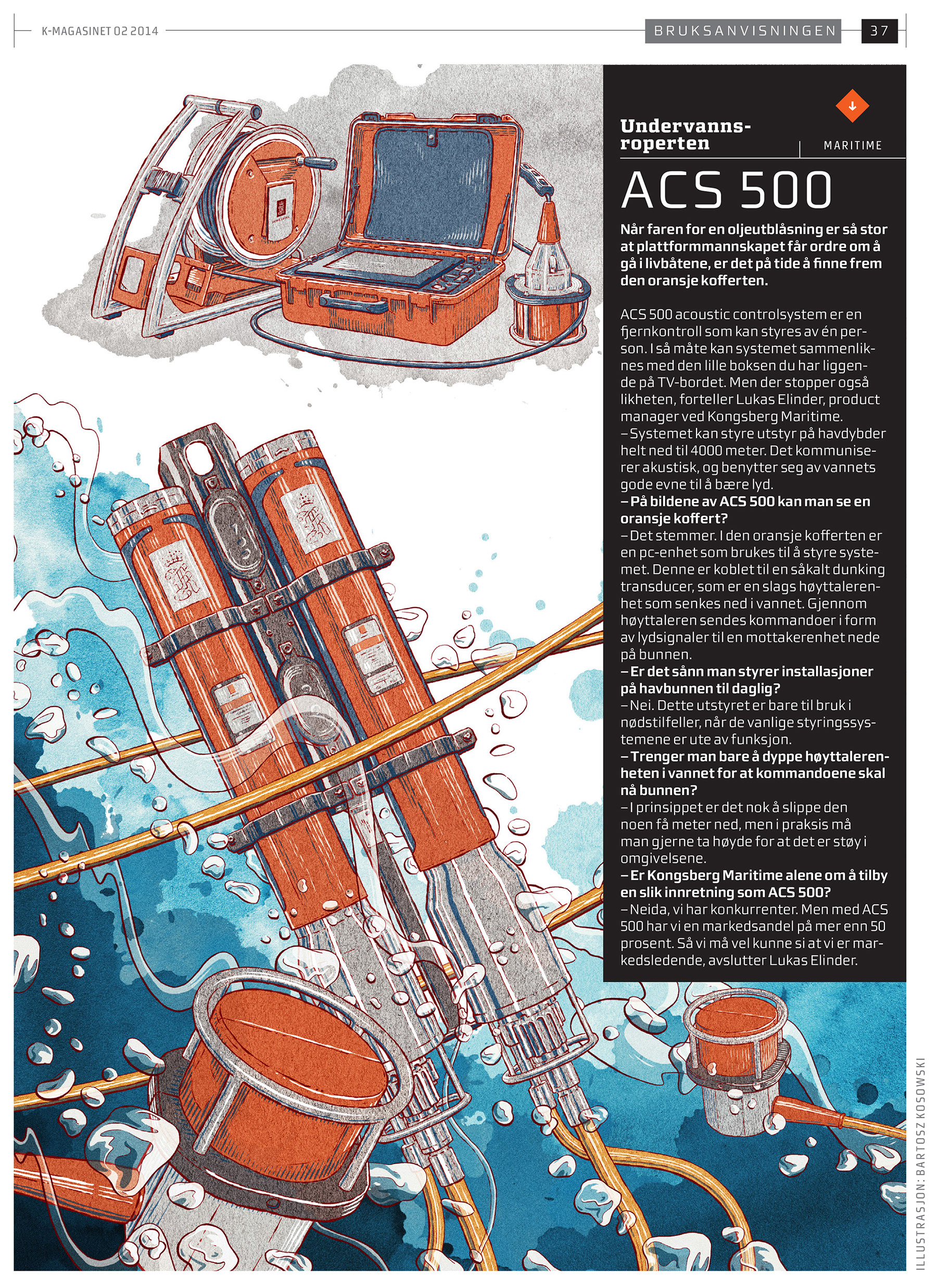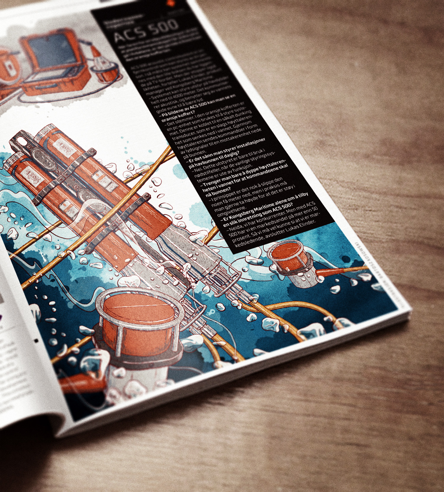 A product illustration of Acoustic Control System 500 for Kongsberg's magazine.