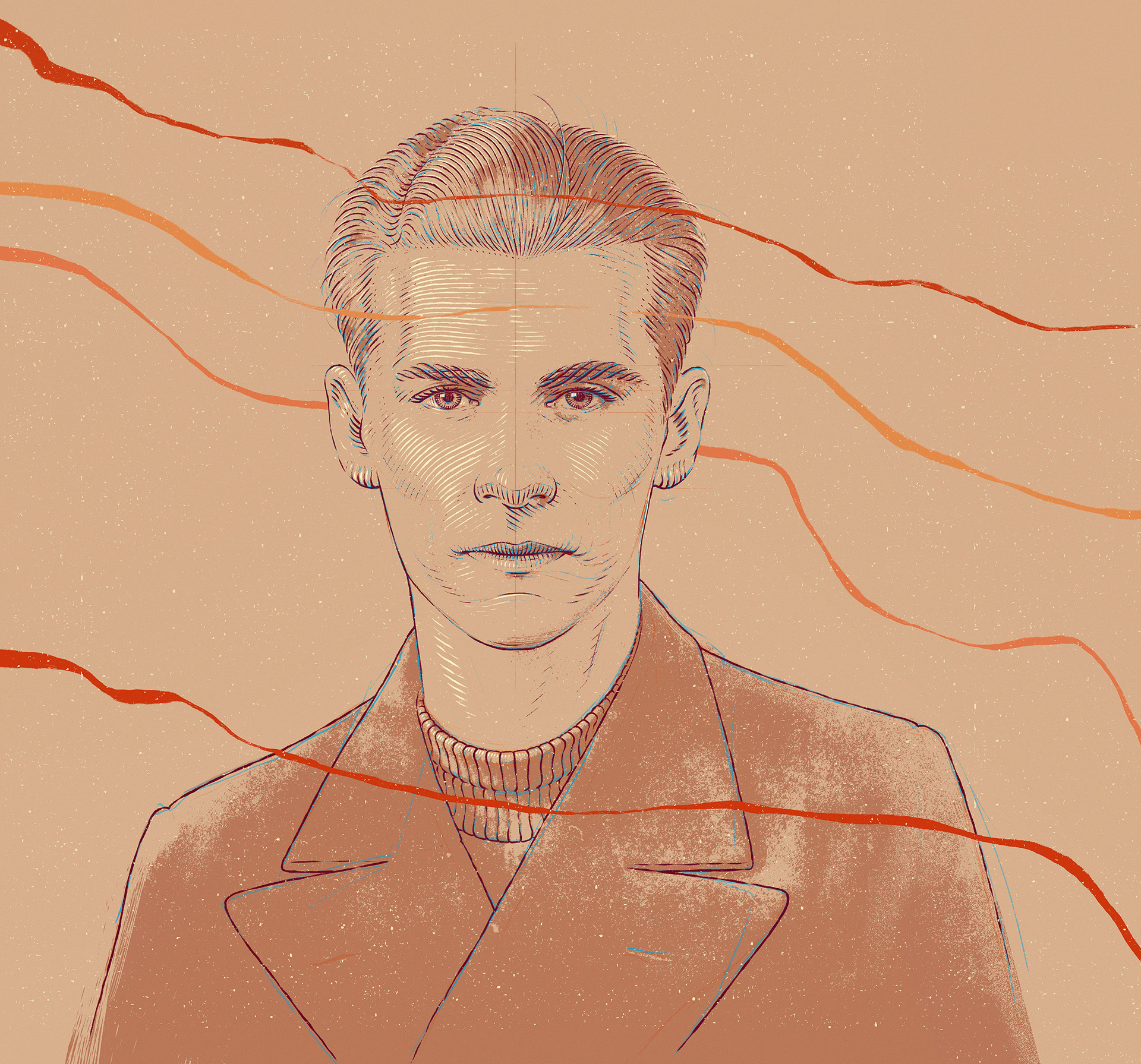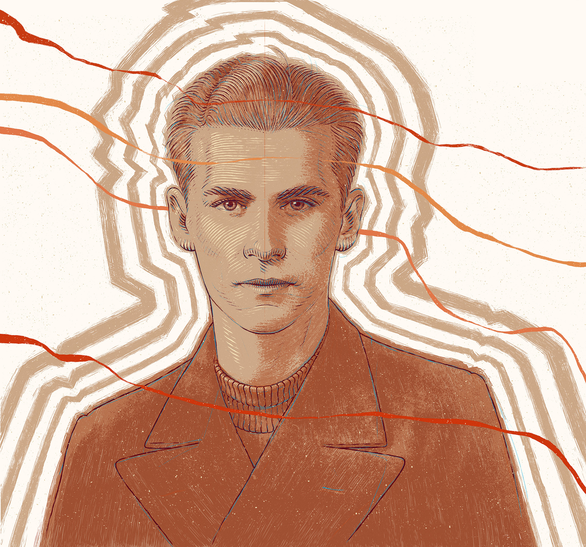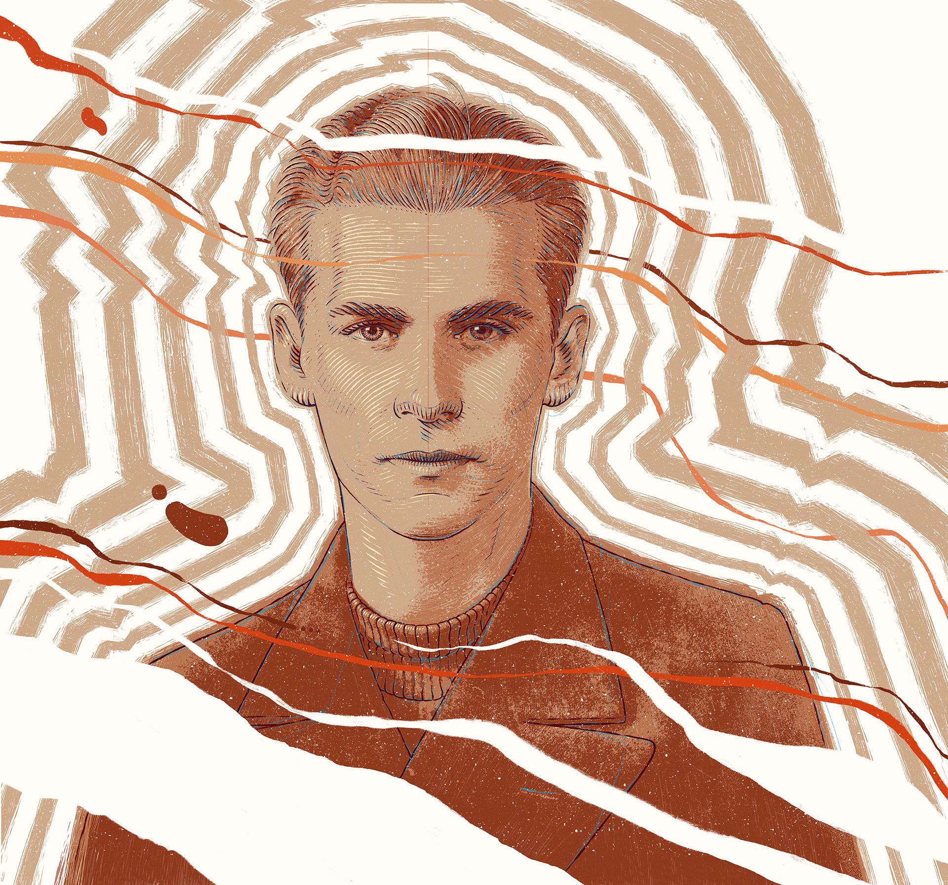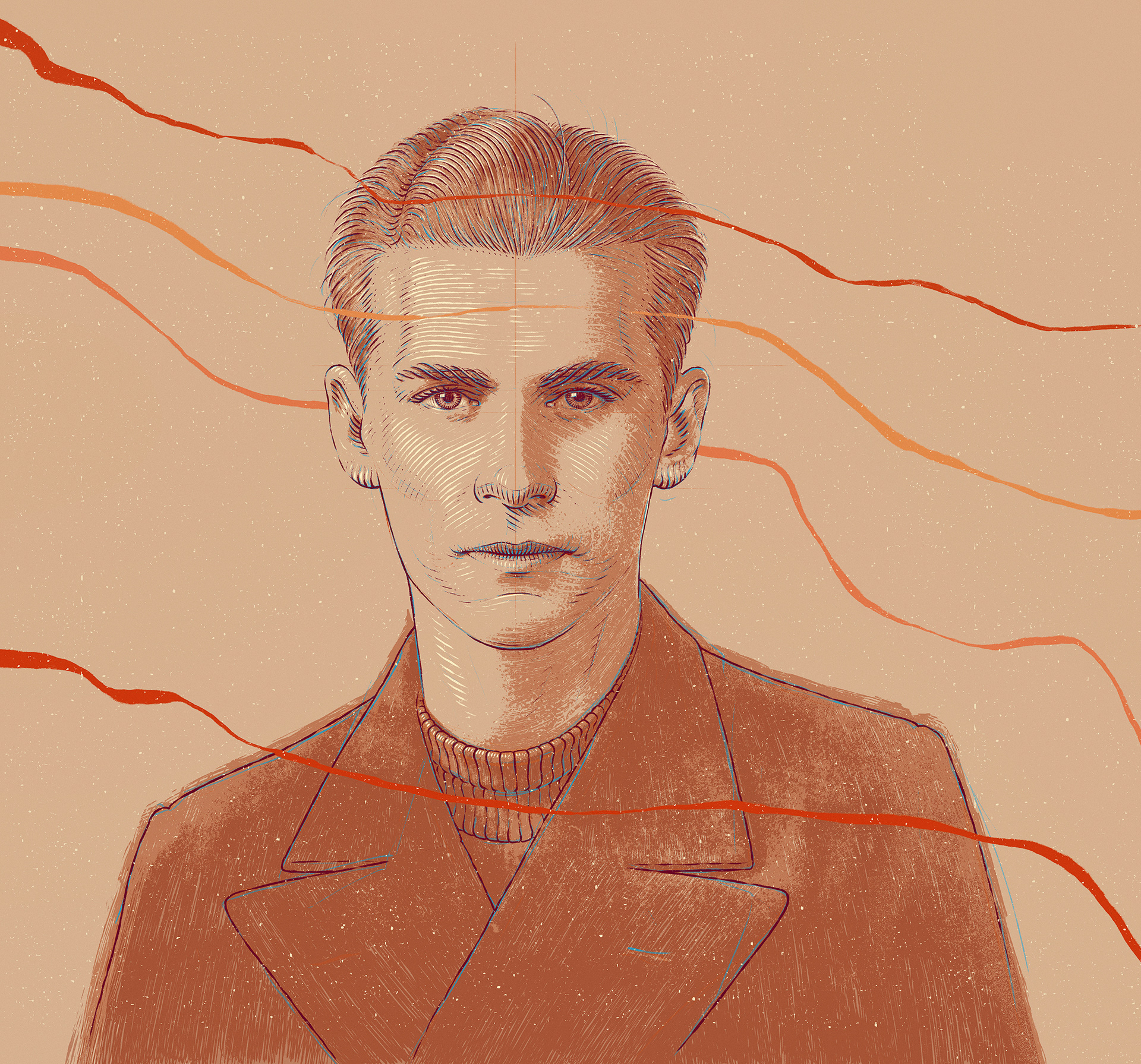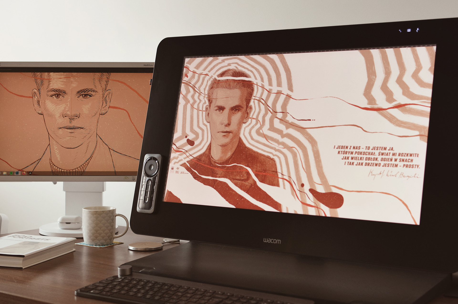 A mural illustration depicting polish poet Krzysztof Kamil Baczynski.