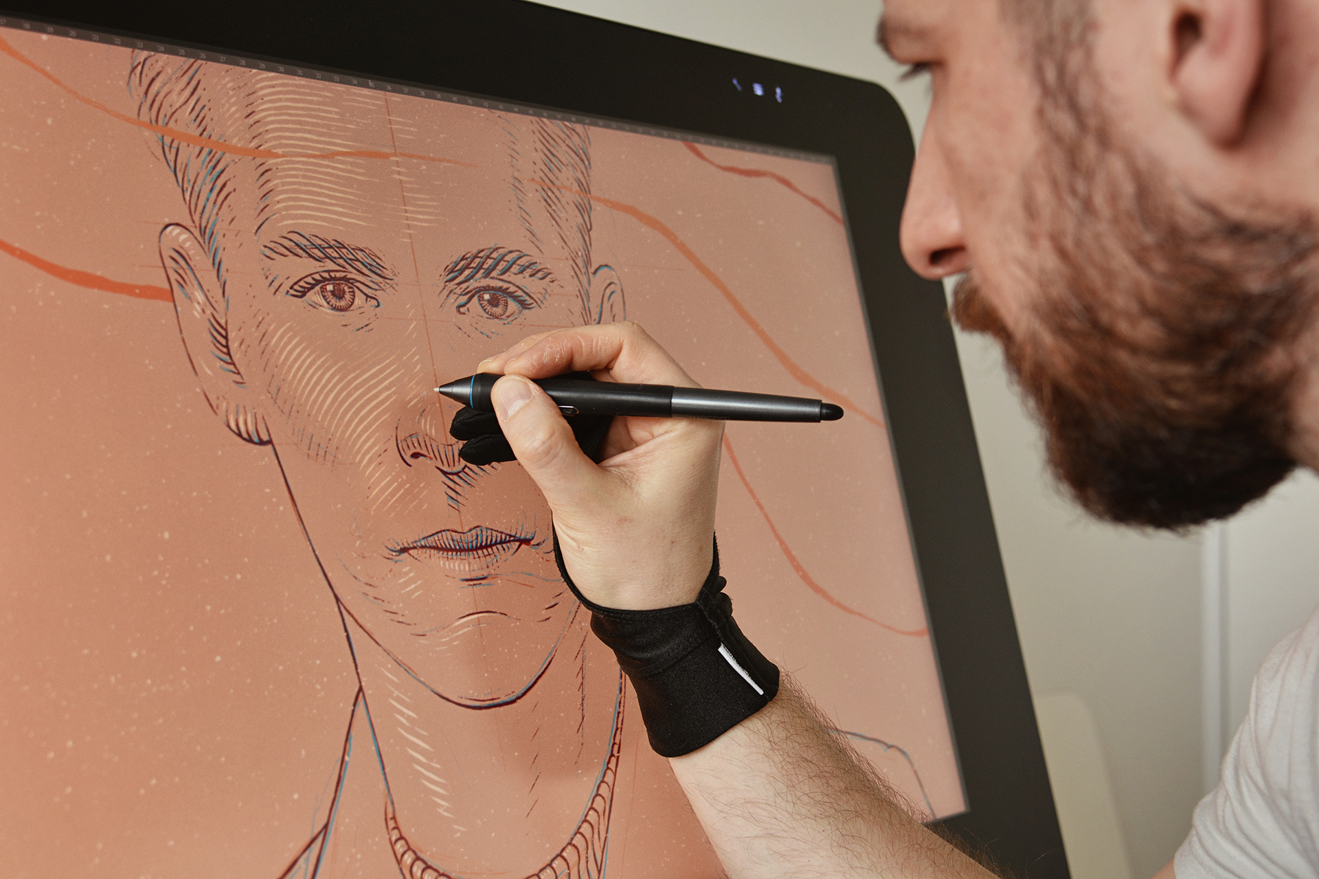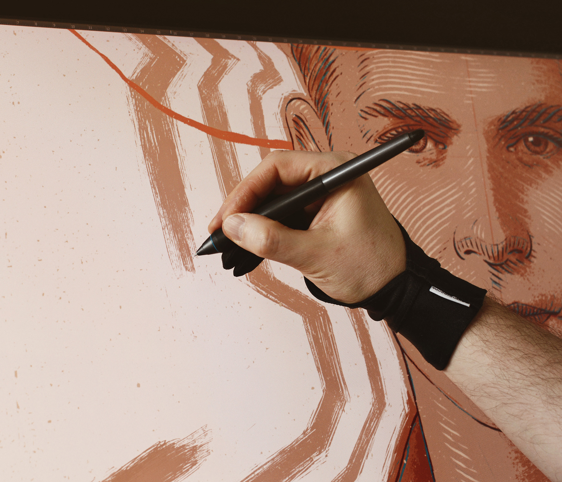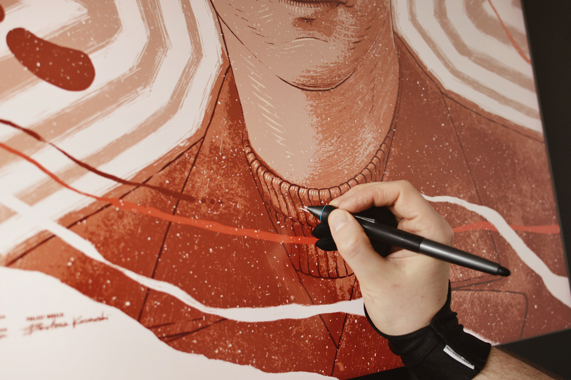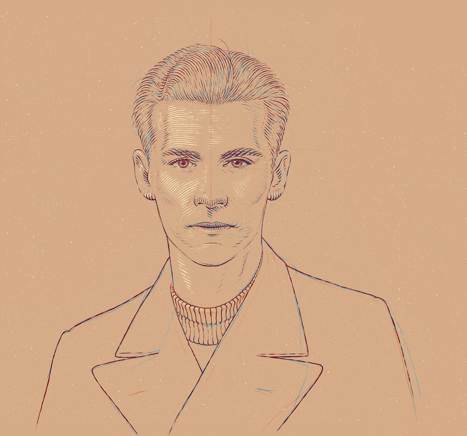 A mural illustration depicting polish poet Krzysztof Kamil Baczynski.