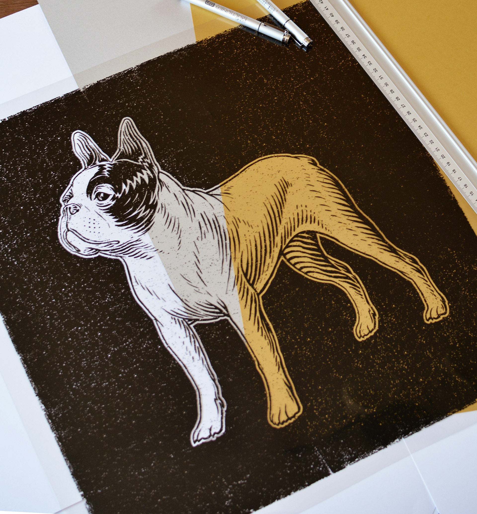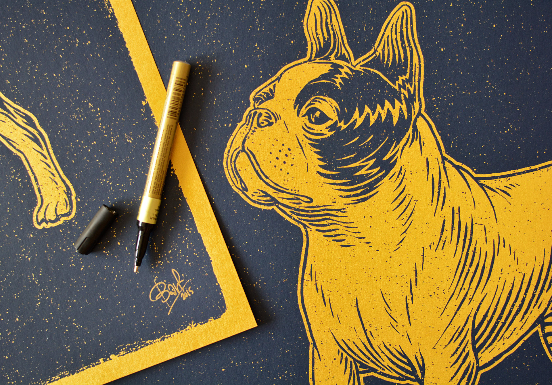 1 colour screen print printed on 285gr Stardream Gold and Silver metallic paper.