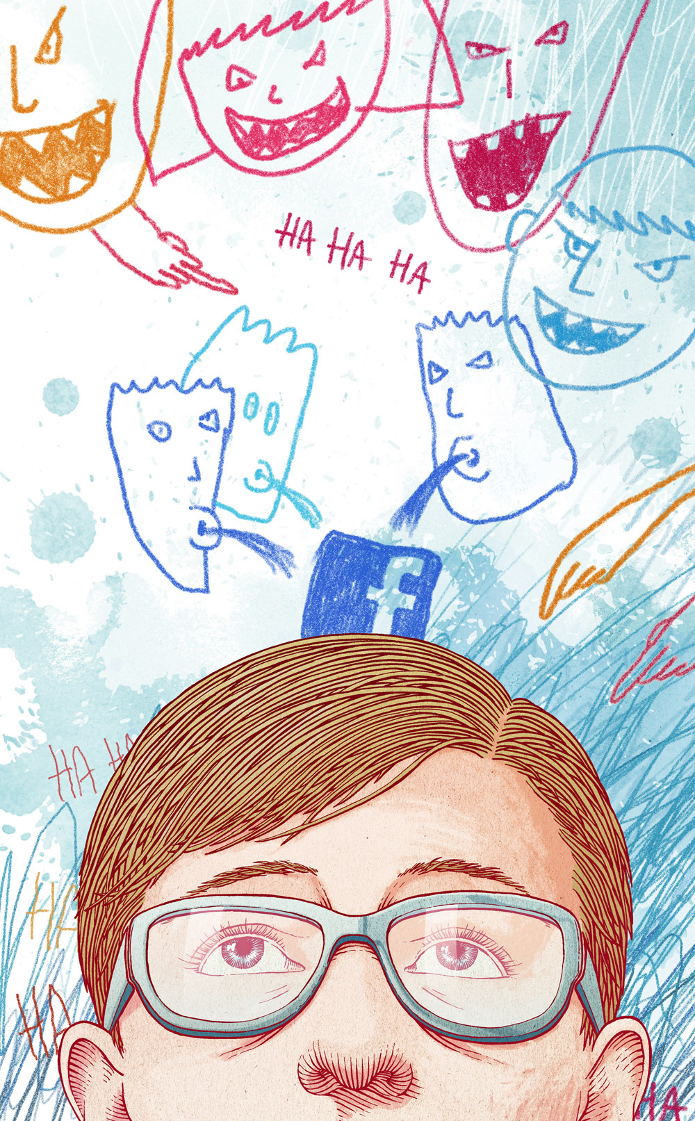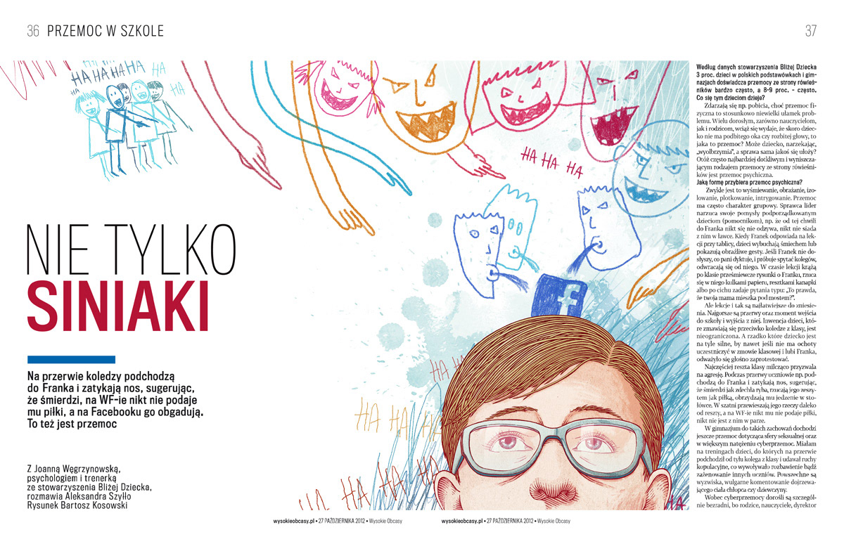 An illustration for the article about bullying. Published in "Wysokie Obcasy" magazine.