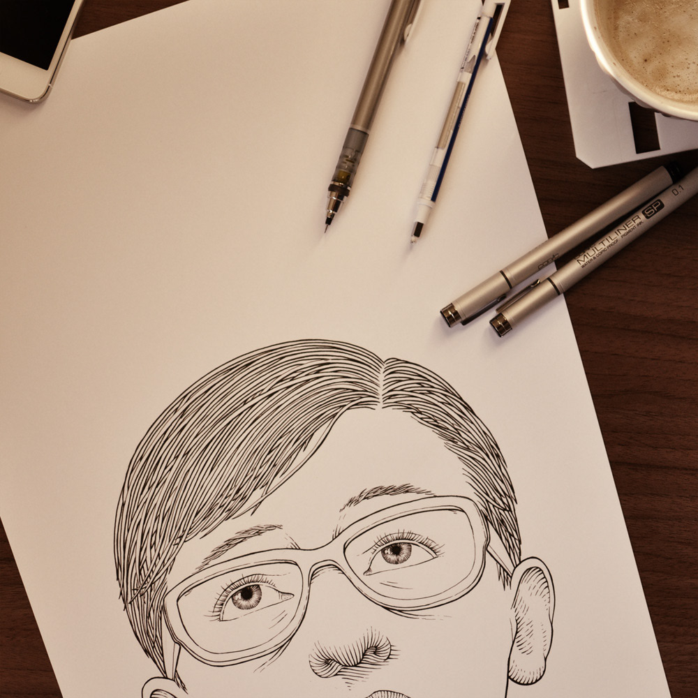 The illustration was hand drawn with pencil, inked with Copic Multiliners and coloured in PS.