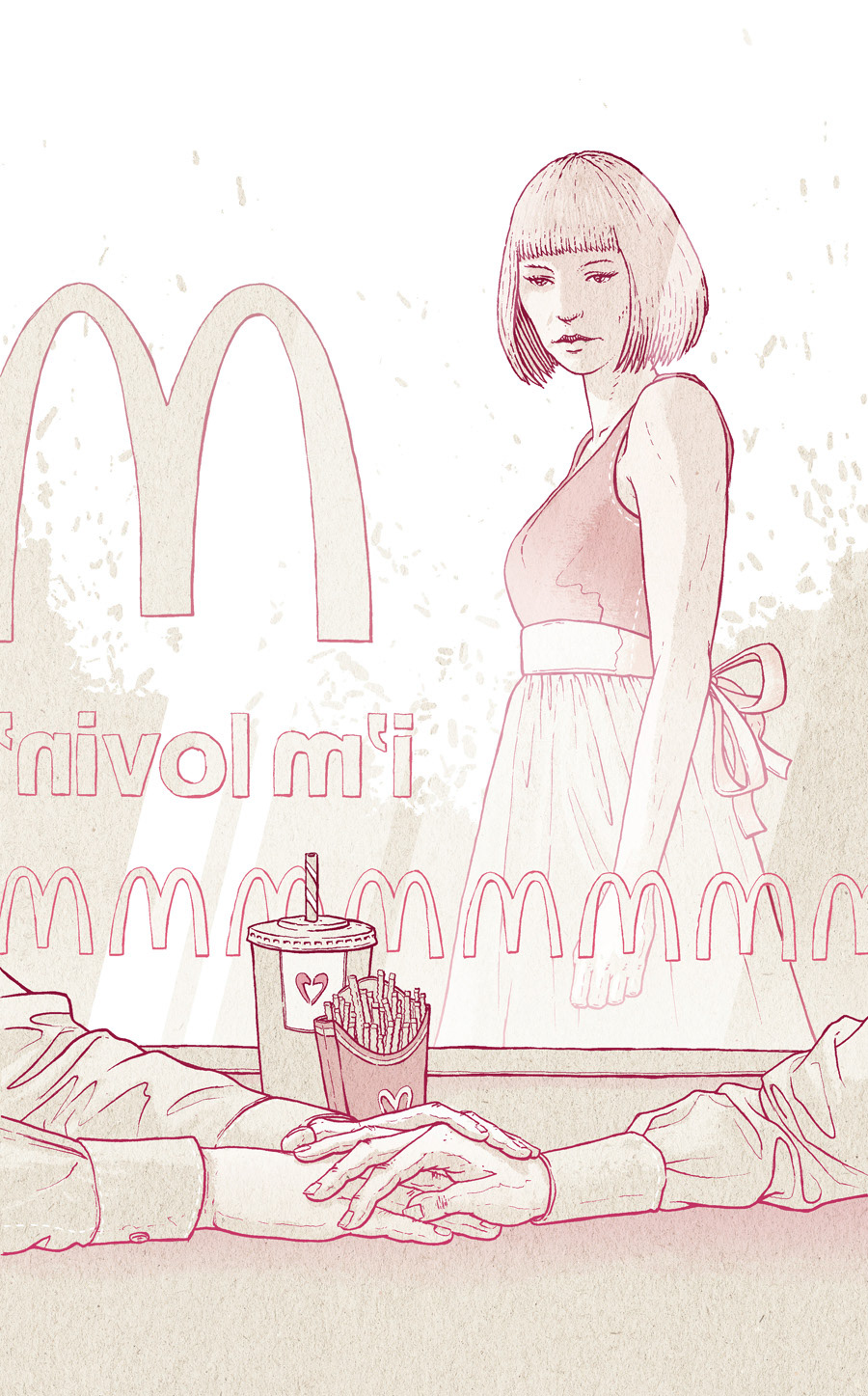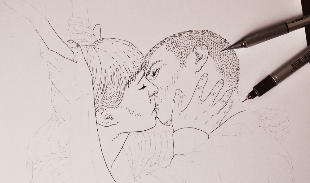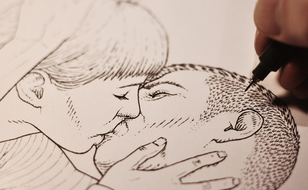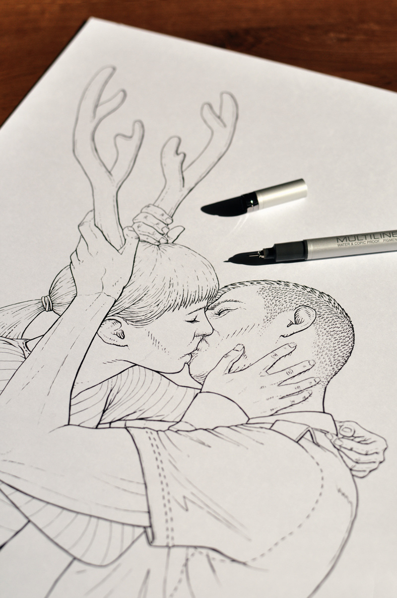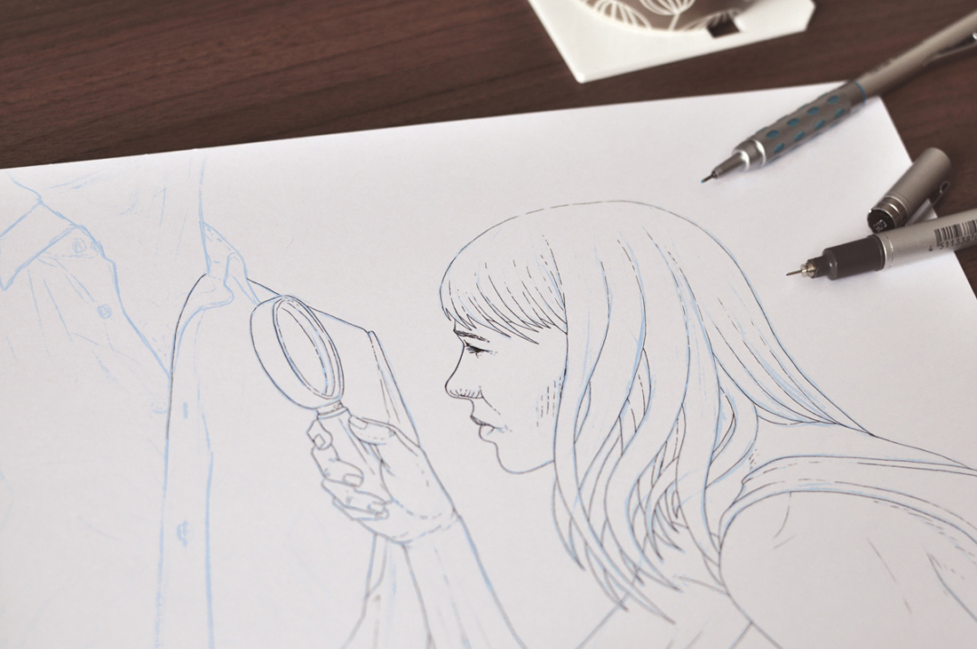 The illustrations were hand drawn with pencil, inked with Copic Multiliner SP and coloured in PS.