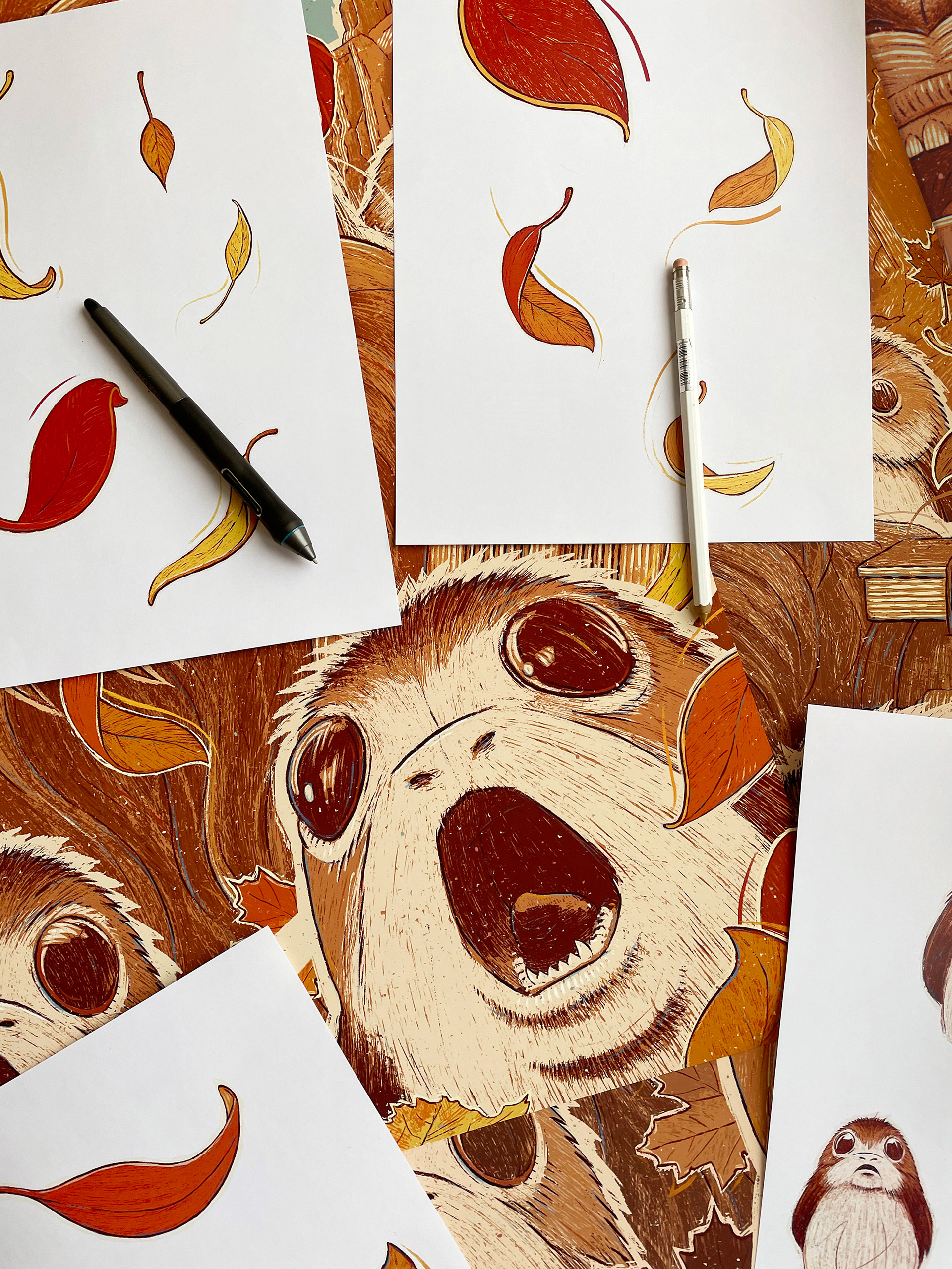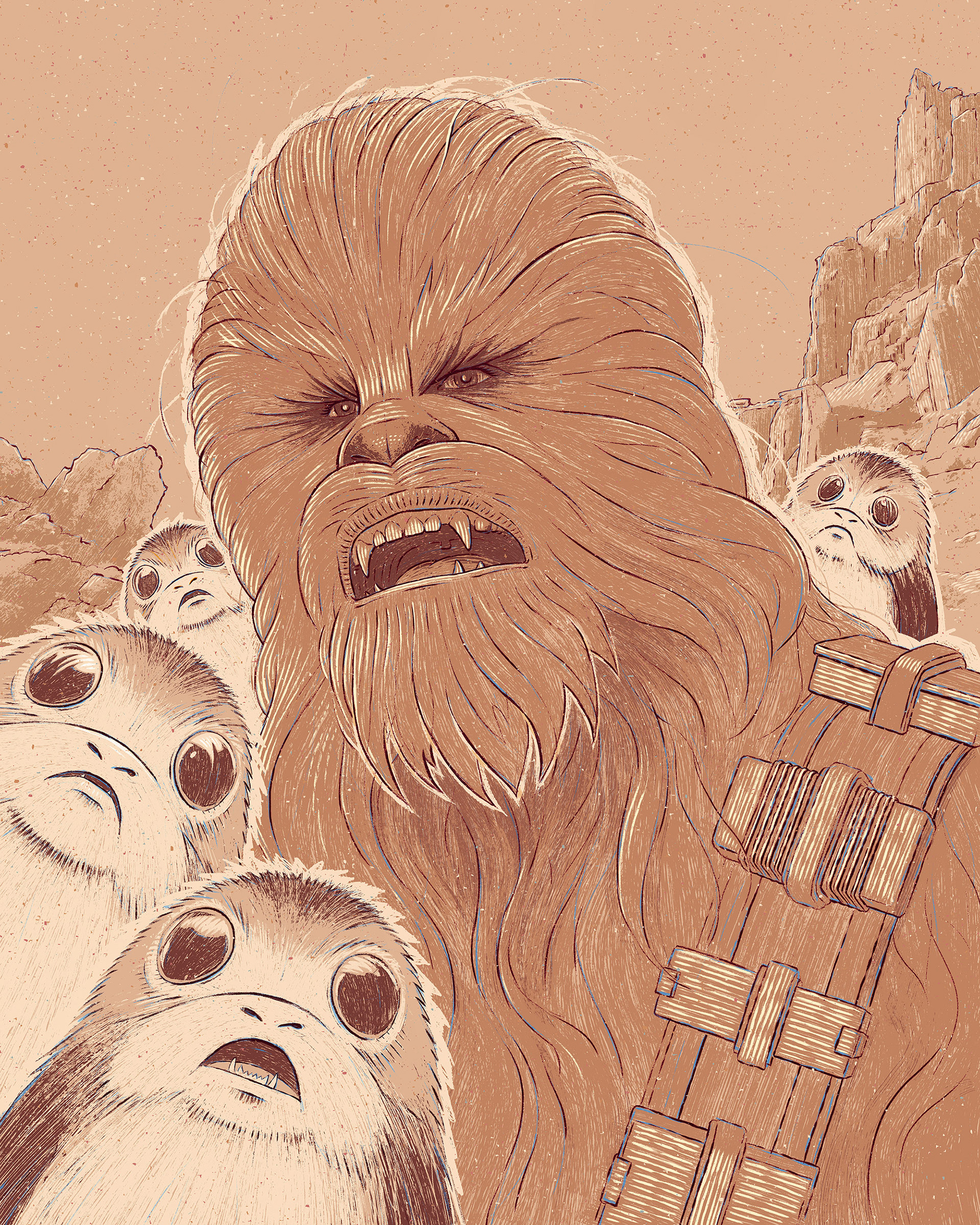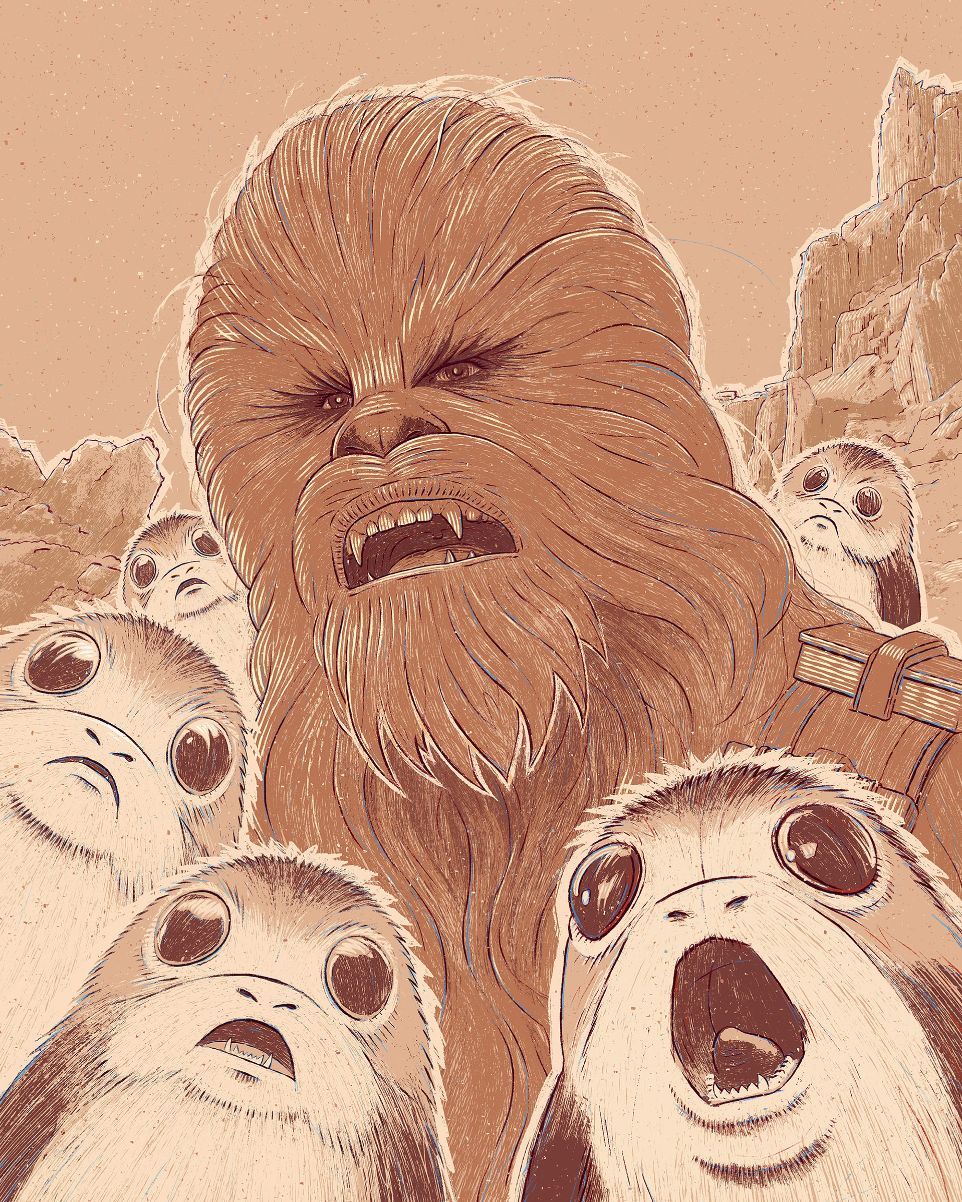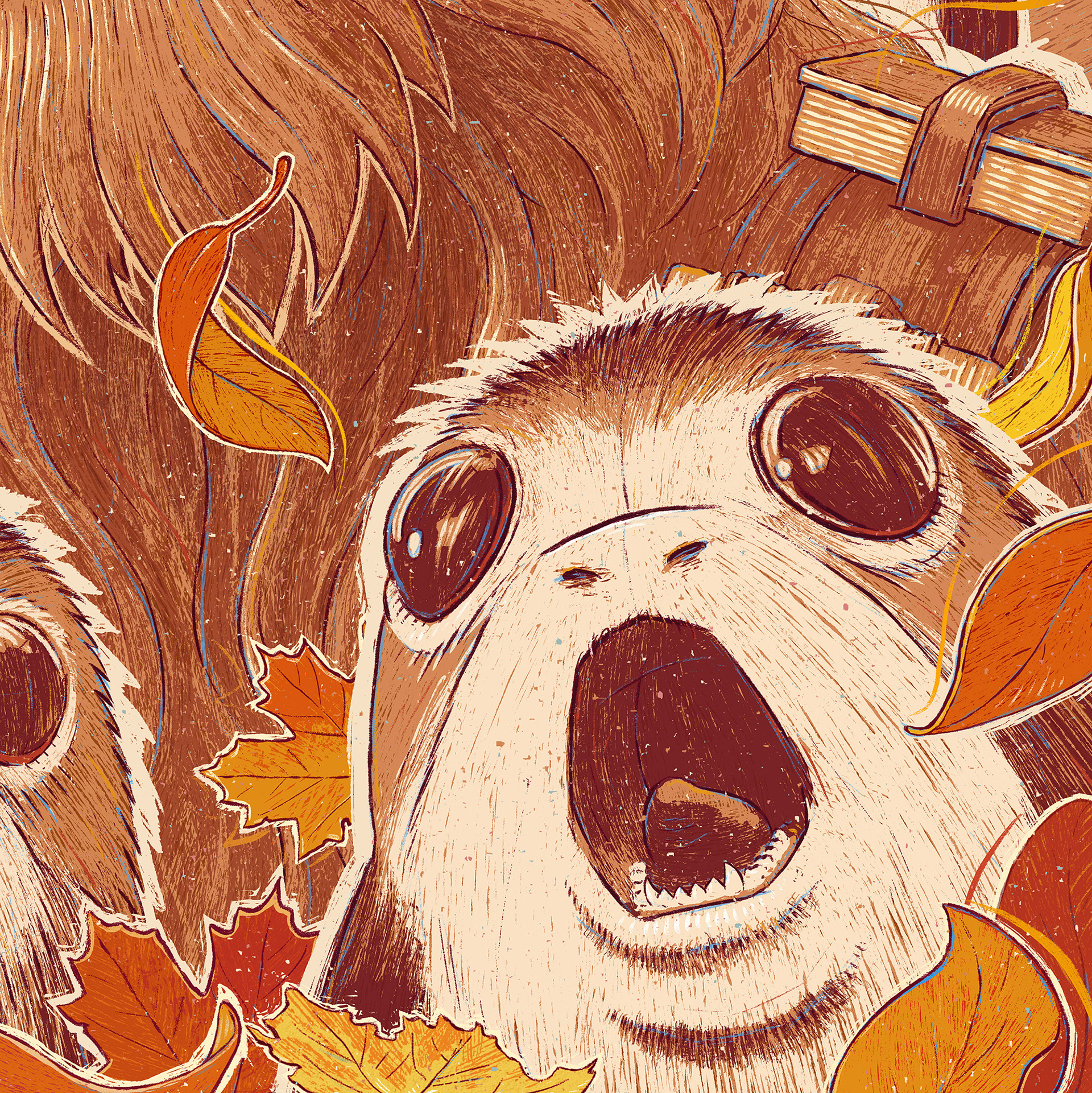 Thanksgiving Chewie and Porgs illustration for Star Wars (Disney / LucasArts).