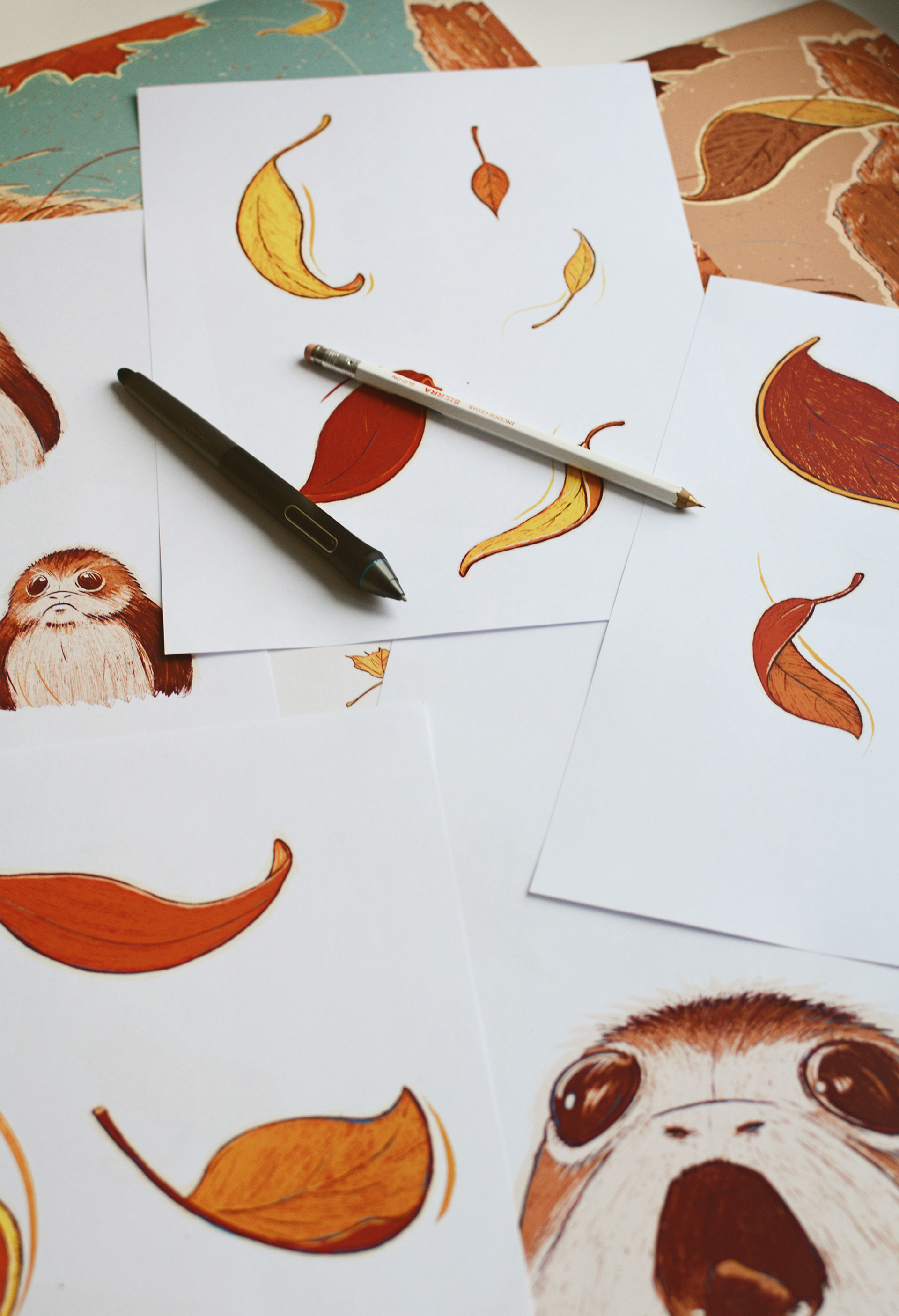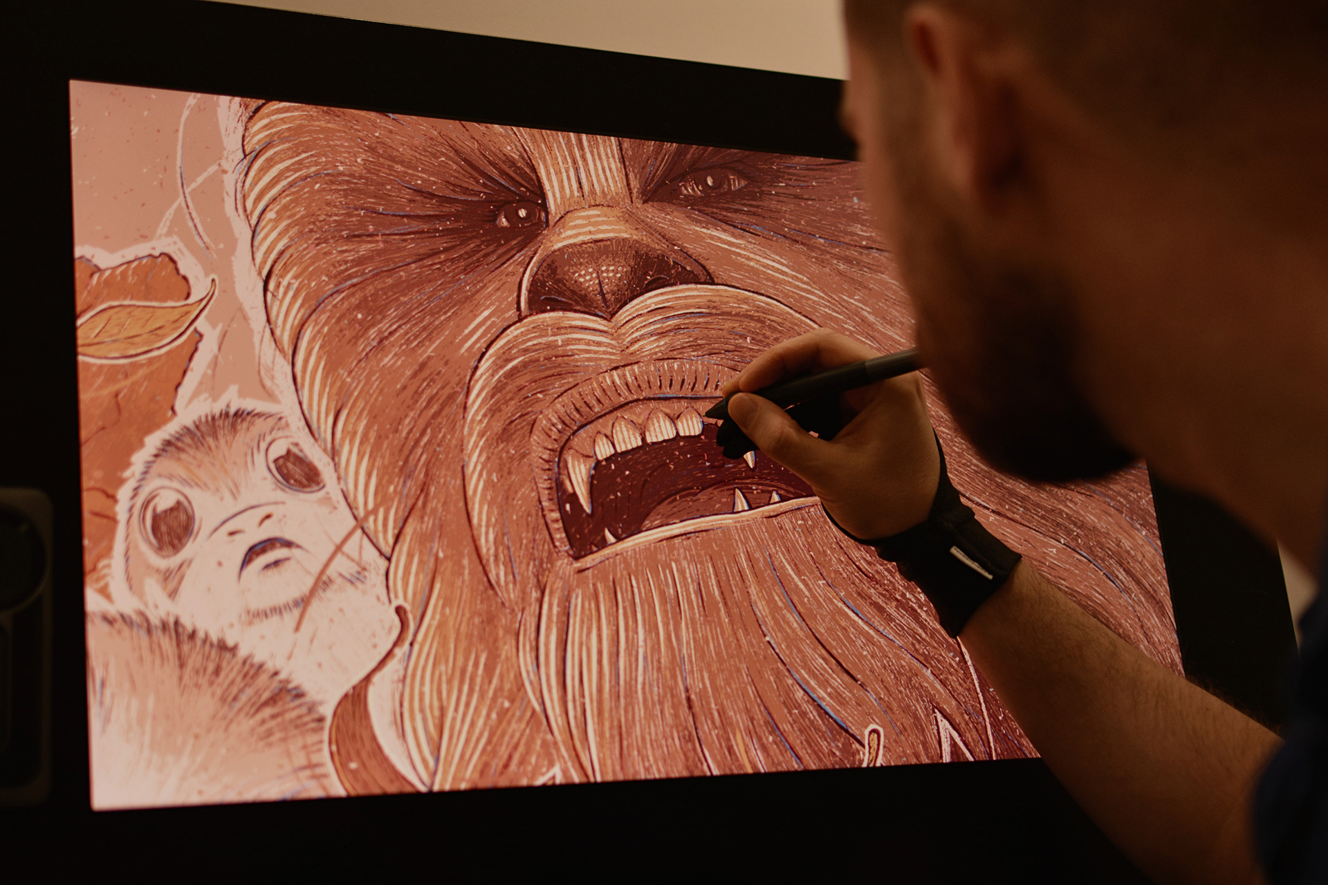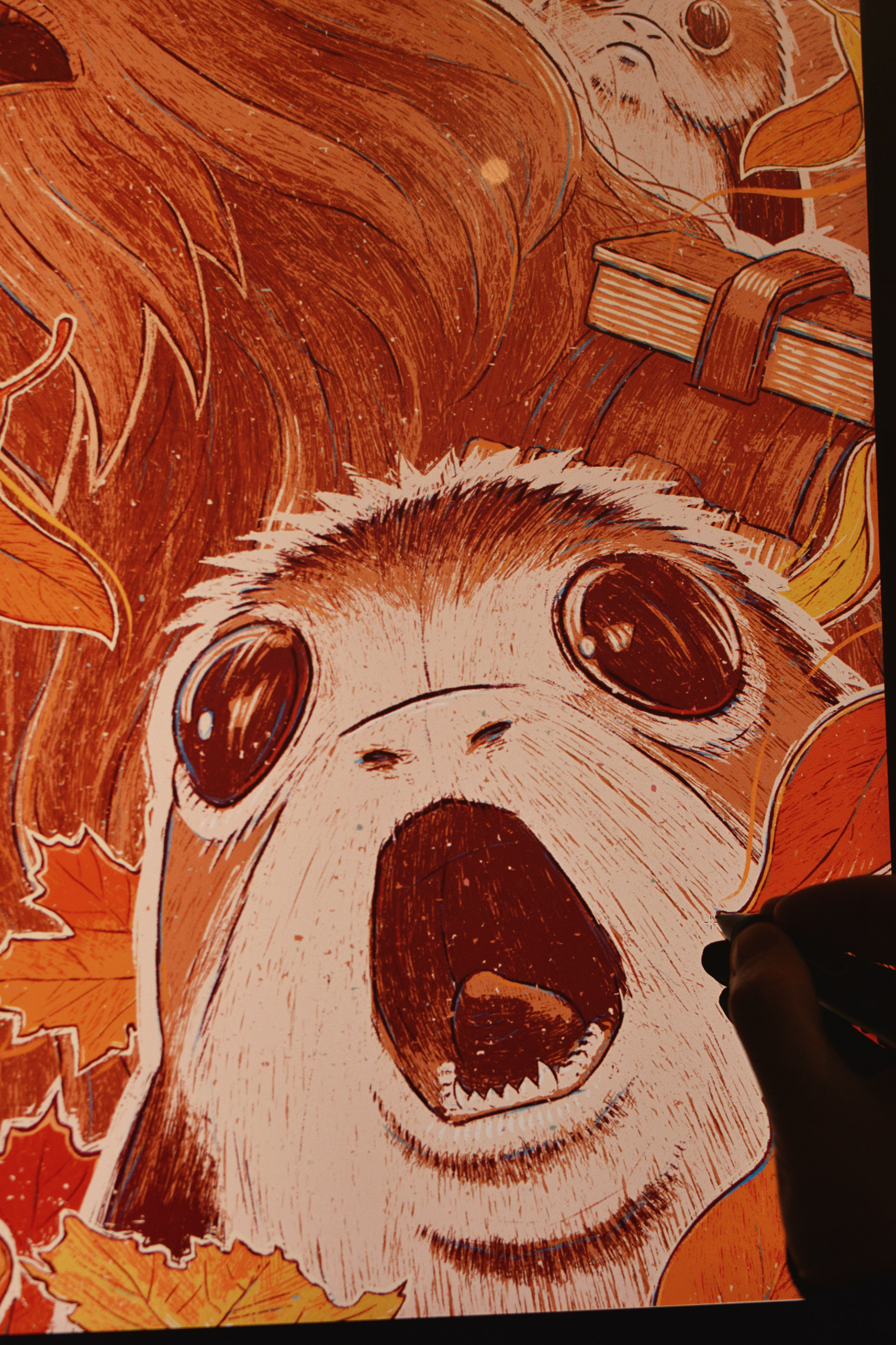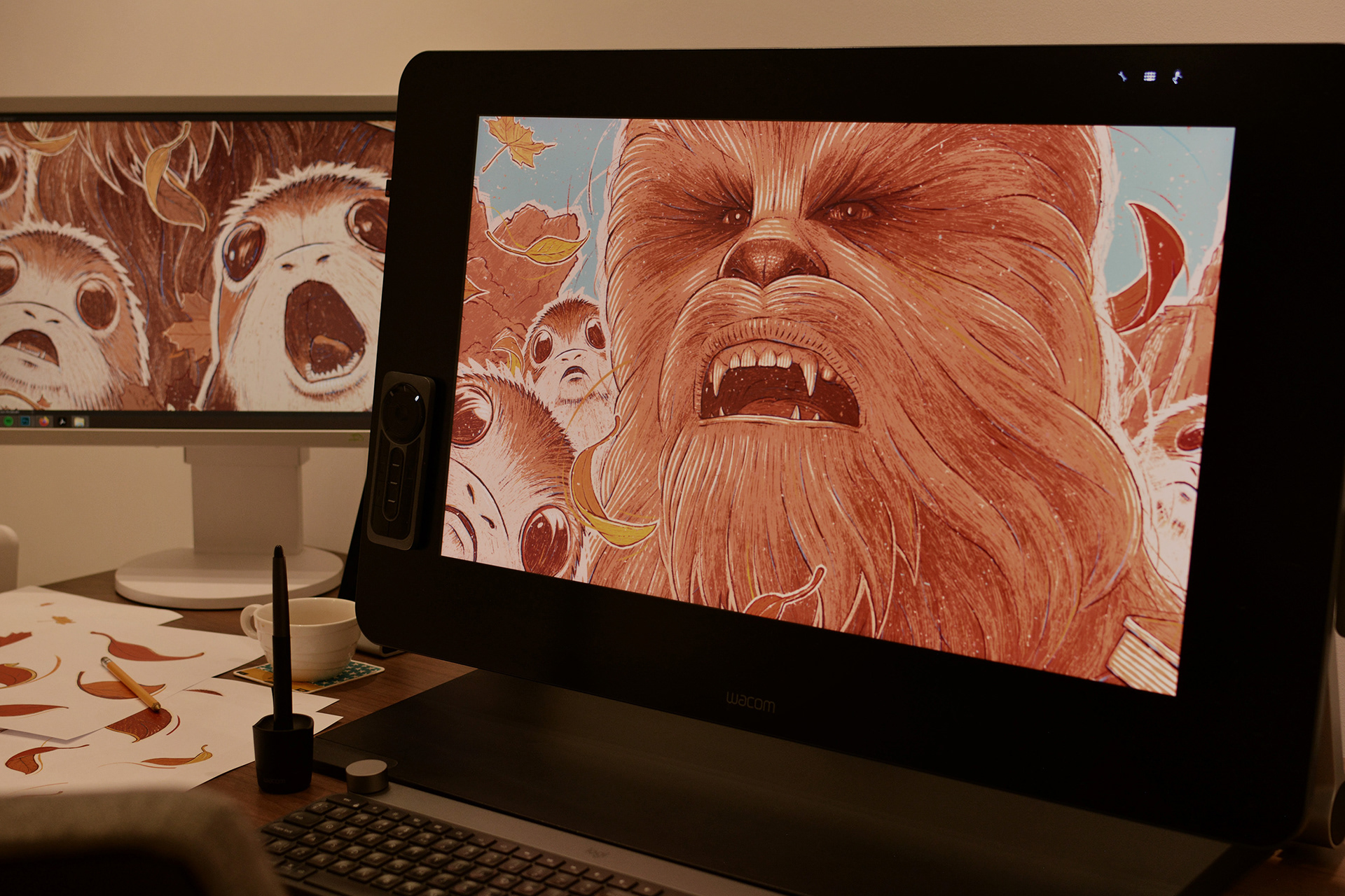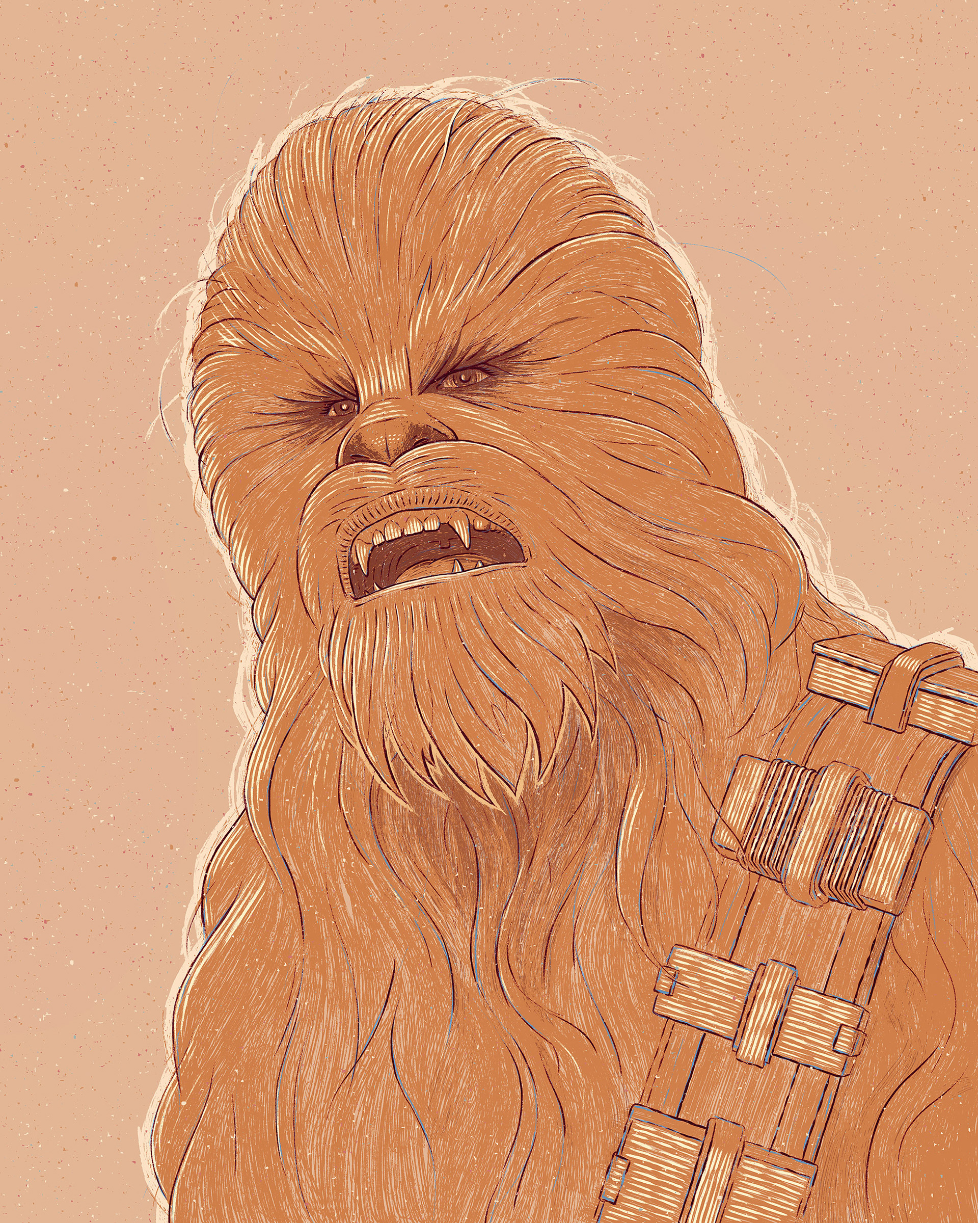 Thanksgiving Chewie and Porgs illustration for Star Wars (Disney / LucasArts).