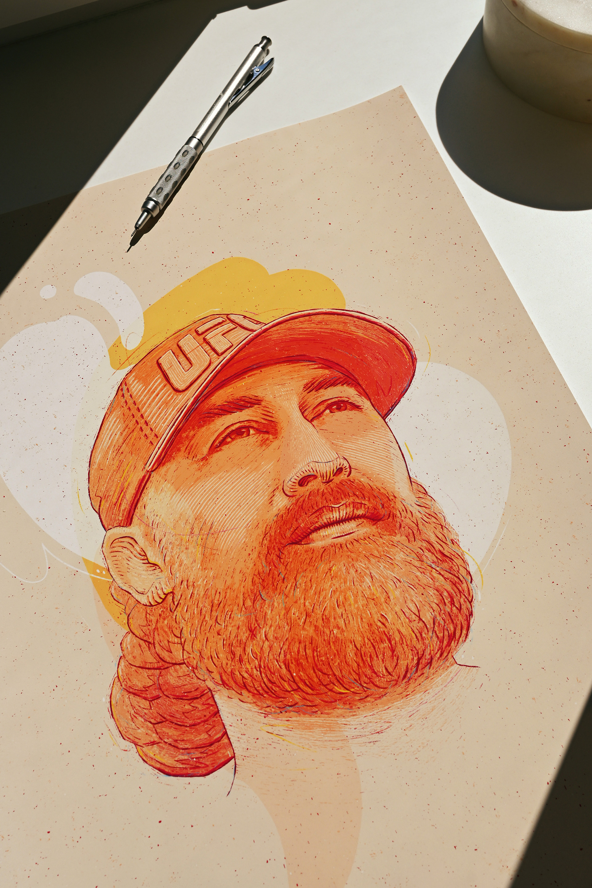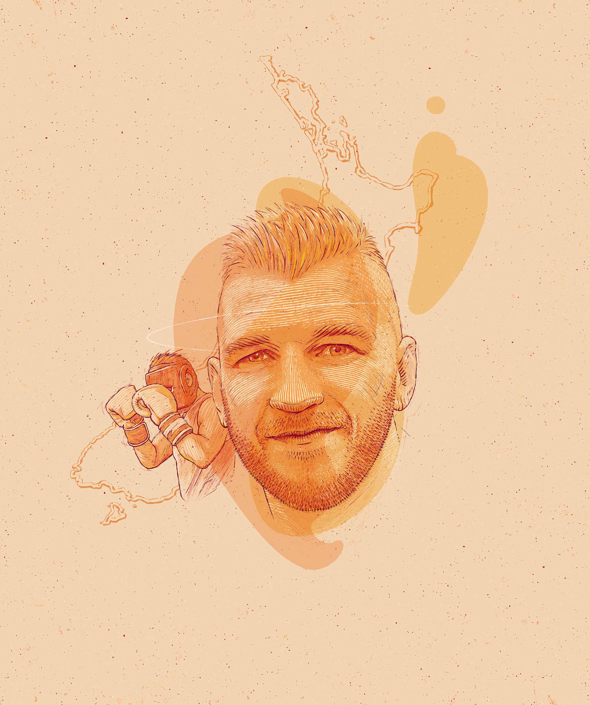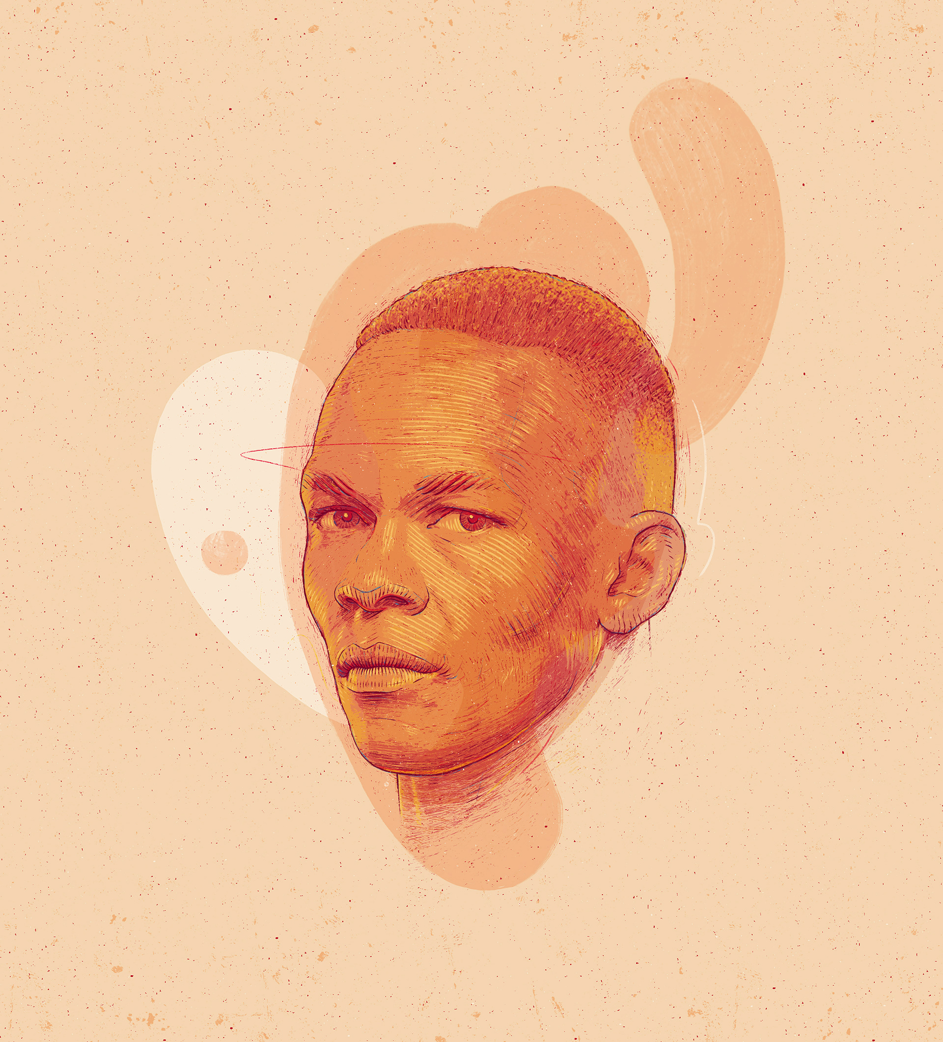 Portraits of Israel Adesanya, Eugene Bareman, Dan Hooker and Dudey (Kristina Avsarkisova). The work was commissioned by Europop and Ad Black Sea Festival for the article about Dudey's trip to New Zealand where she talked to Israel, Eugene and Dan.