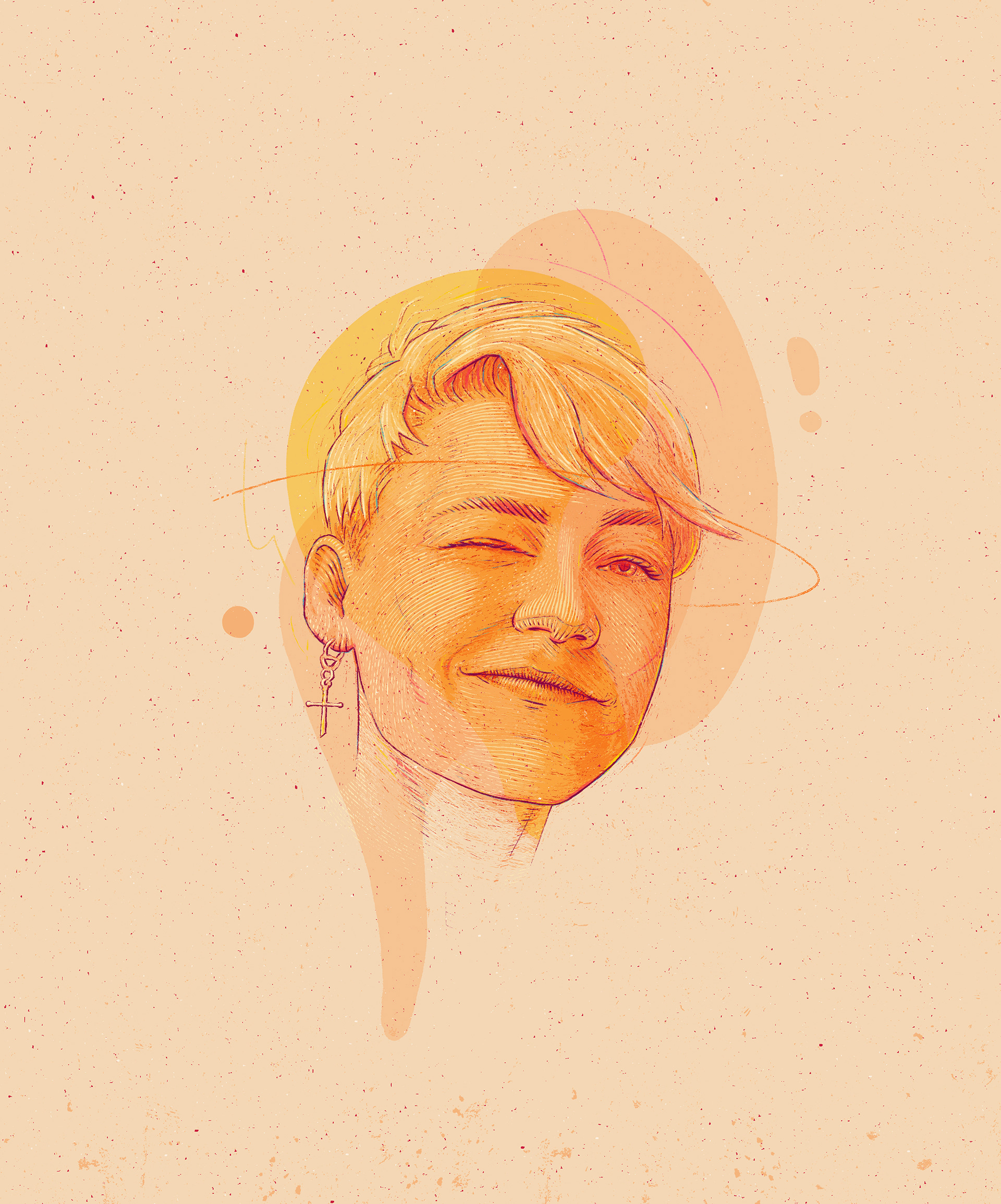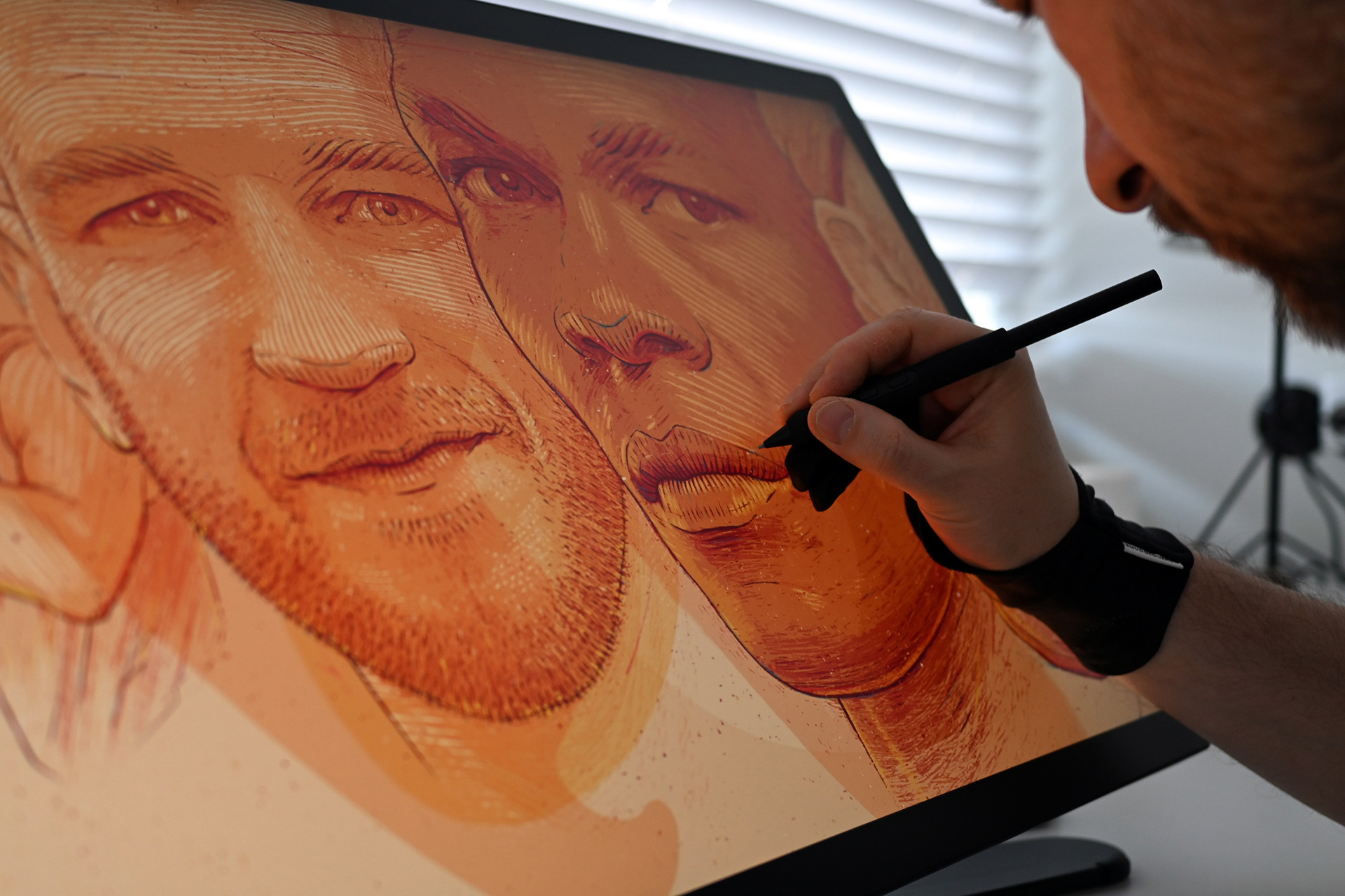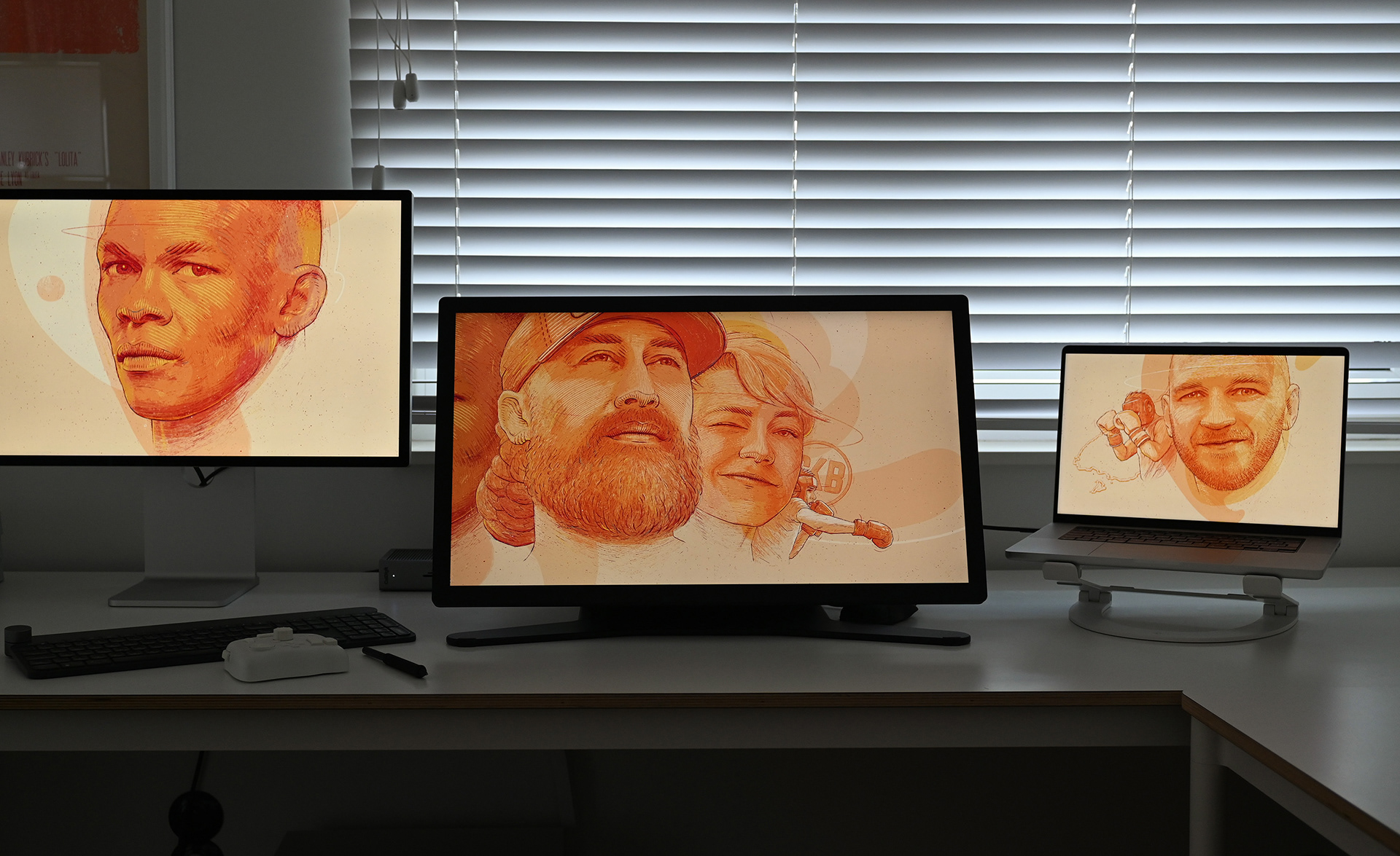 Portraits of Israel Adesanya, Eugene Bareman, Dan Hooker and Dudey (Kristina Avsarkisova). The work was commissioned by Europop and Ad Black Sea Festival for the article about Dudey's trip to New Zealand where she talked to Israel, Eugene and Dan.