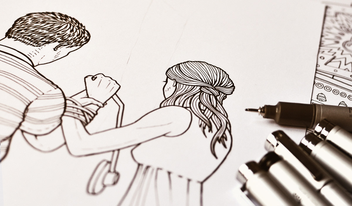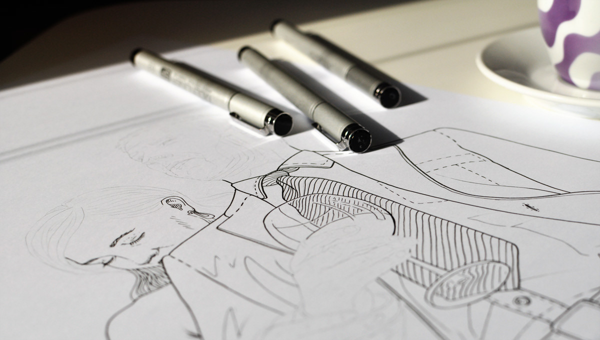 The illustration was hand drawn with pencil, inked with Copic Multiliner SP and coloured in PS.