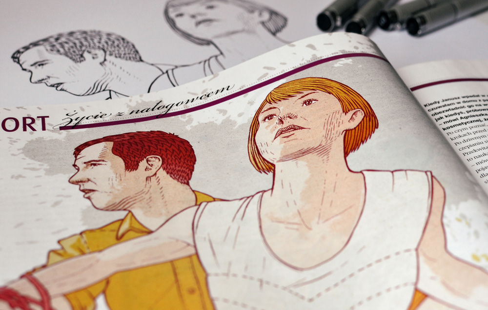 A set of illustration for "Twoj Styl" magazine. The article tells about different forms of co-addiction (sex, gambling, alcoholism).
