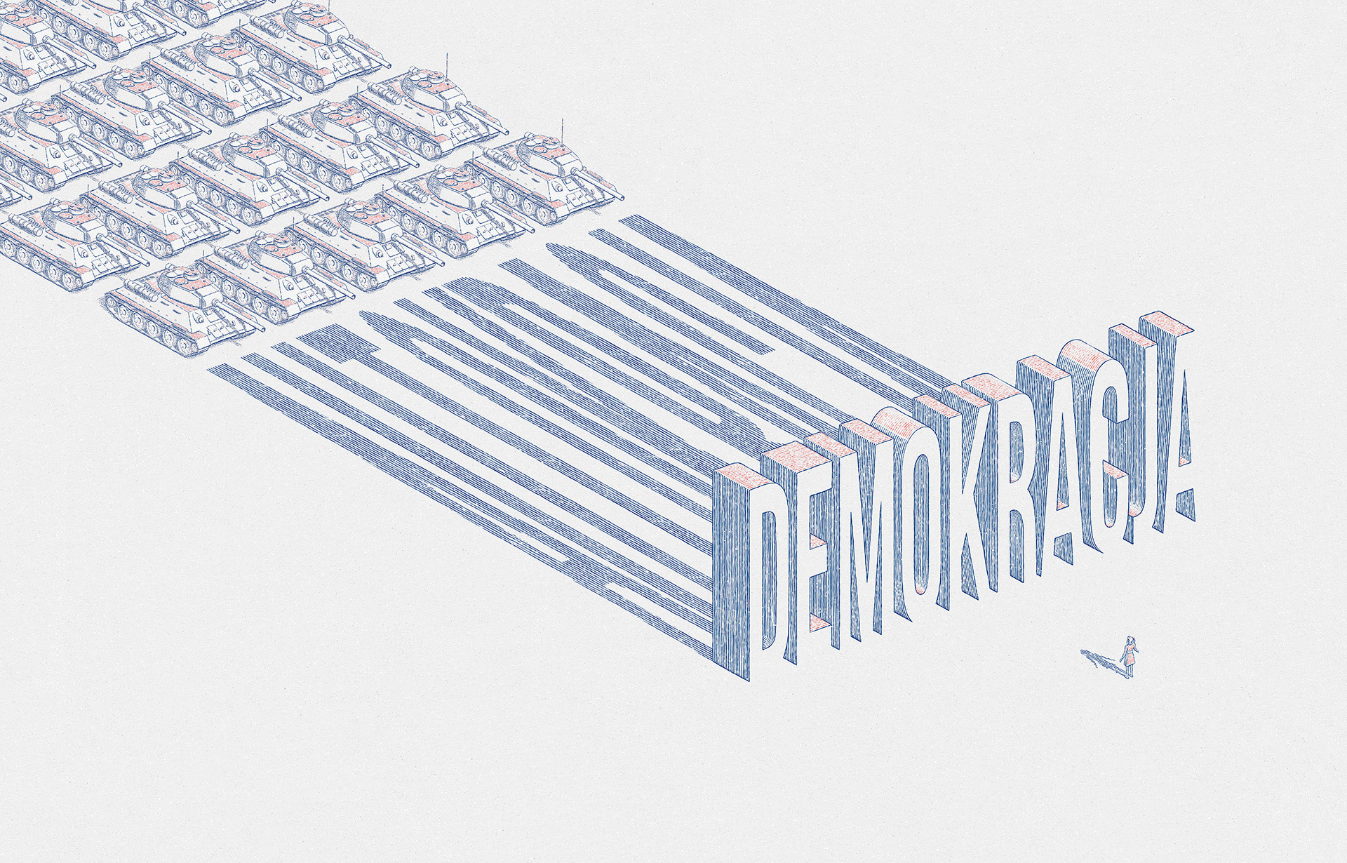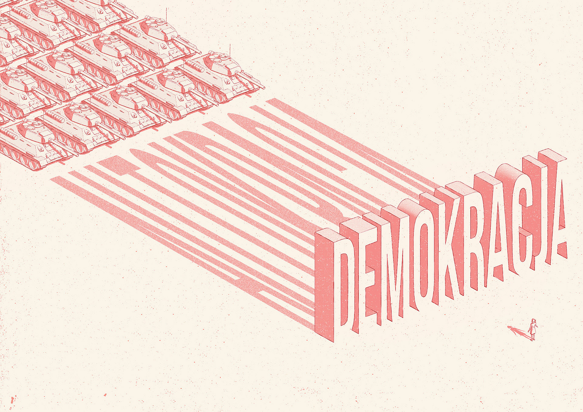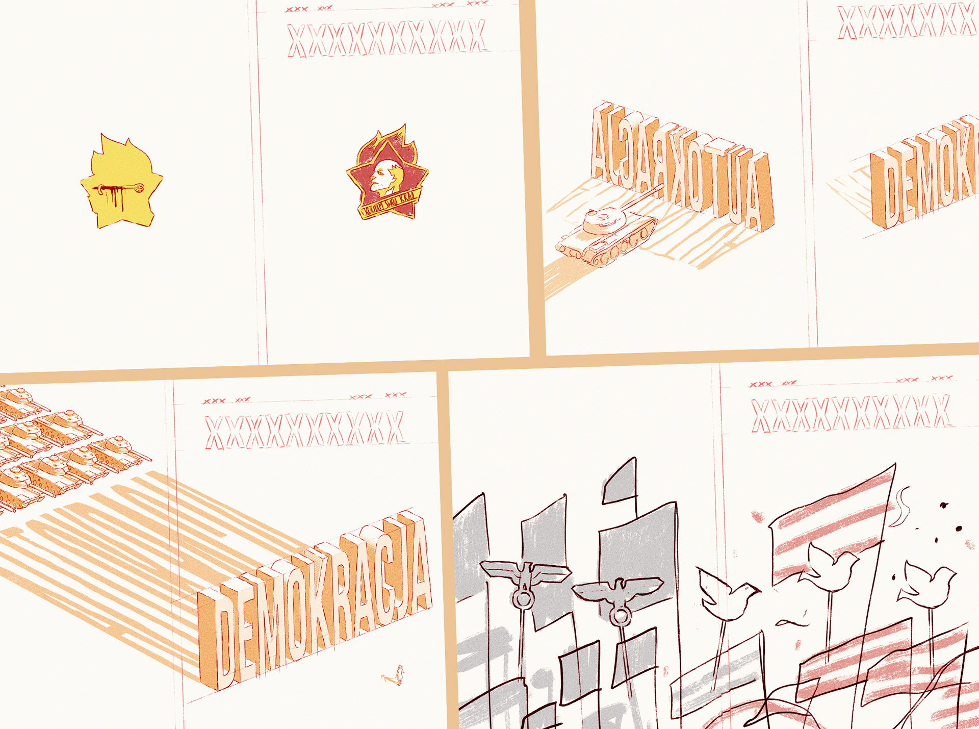 The idea was to use both the front and the back cover and play with the reader by showing the juxtaposition of democracy and autocracy. The whole image is visible only if the you look at the full spread cover.