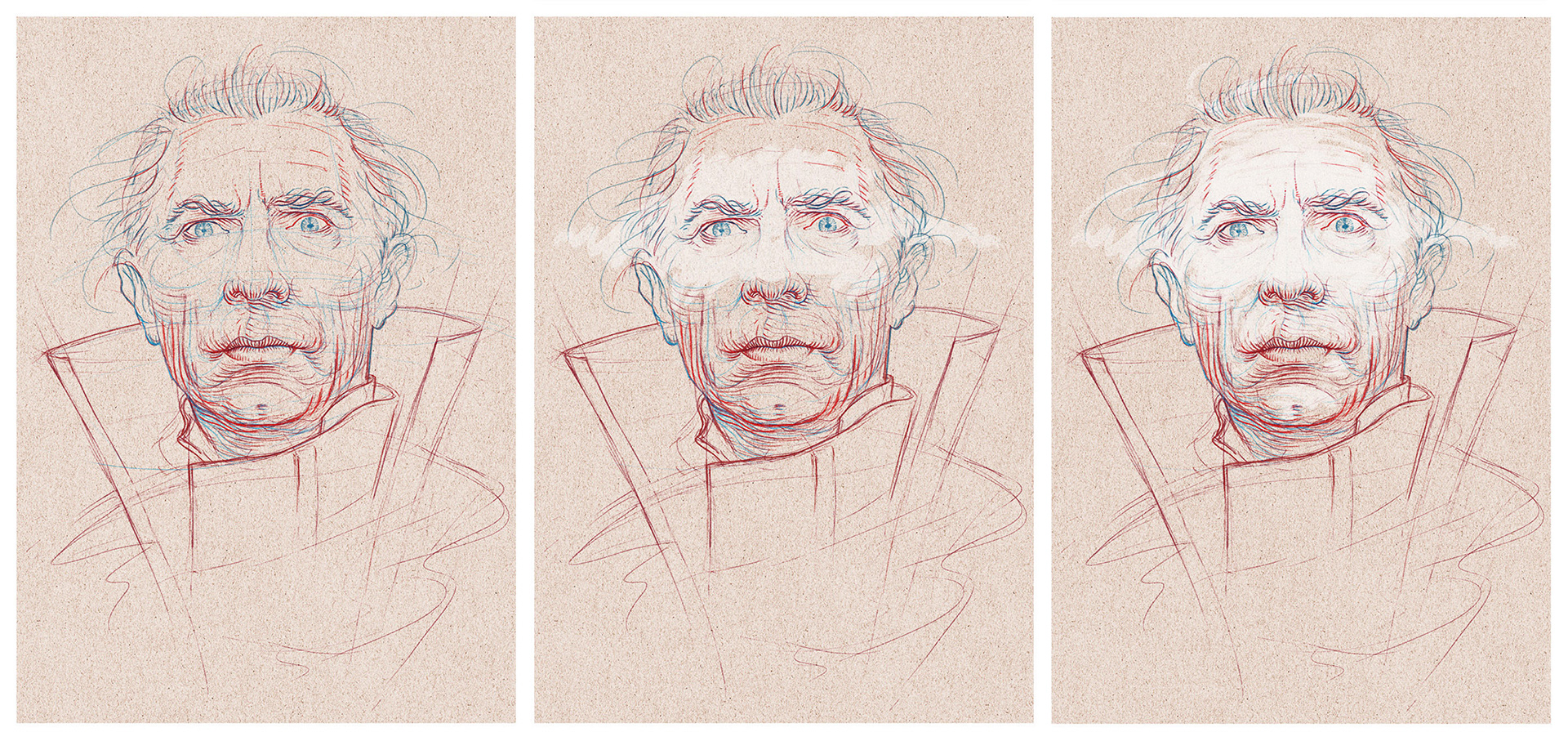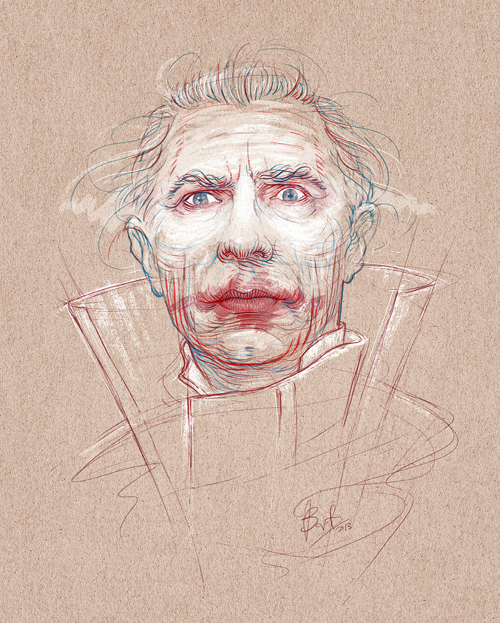 A set of non-commissioned portraits of various horror characters. As this was a self-initiated project, I decided to experiment a bit with different media and went for digital coloured pencils and gouache instead of my usual pen and ink.