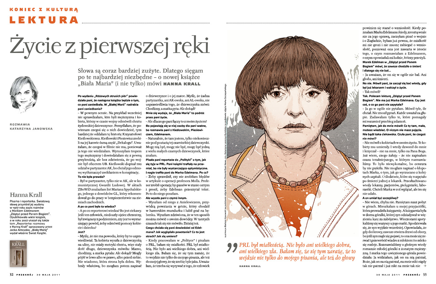 A portrait of a Polish writer Hanna Krall for "Przekroj" magazine.