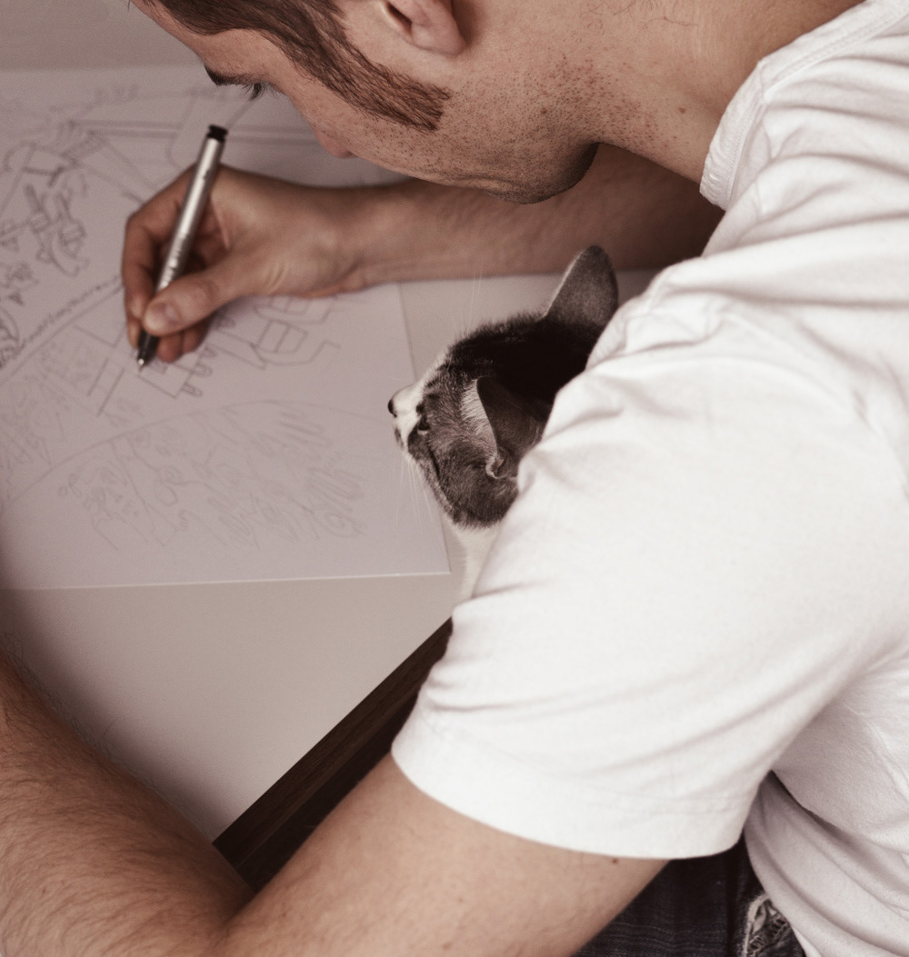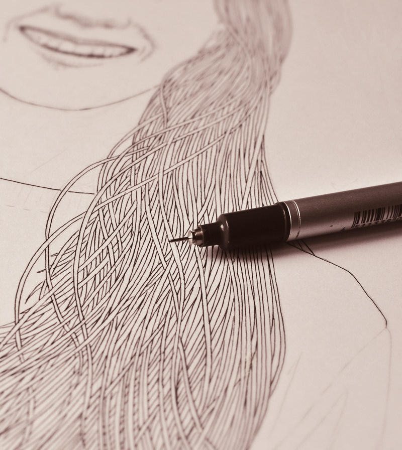 The illustration was hand drawn with pencil, inked with Copic Multiliner SP and coloured in PS.