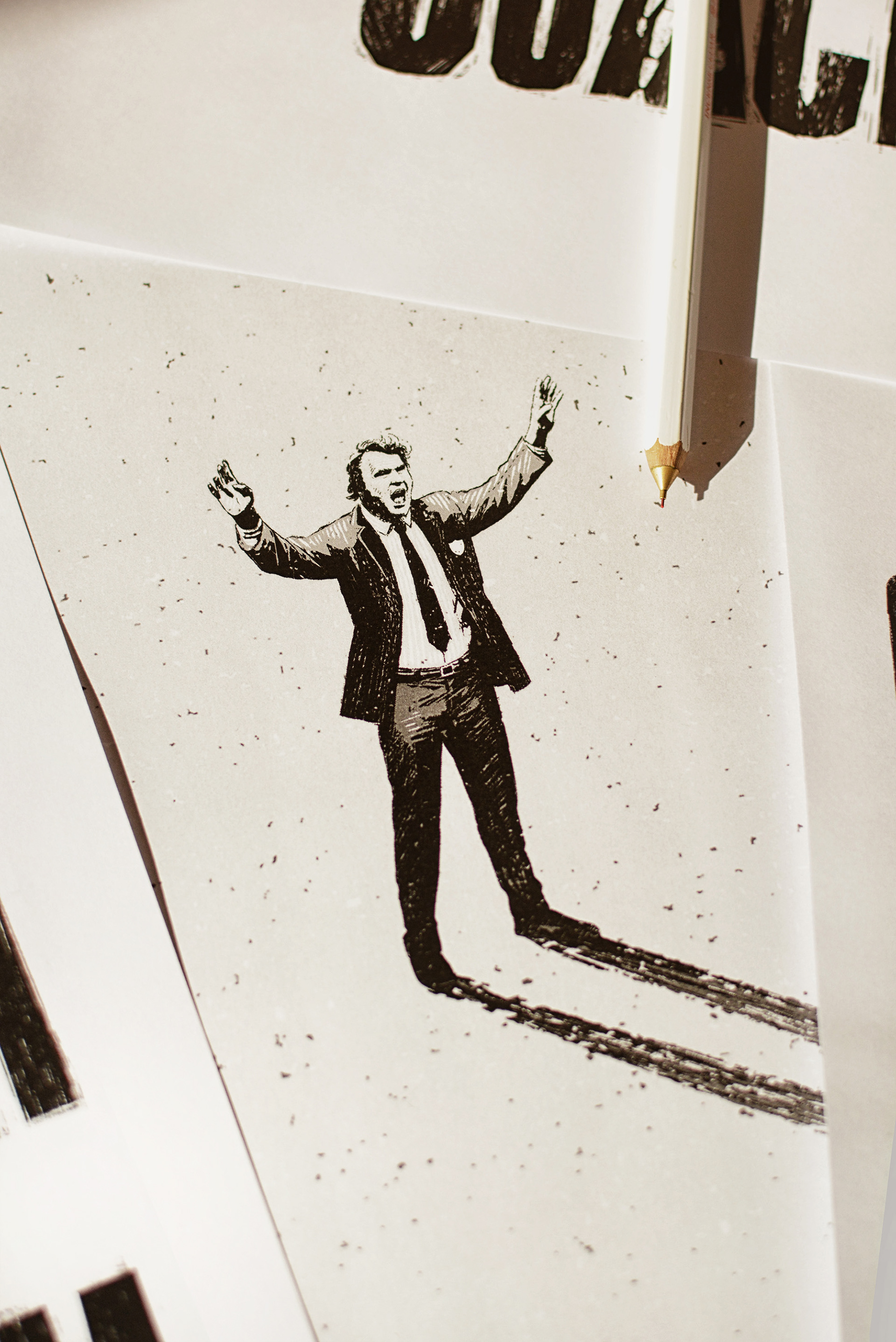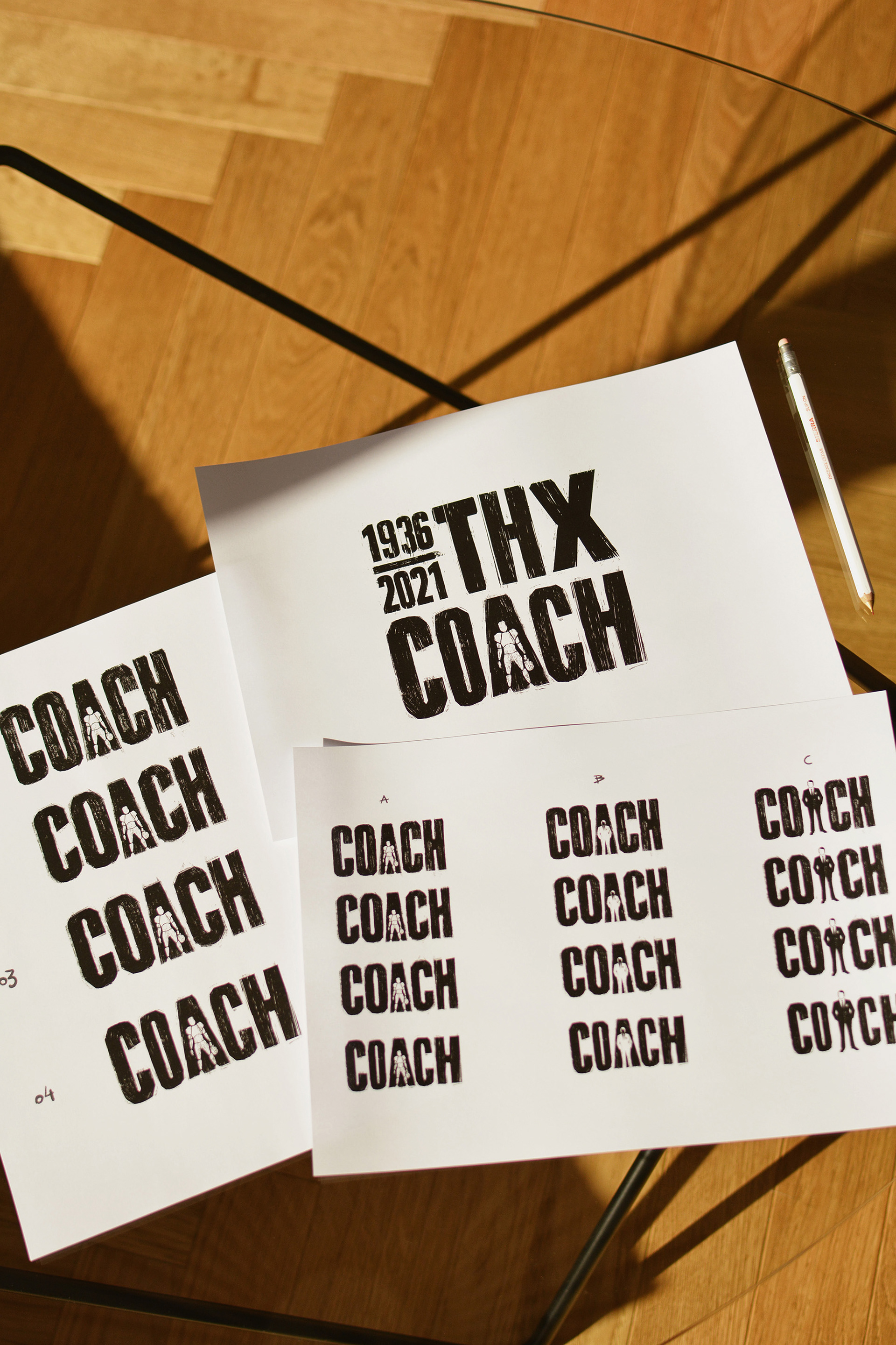 Printed posters, typography ideas and roughs: