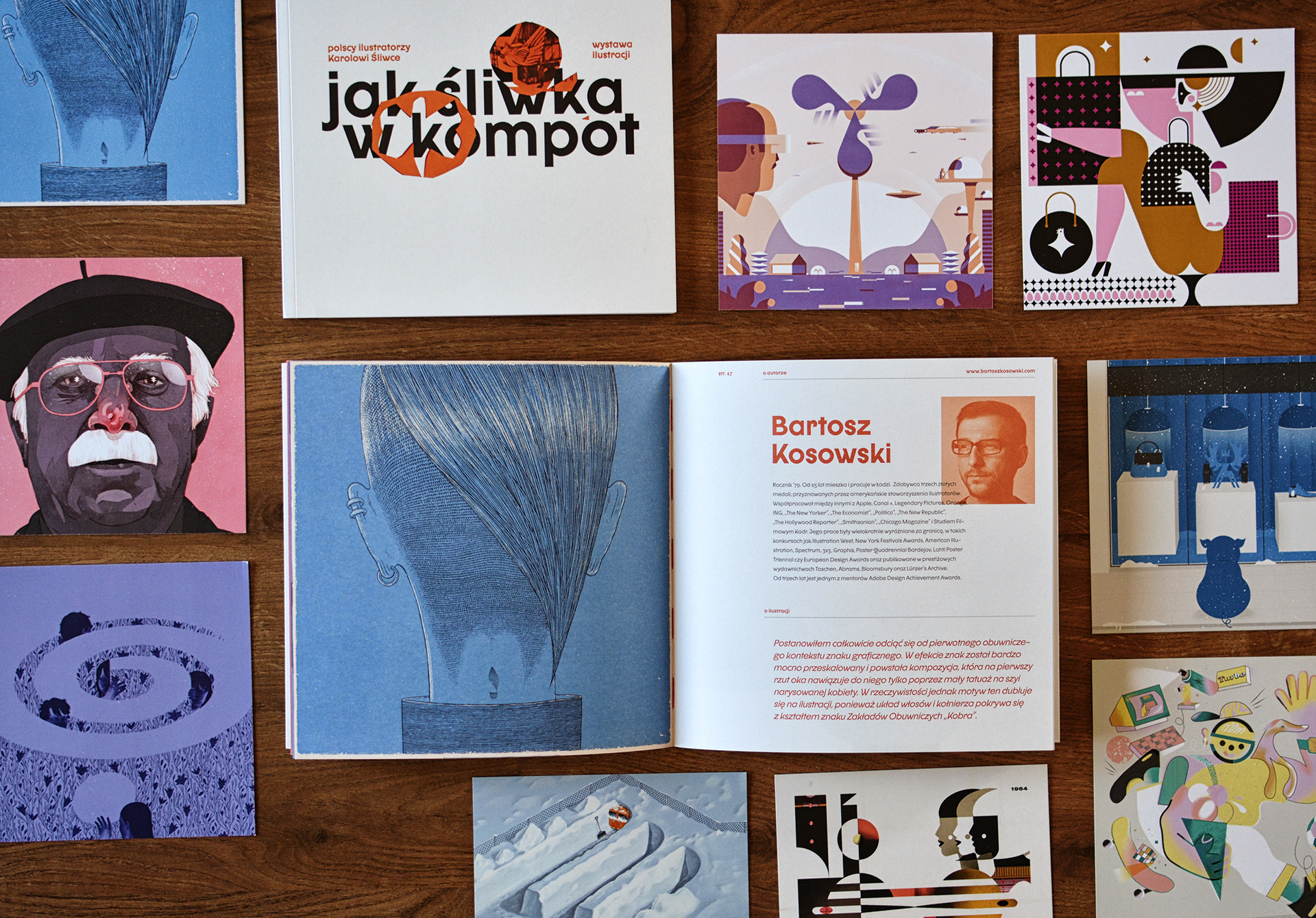 An illustrative interpretation of Zaklady Obuwnicze Kobra logo for "Jak Sliwka w kompot. Polscy ilustratorzy Karolowi Sliwce" show at Gdynia Design Centre.
