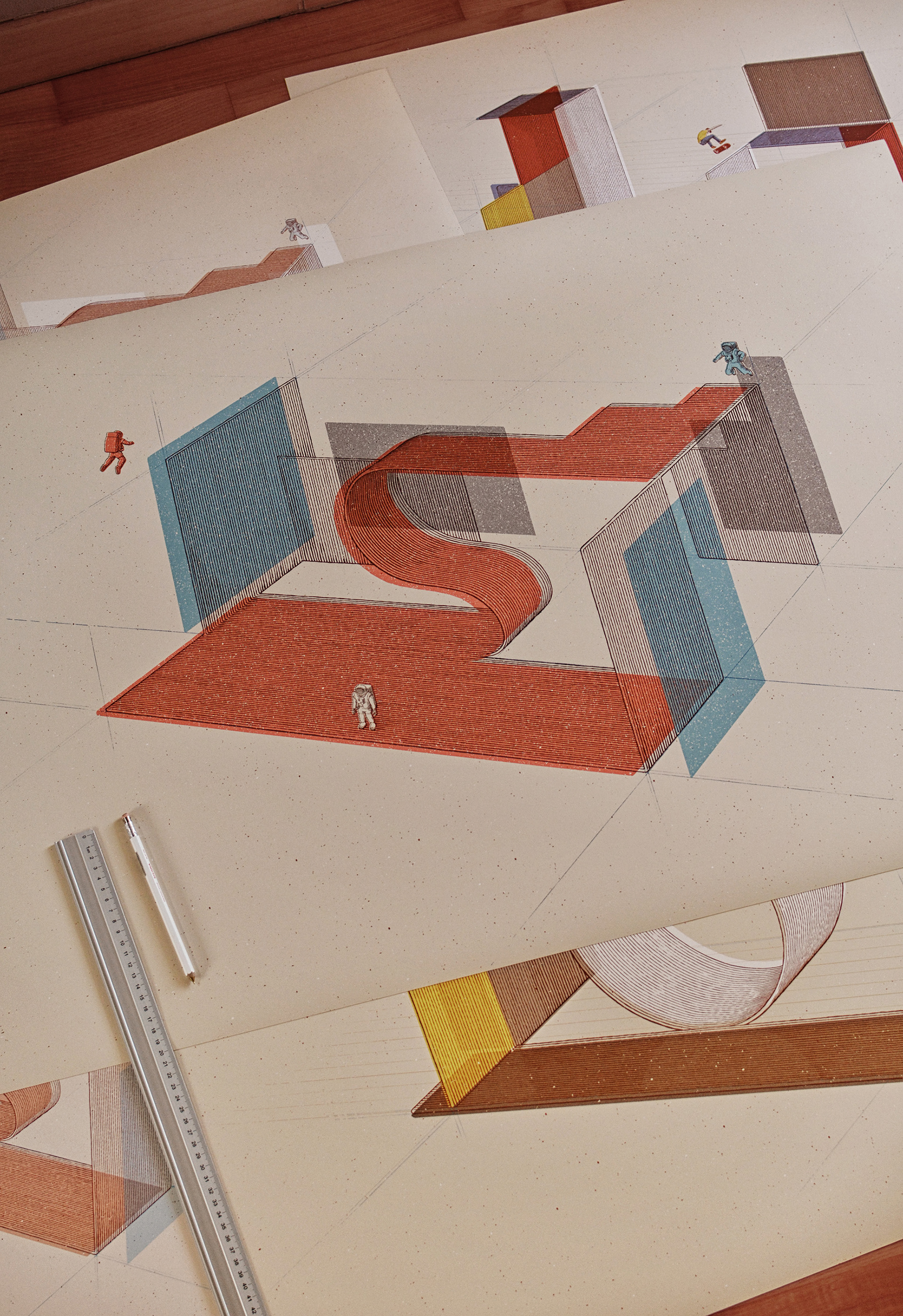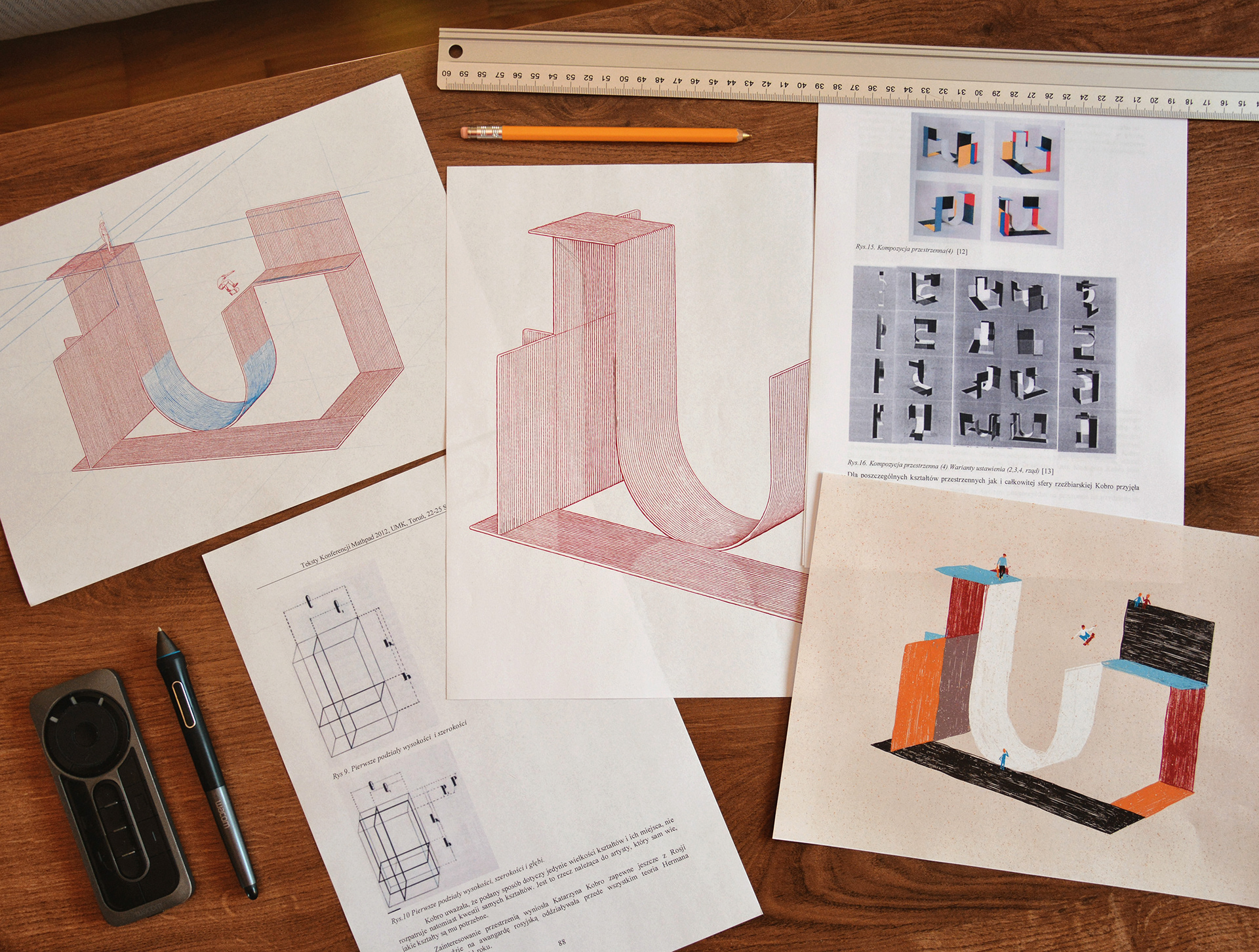 Posters inspired by Katarzyna Kobro's Spatial Compositions created for Puro Hotels.