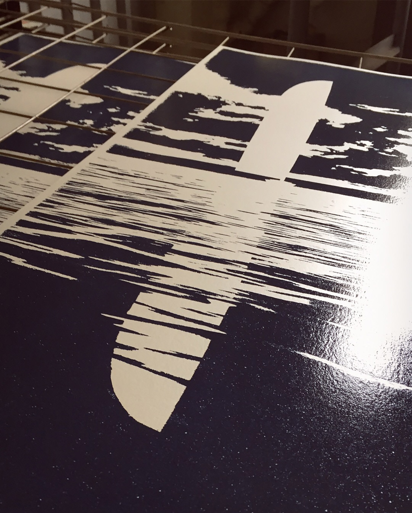 1 colour screen print printed on 230gr Stardream metallic paper (Opal and Crystal variants)