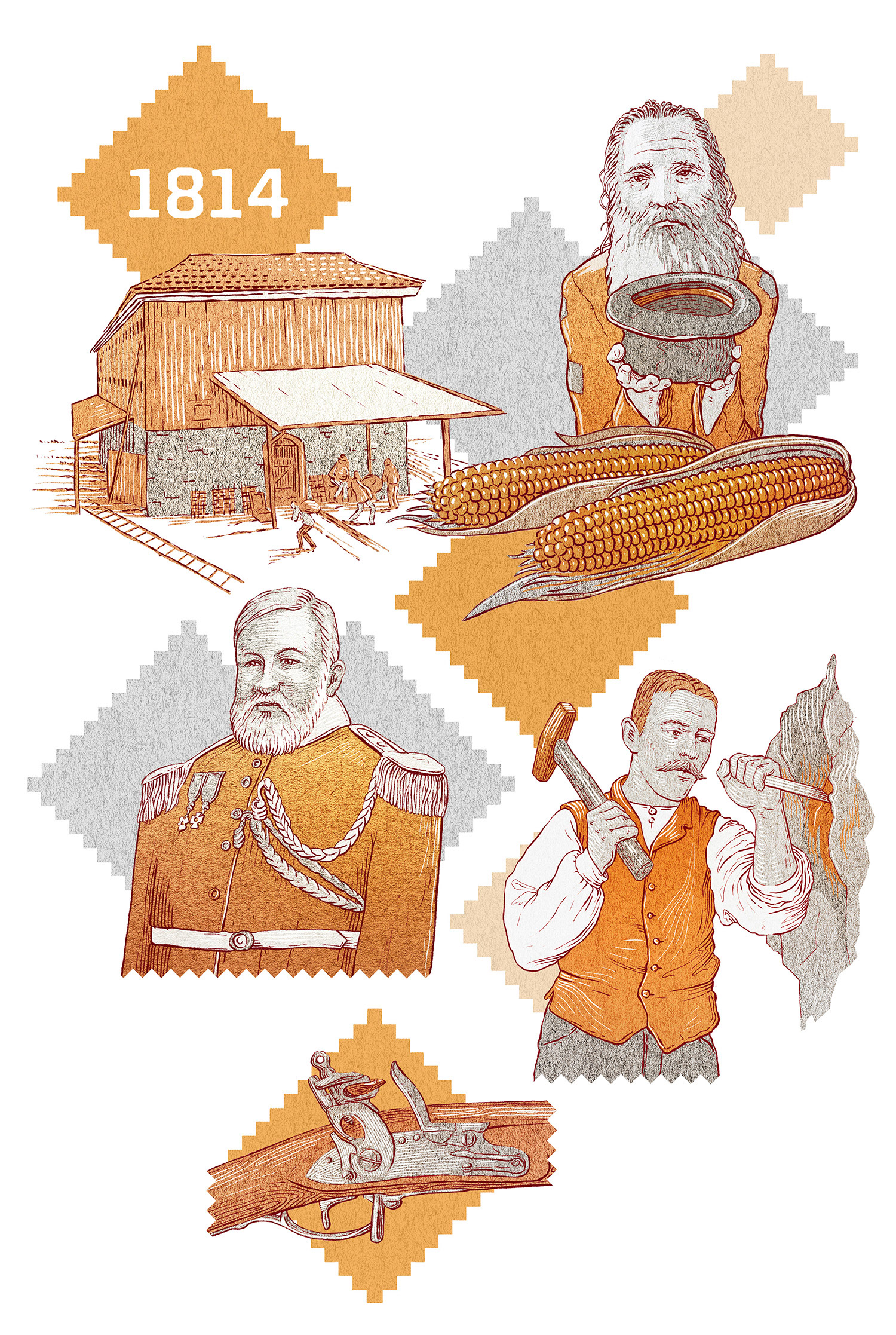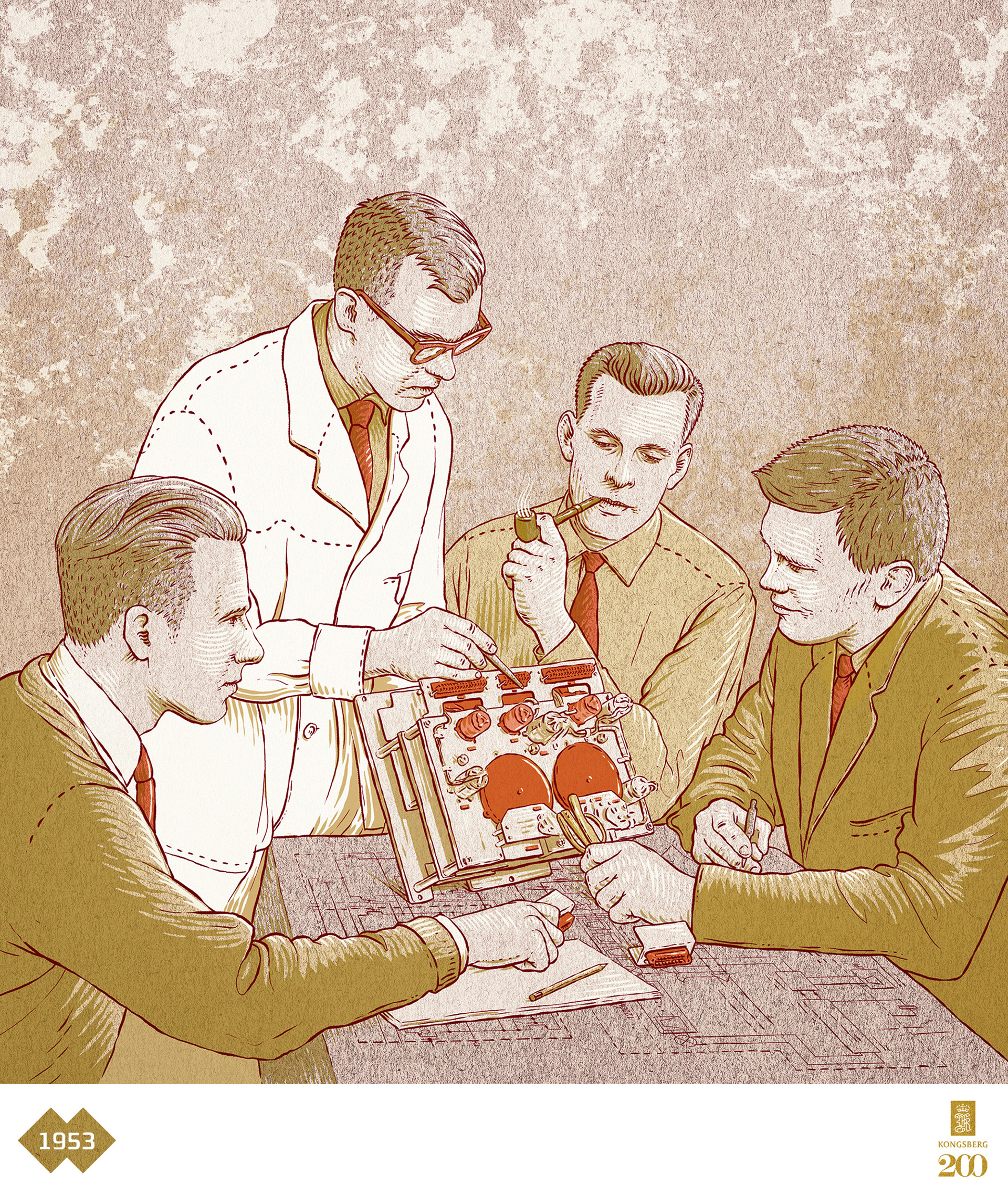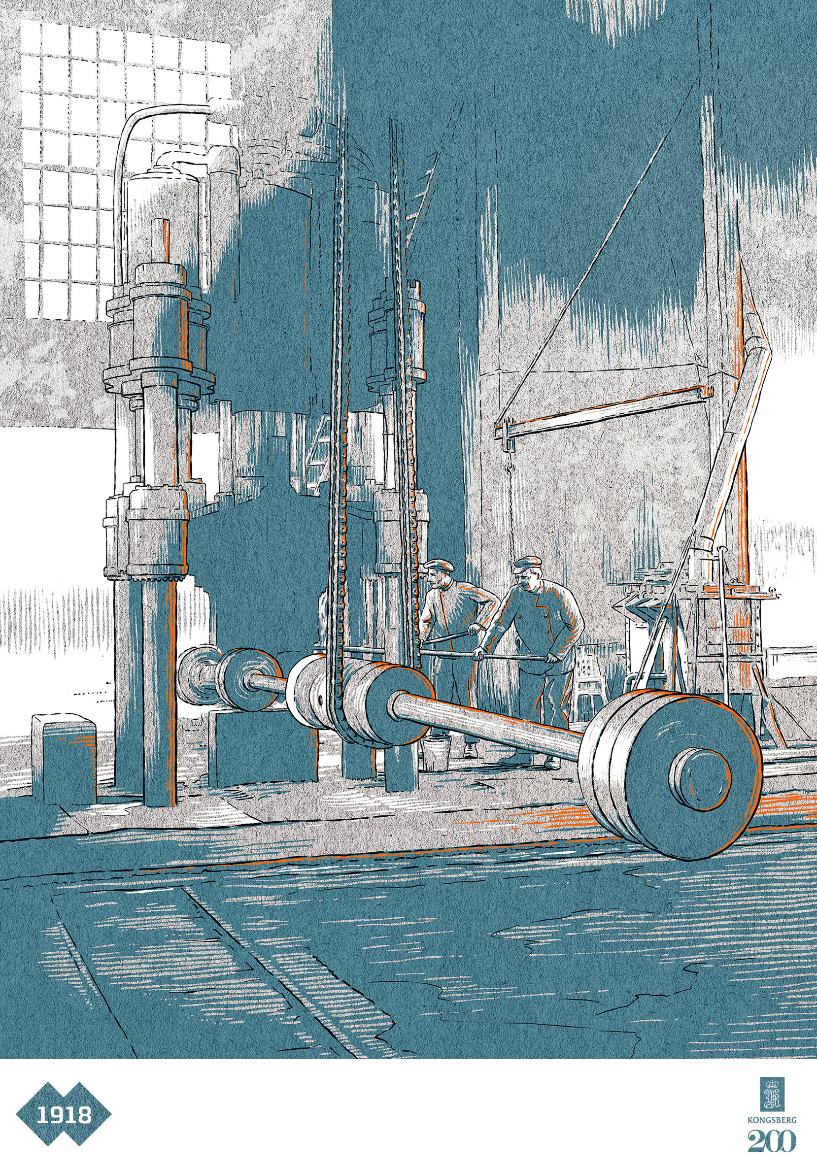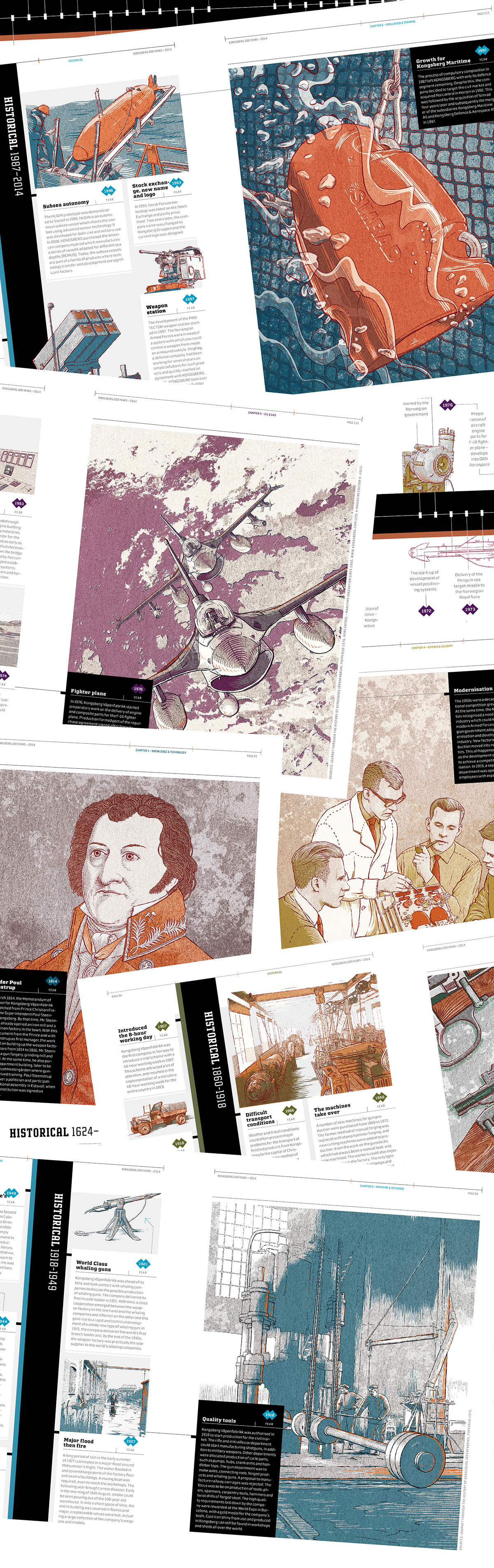 A set of historical illustrations for Kongsberg's 200th Anniversary Publication.