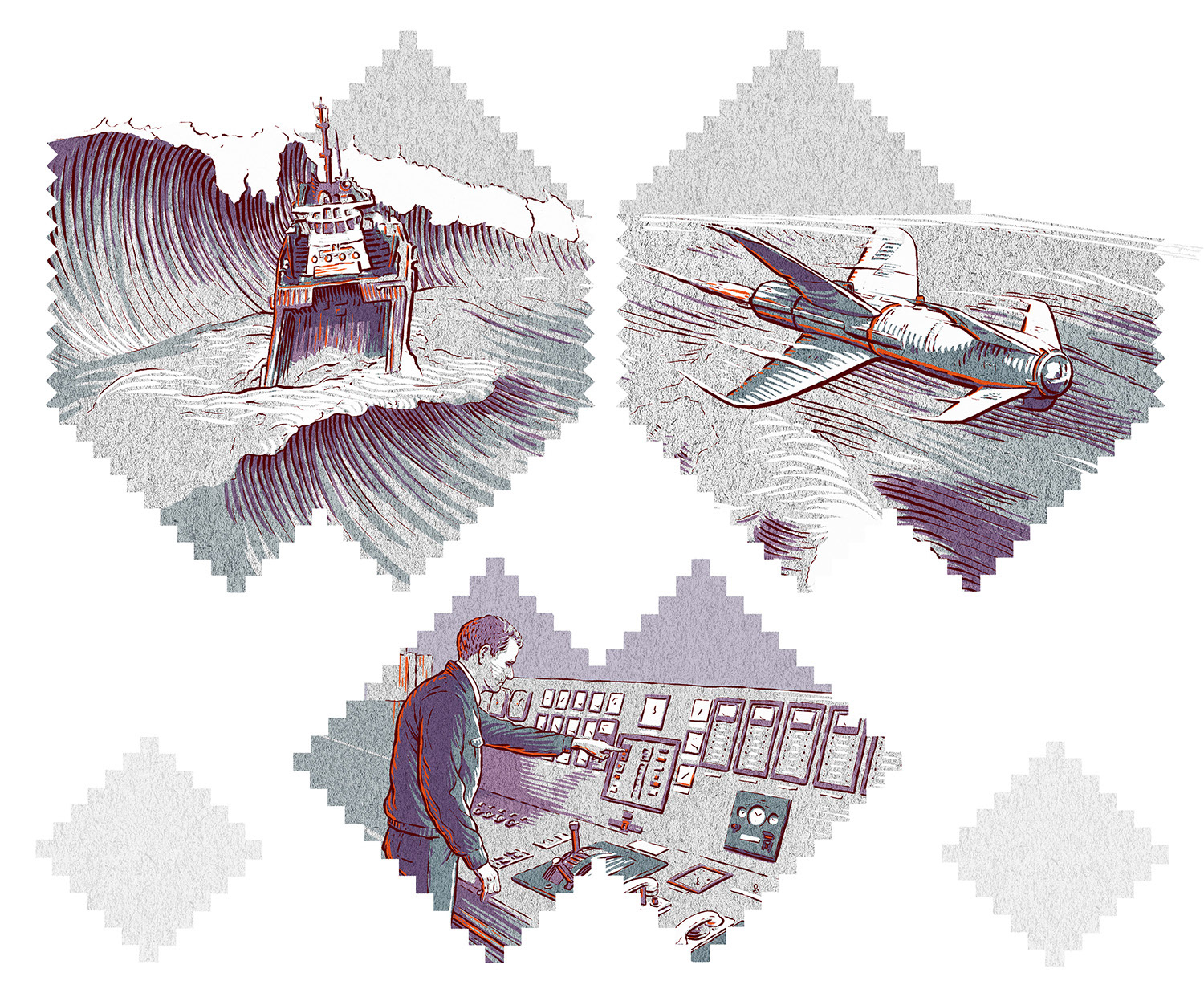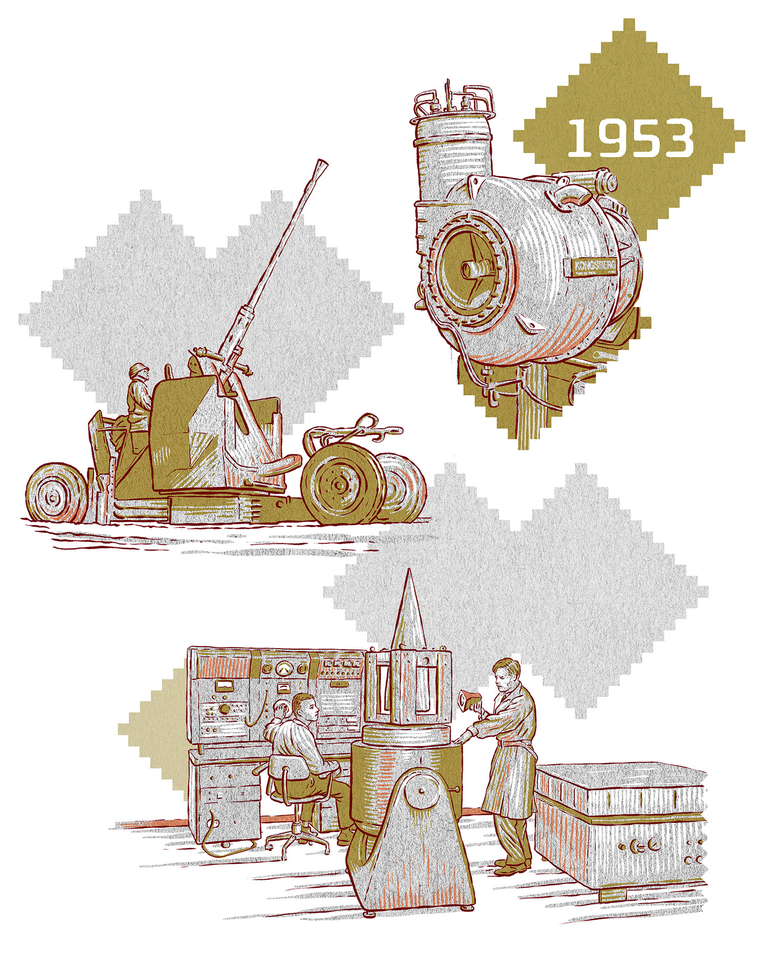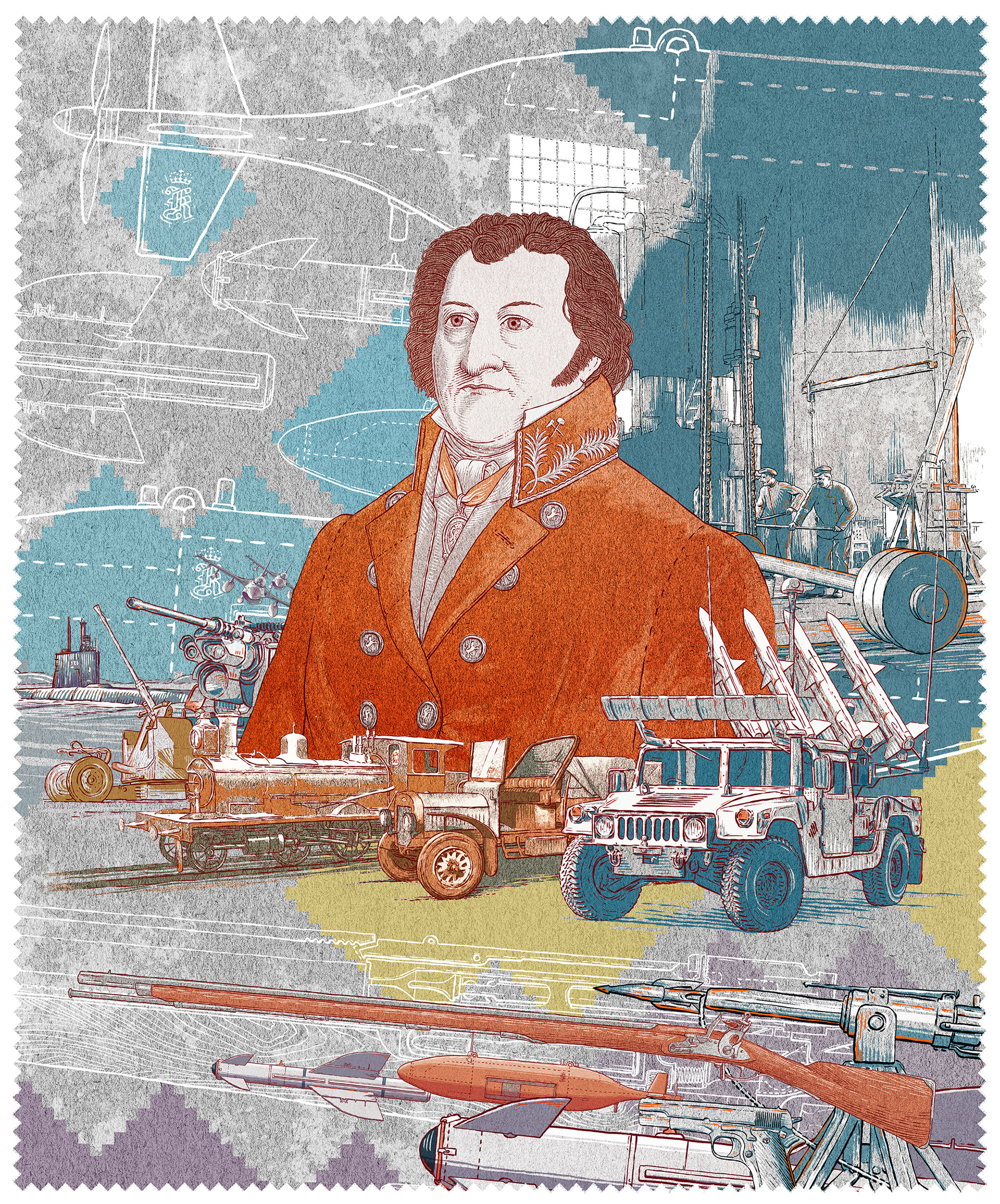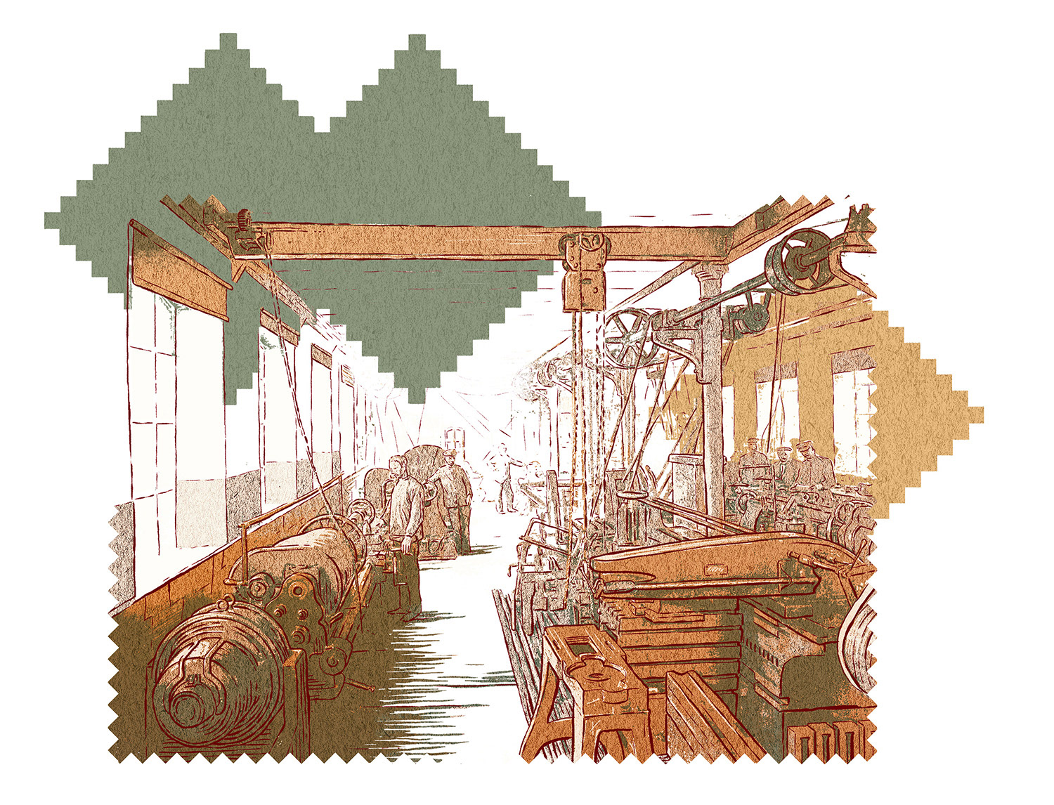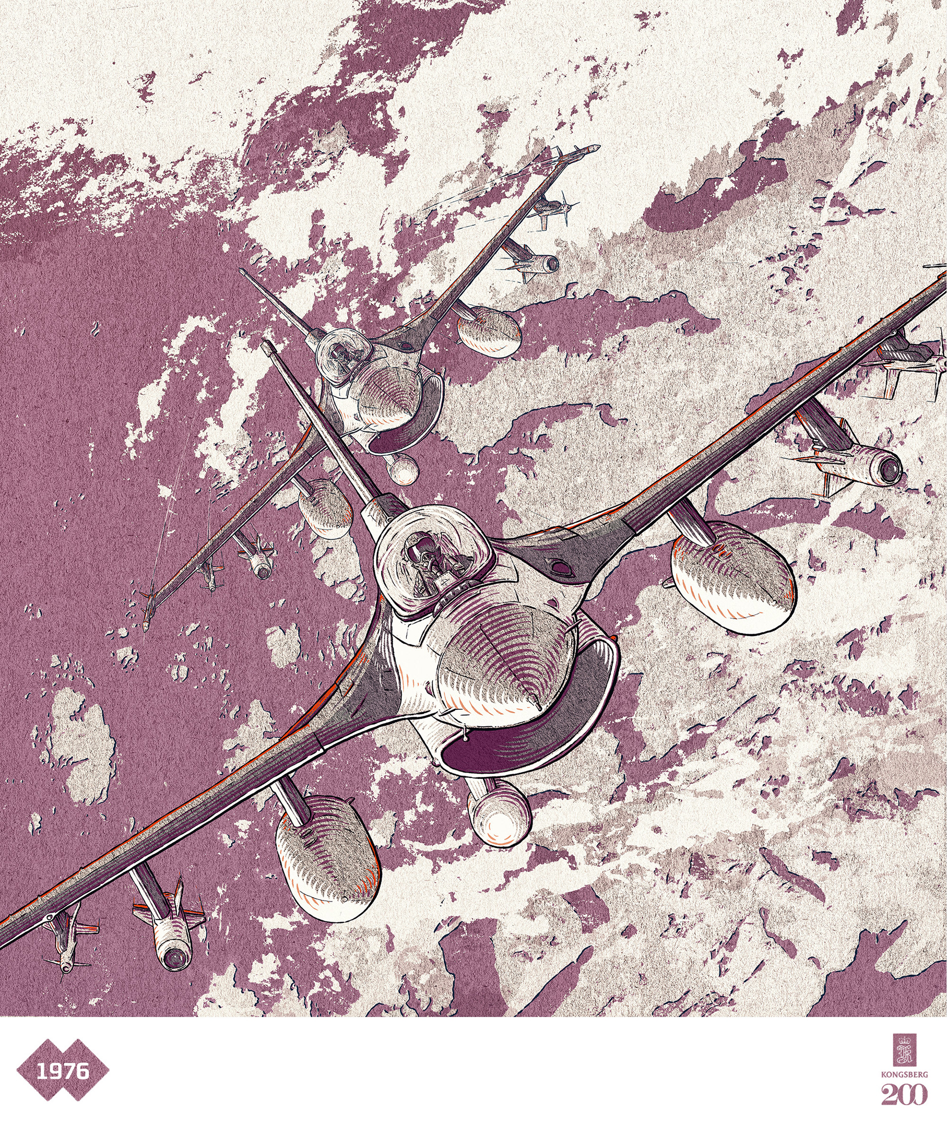 A set of historical illustrations for Kongsberg's 200th Anniversary Publication.