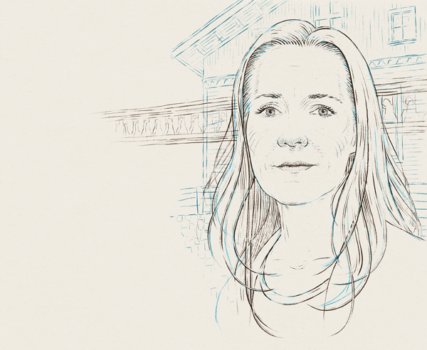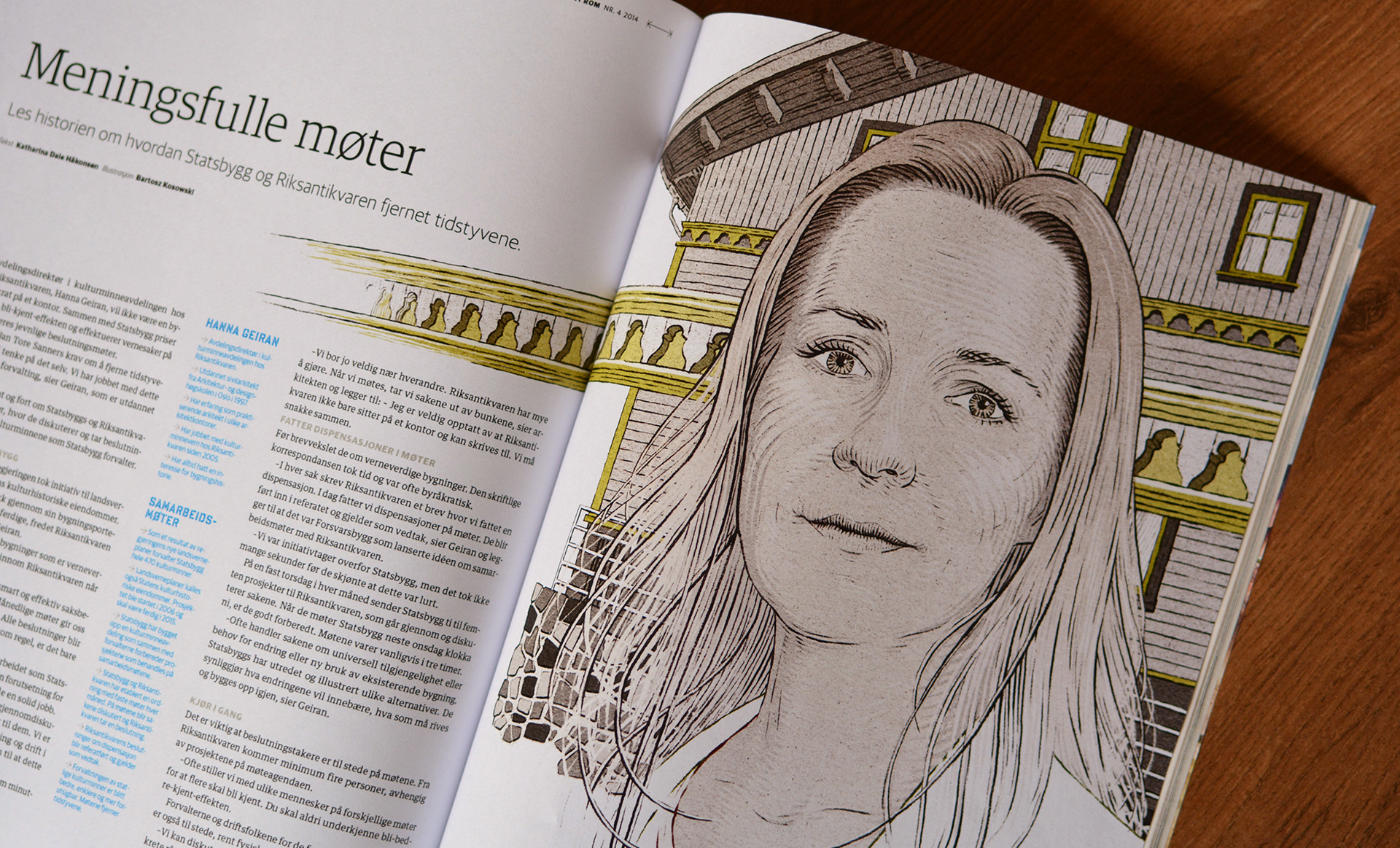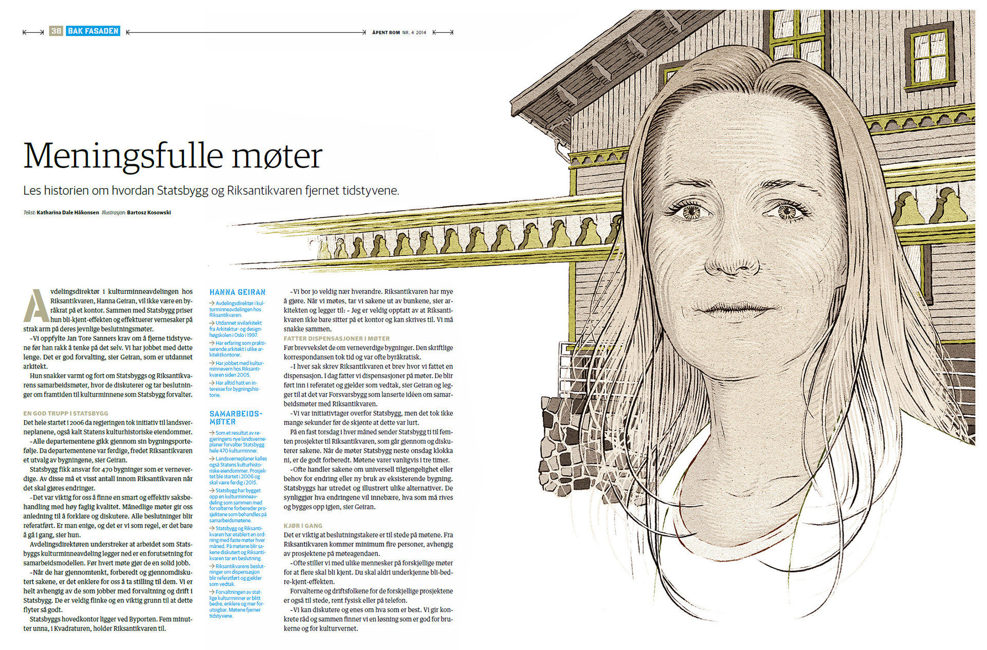 A portrait of Hanna Geiran and the architecture illustration of the Oslo Grotten for "Åpent Rom" magazine.