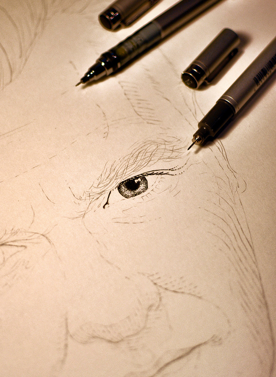 The portrait was hand drawn with a pencil, inked with Copic Multiliners SP and coloured in PS.