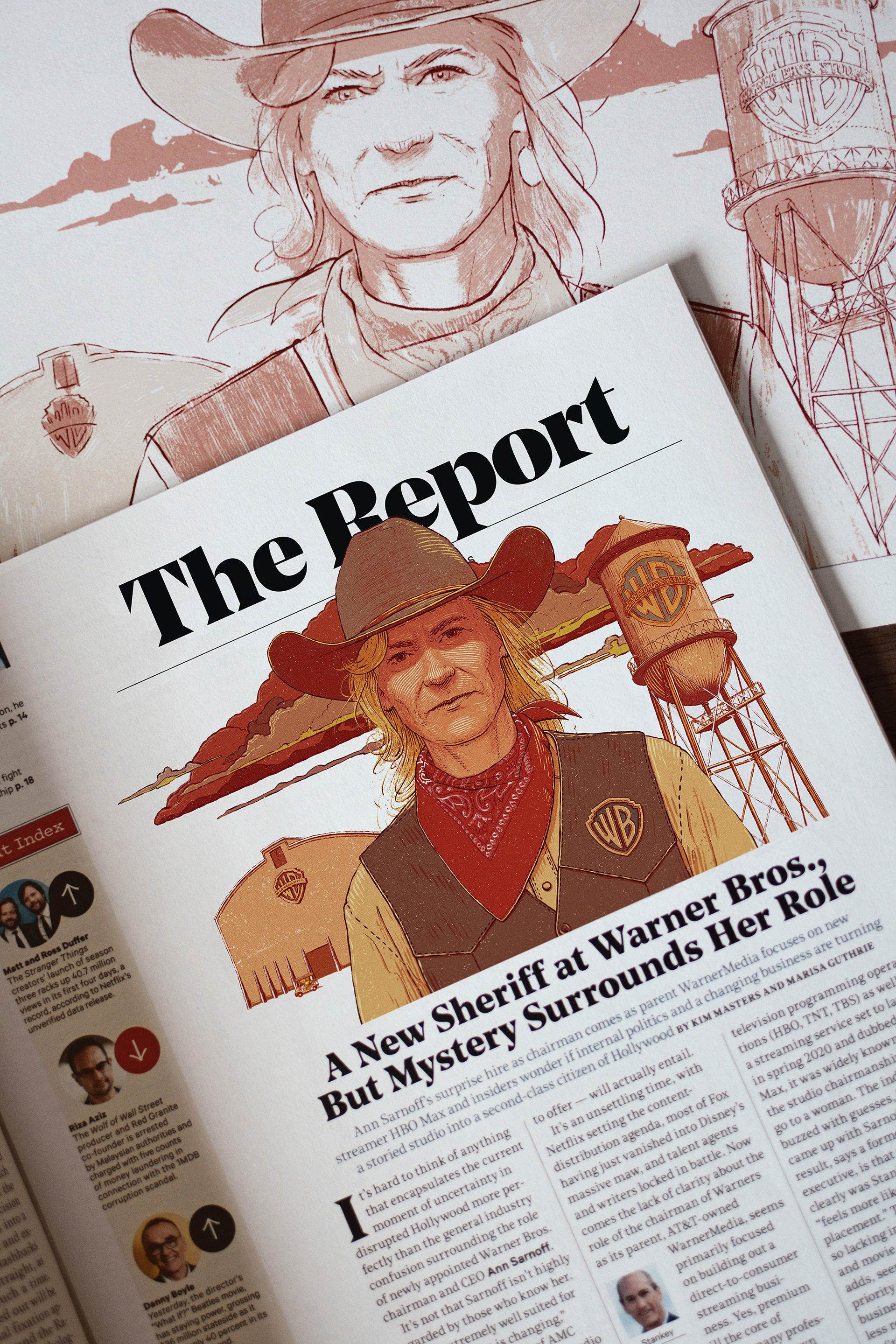 An editorial illustration for the article about Ann Sarnoff - the new CEO of Warner Bros.