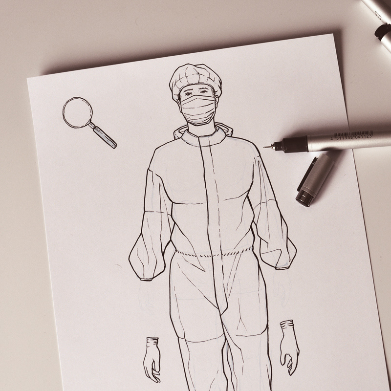 The illustrations were hand drawn with pencil, inked with Copic Multiliner SP and coloured in PS.