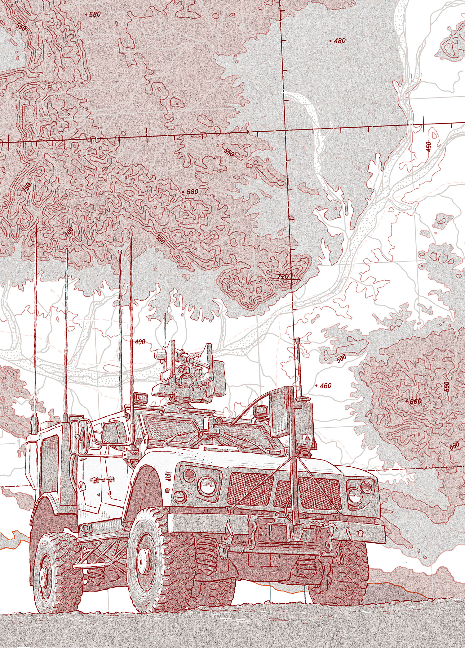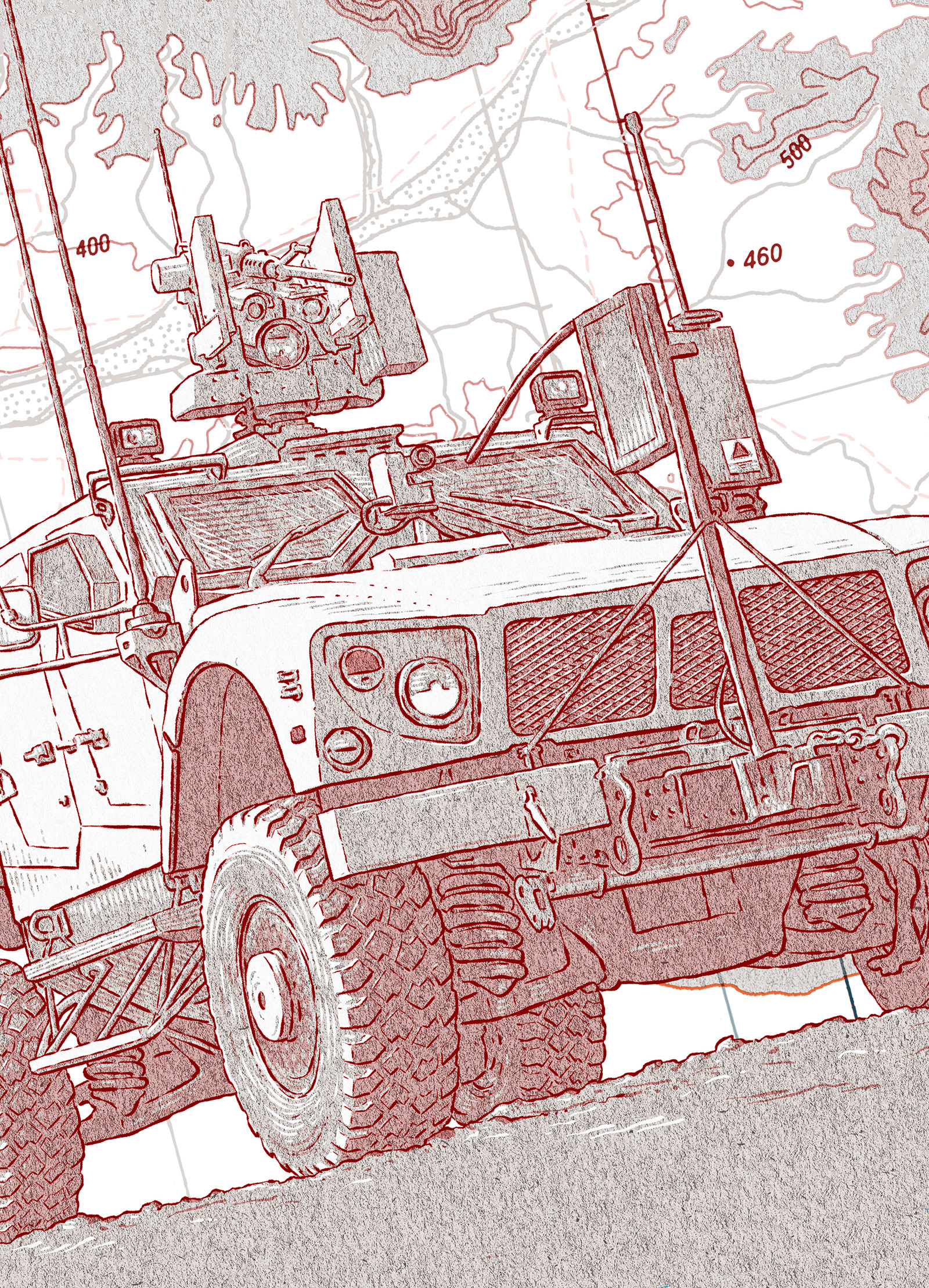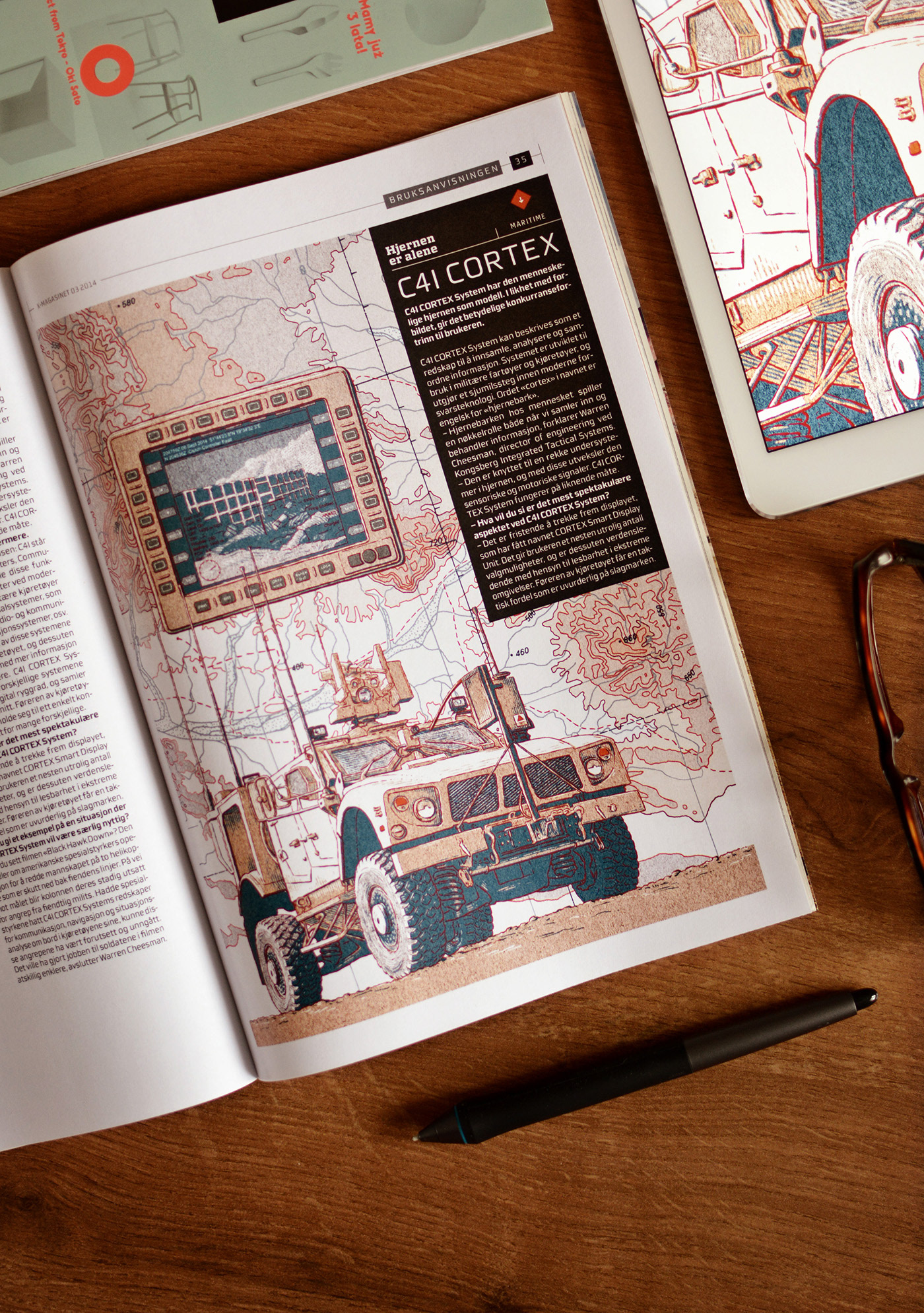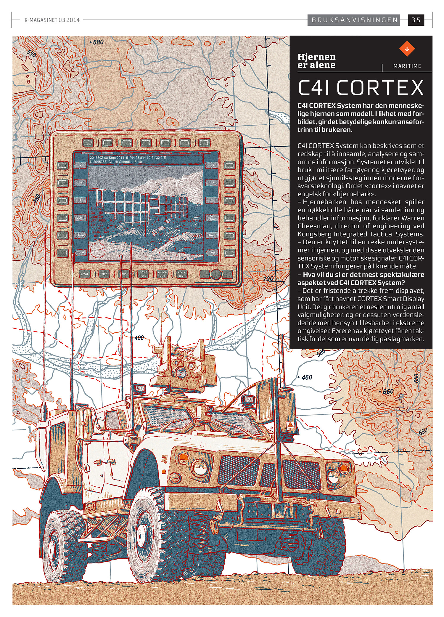 A product illustration of C41 Cortex system and Oshkosh M-ATV for Kongsberg's magazine.
