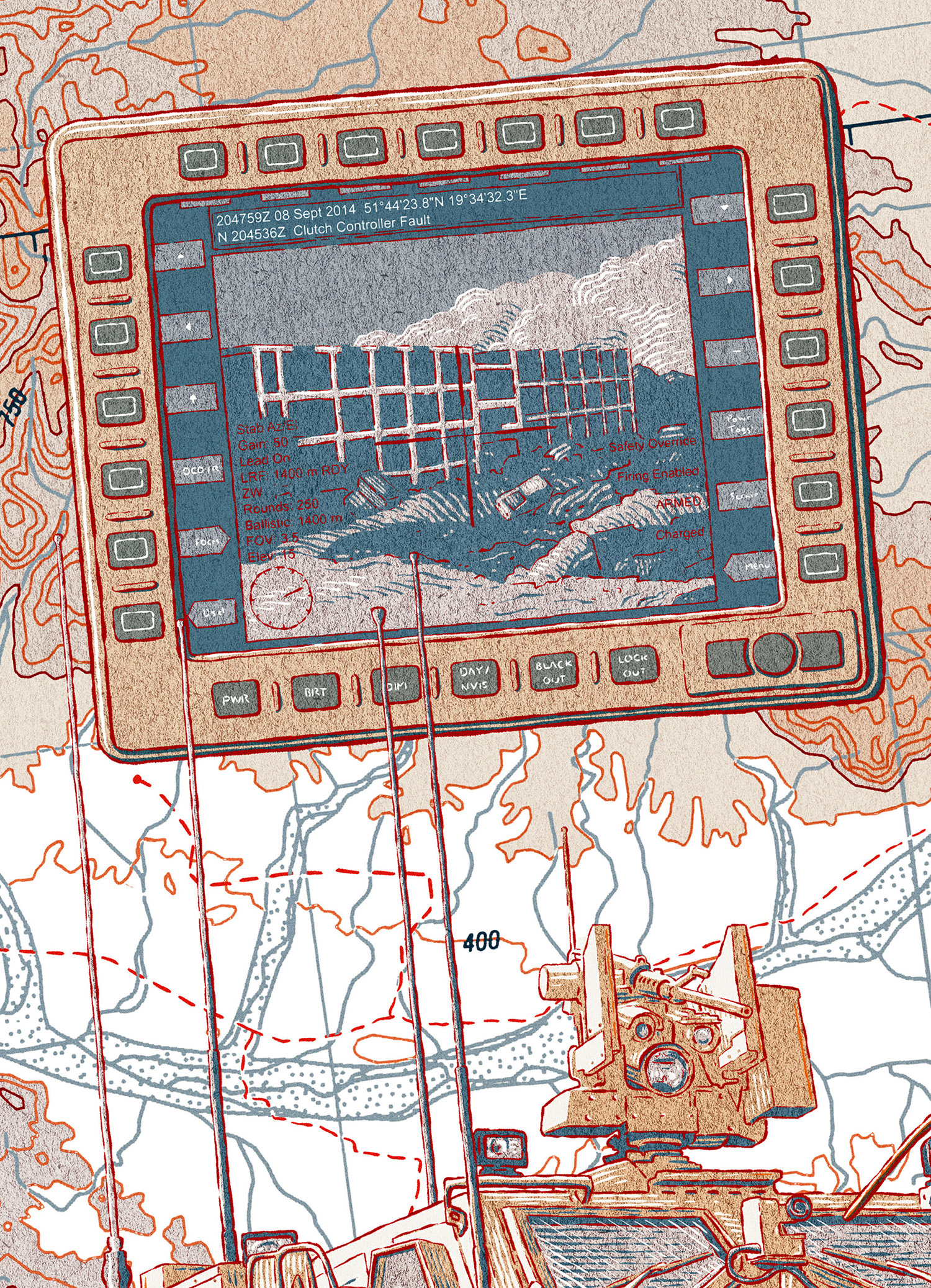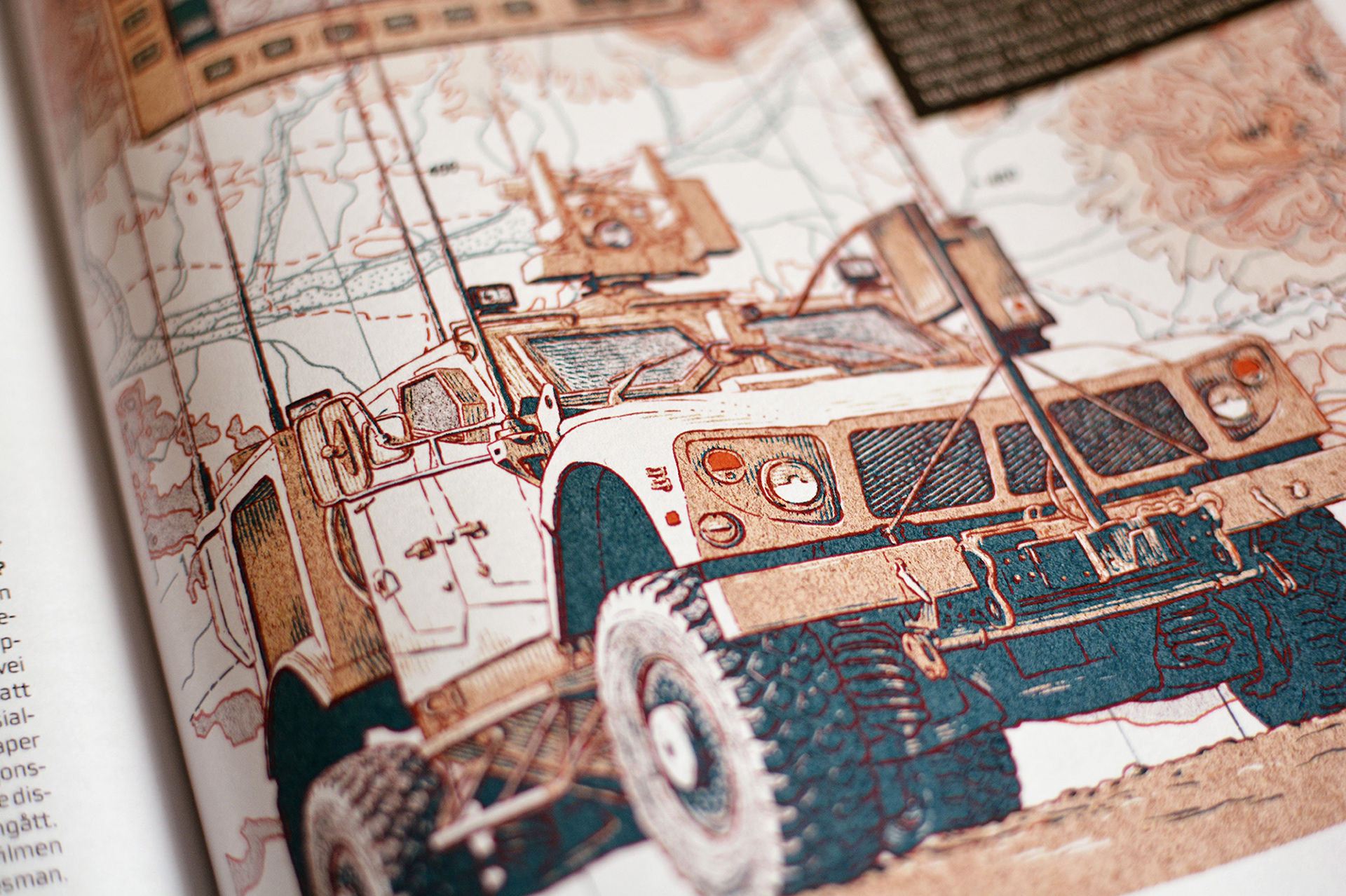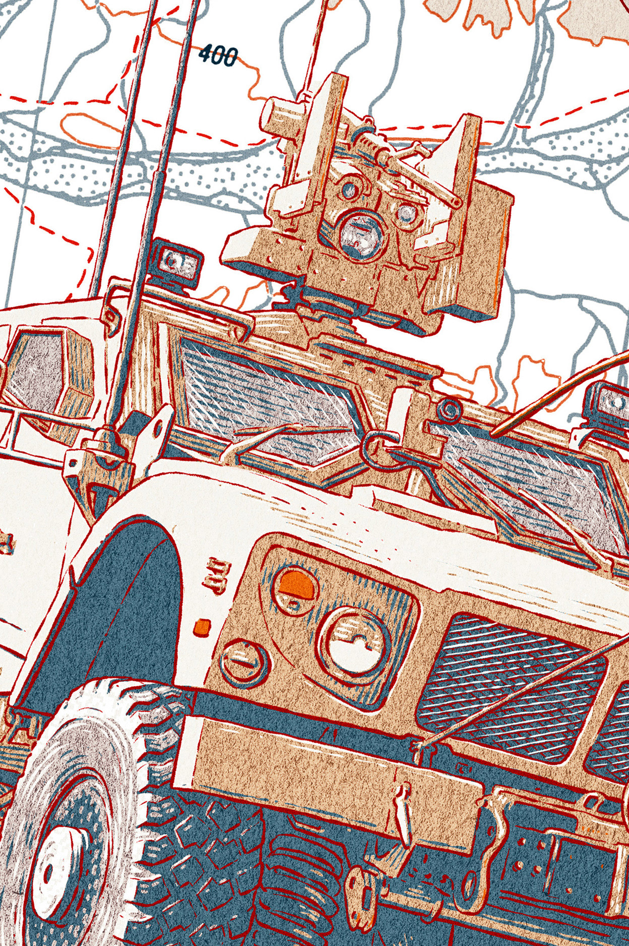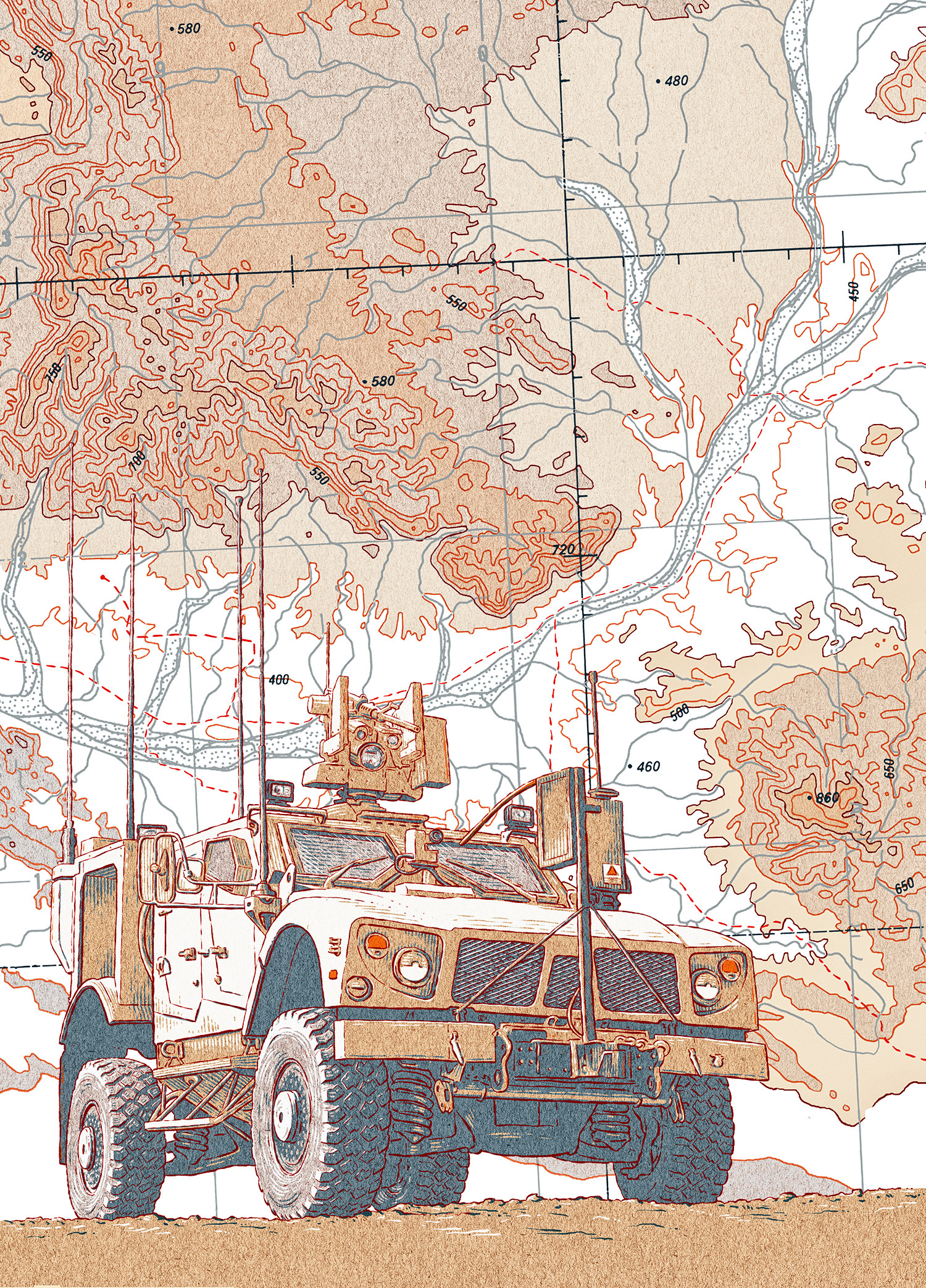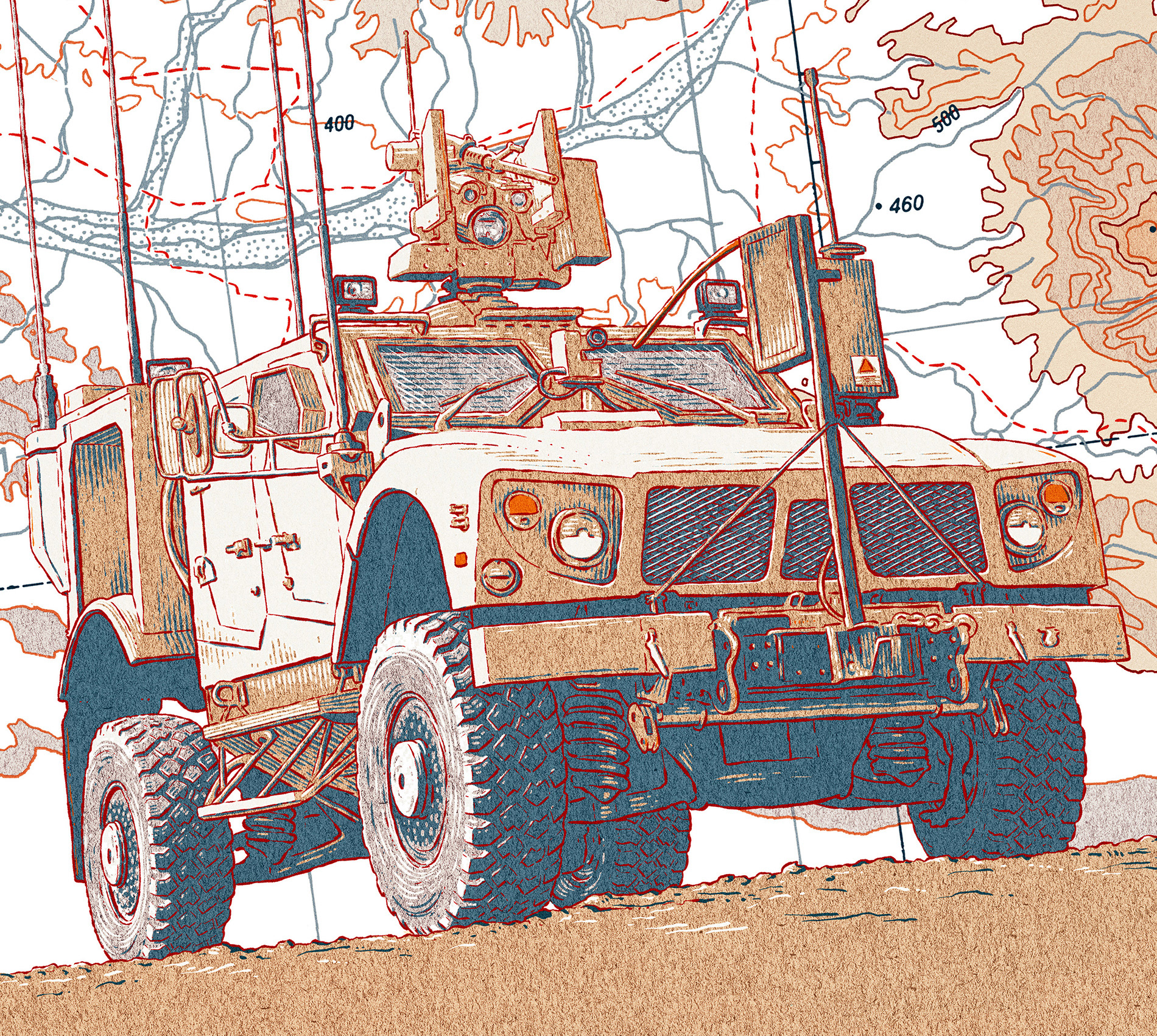 A product illustration of C41 Cortex system and Oshkosh M-ATV for Kongsberg's magazine.