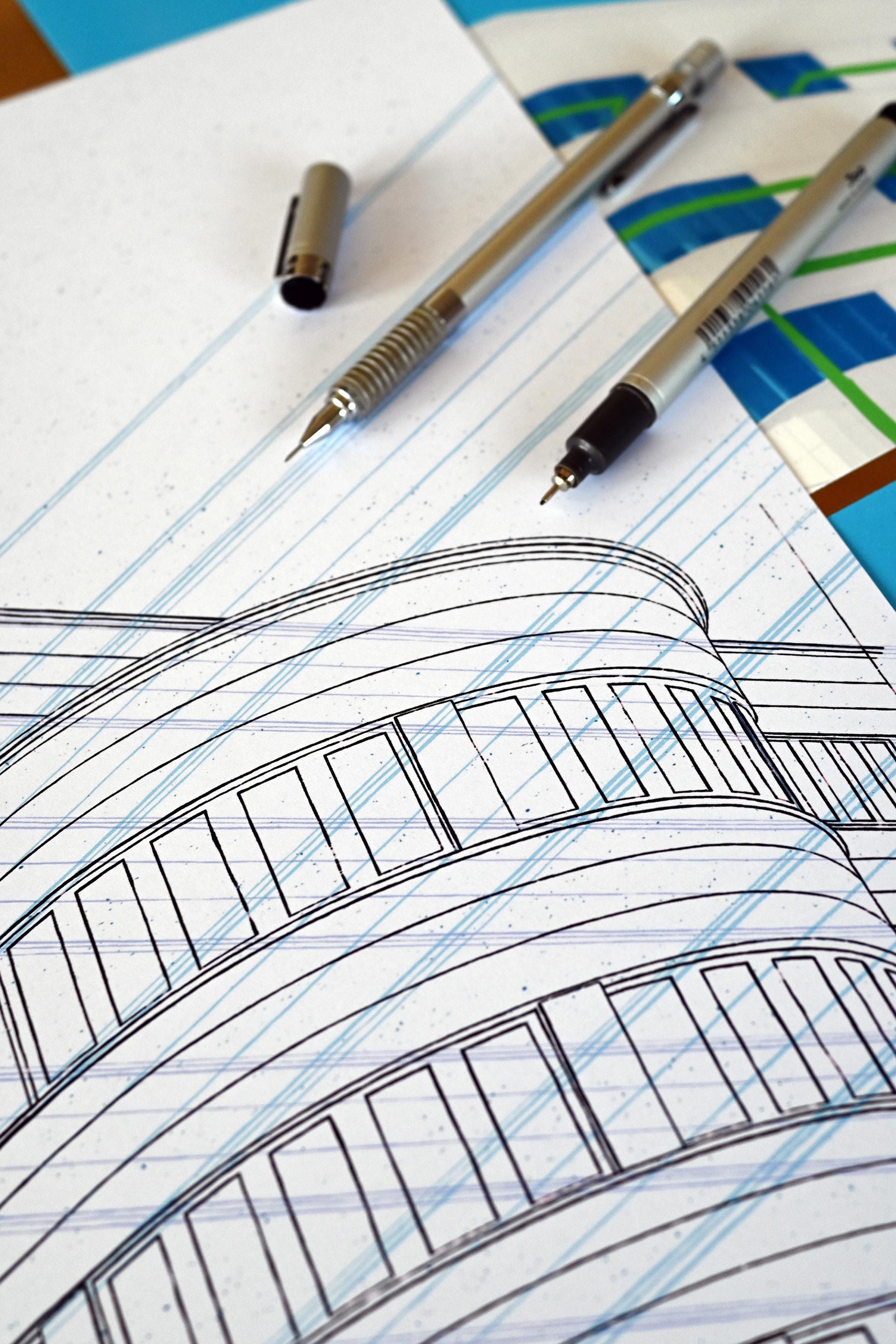 Illustration in print including additional sketches prepared for this project: