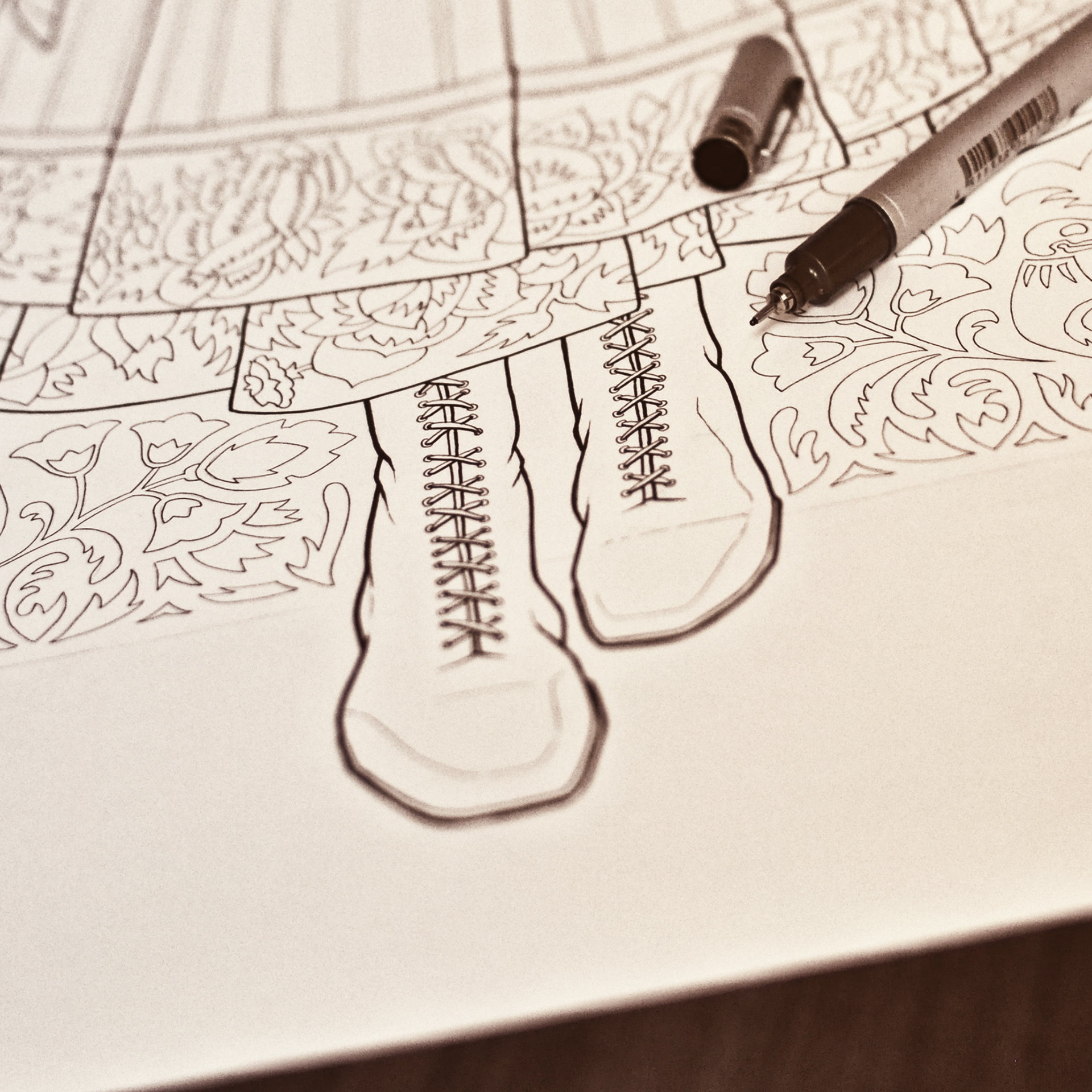 The basic illustration was hand drawn with a pencil and inked with Copic Multiliners.