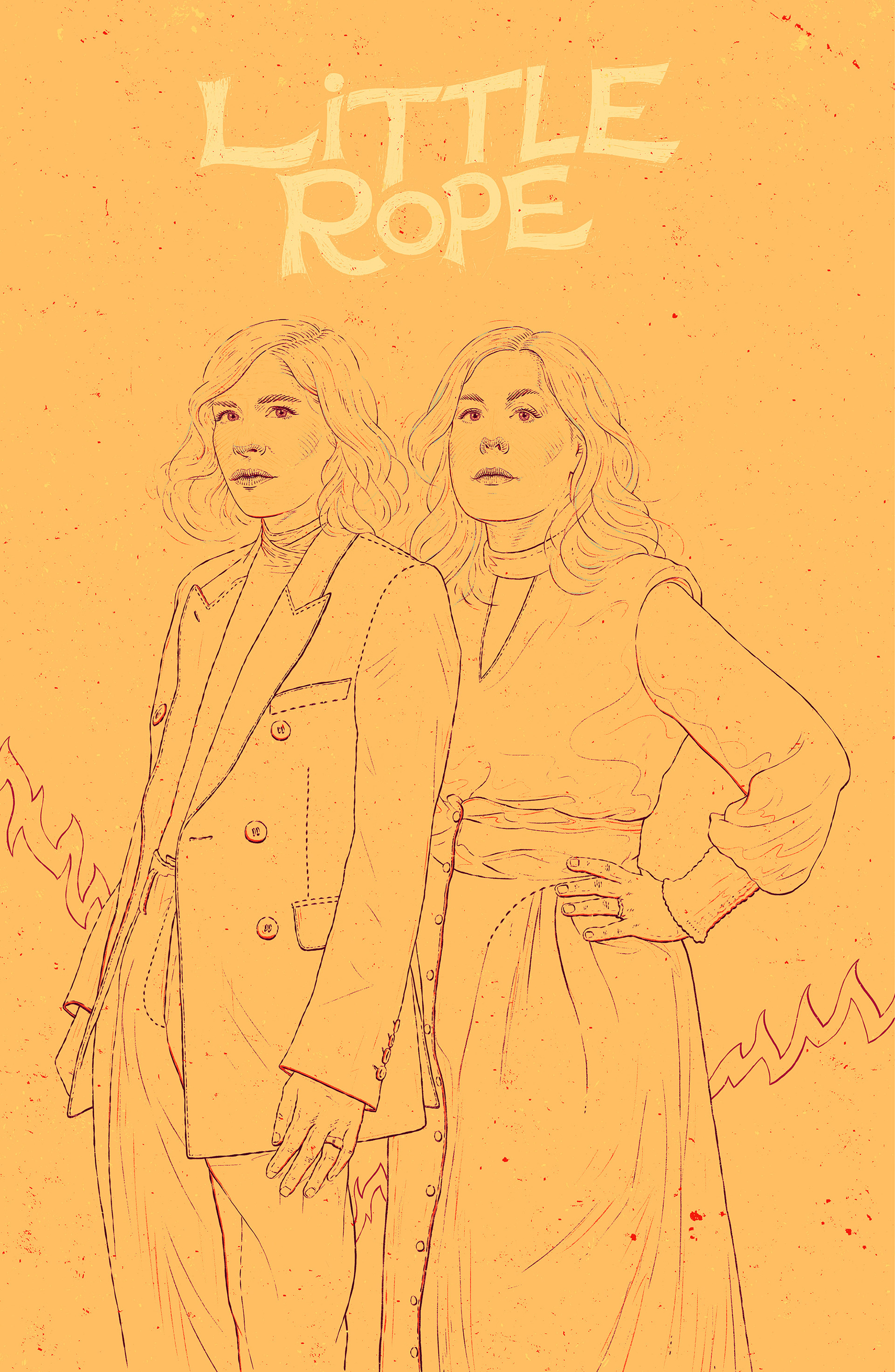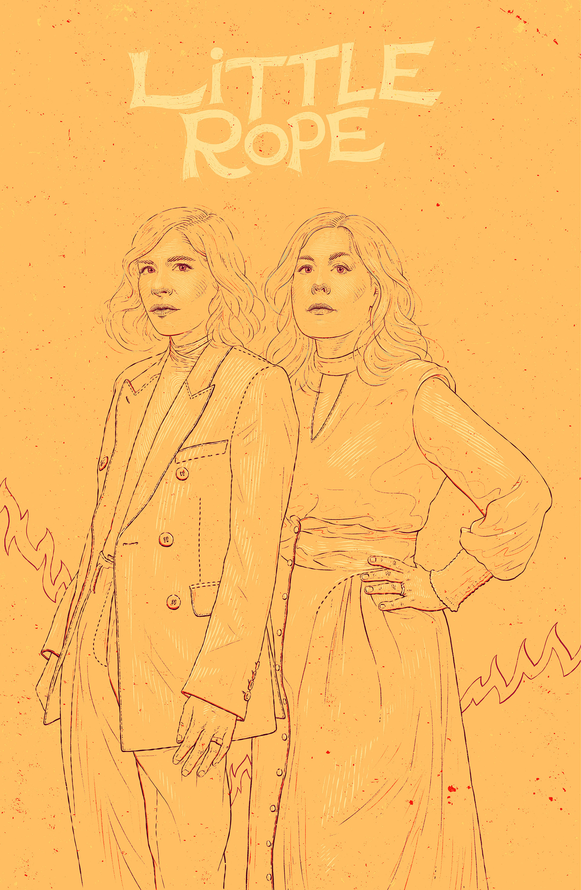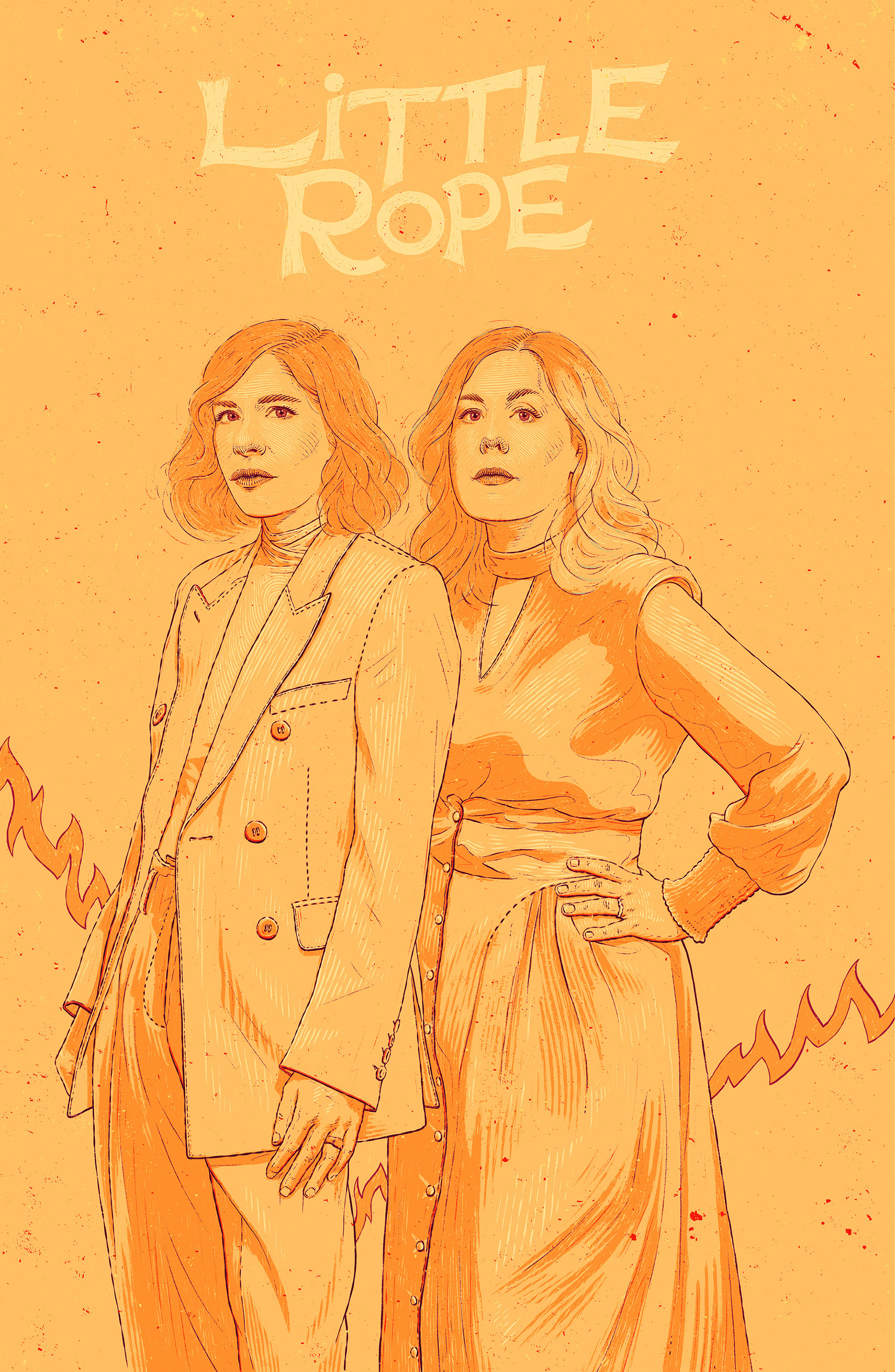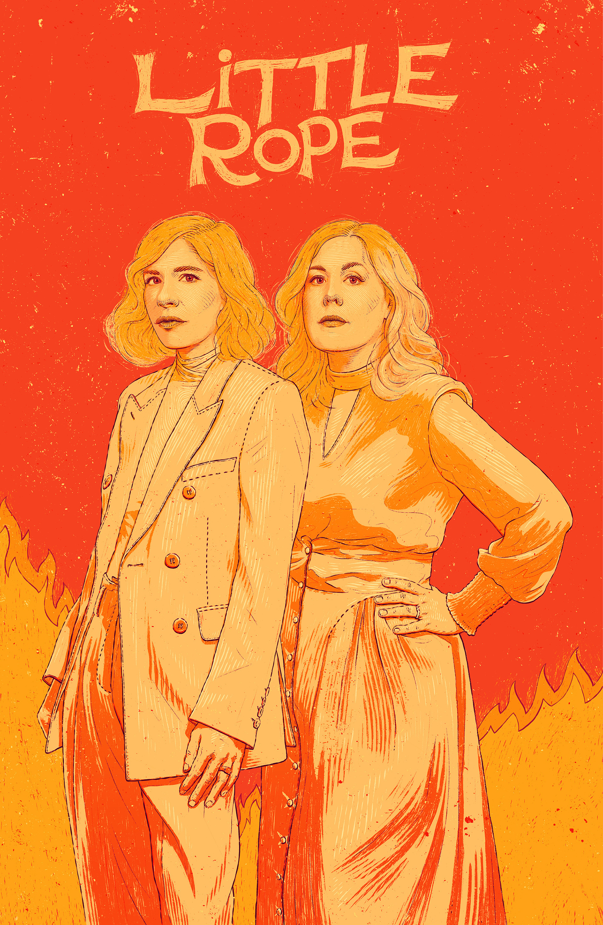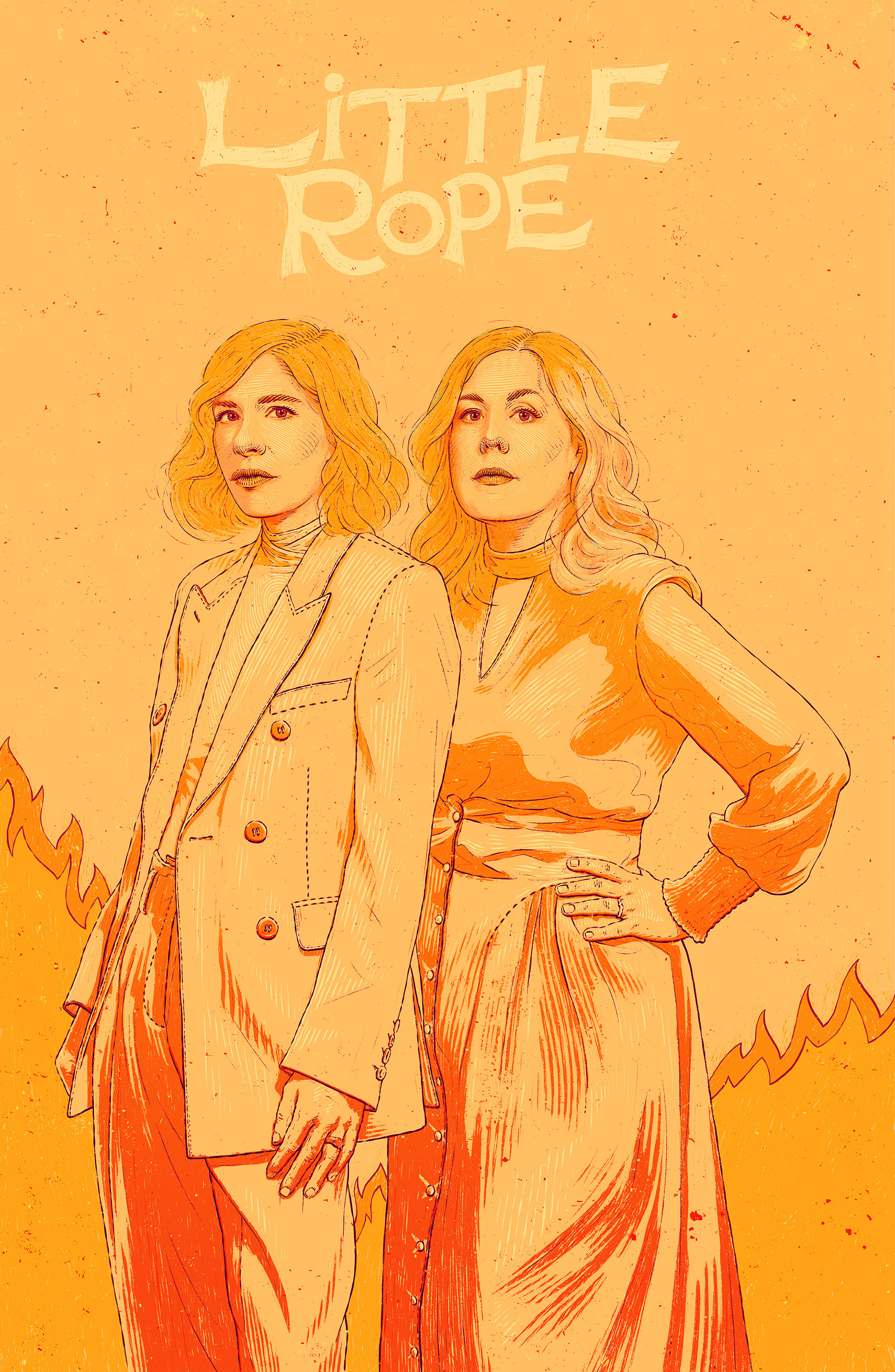 Portrait of Corin Tucker and Carrie Brownstein of Sleater-Kinney for Mojo Magazine.
