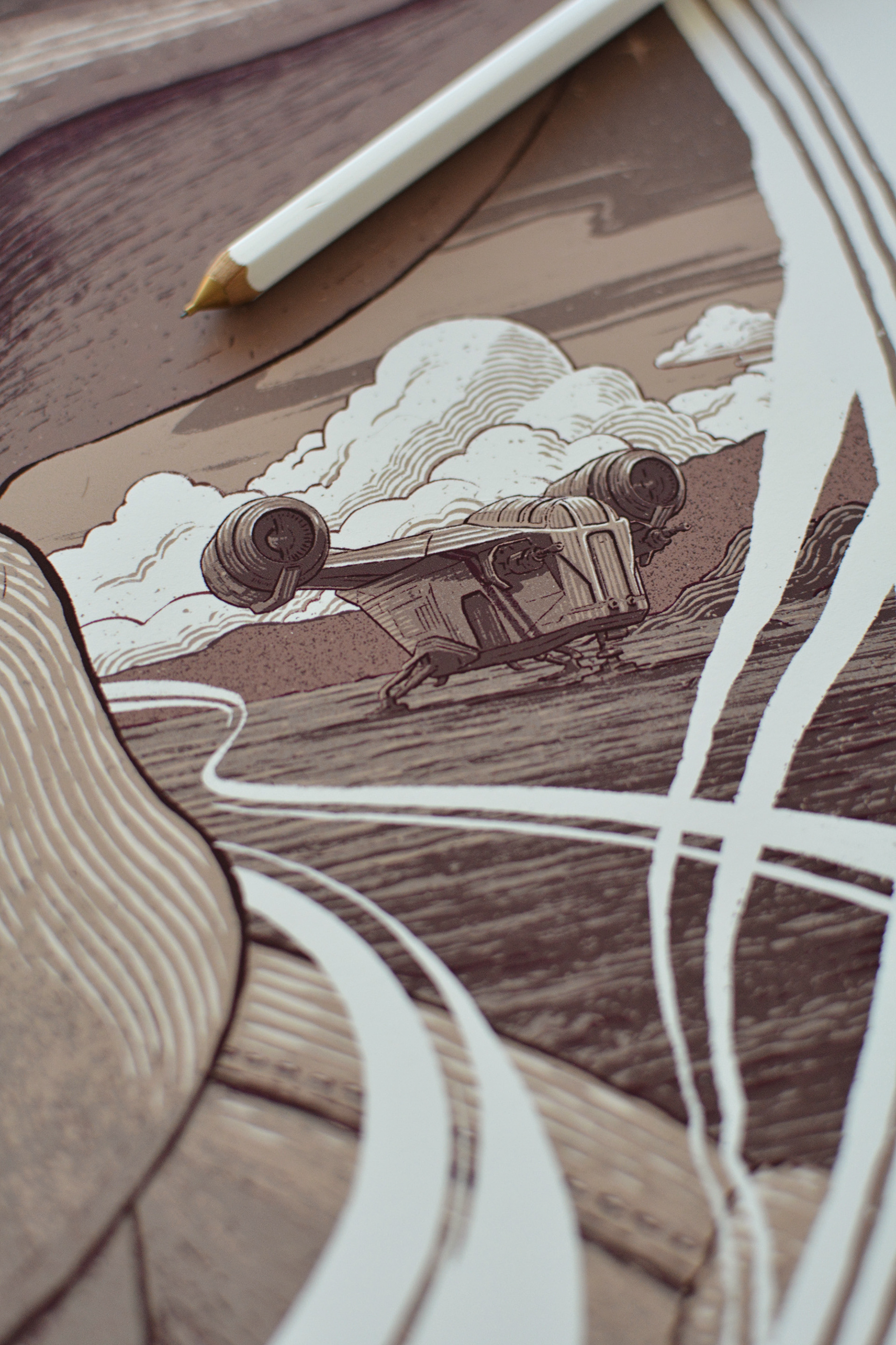 Officially licensed Mandalorian / Star Wars screenprints made for Bottleneck Gallery. The prints are released in conjunction with Acme Archives, the official Star Wars licensee.