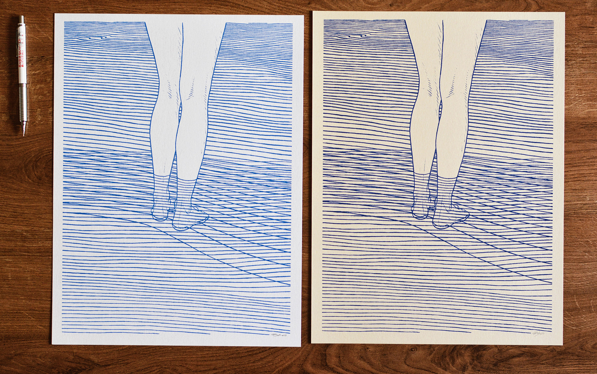 1 colour screen print printed on 230gr Stardream metallic paper (Opal and Crystal variants)