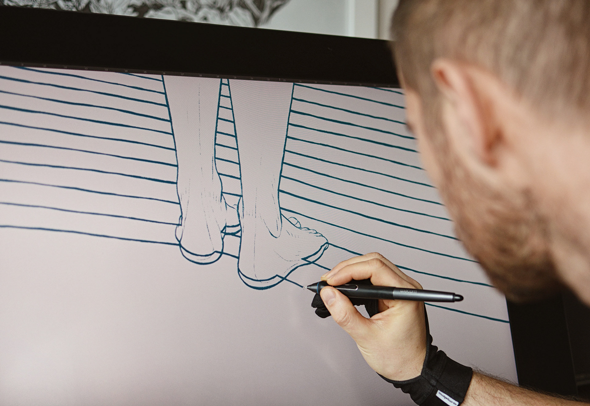 The basic illustration was drawn with Wacom CintiQ in PS.