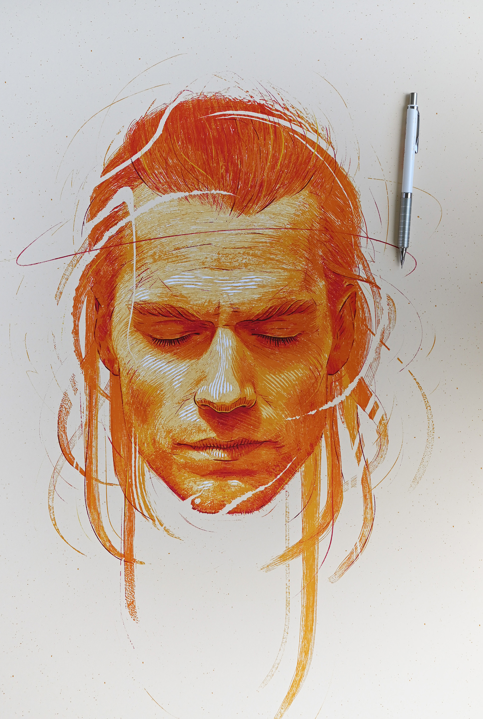 Portaits of Henry Cavill and Anya Chalotra created before the premiere of the third season of The Witcher.