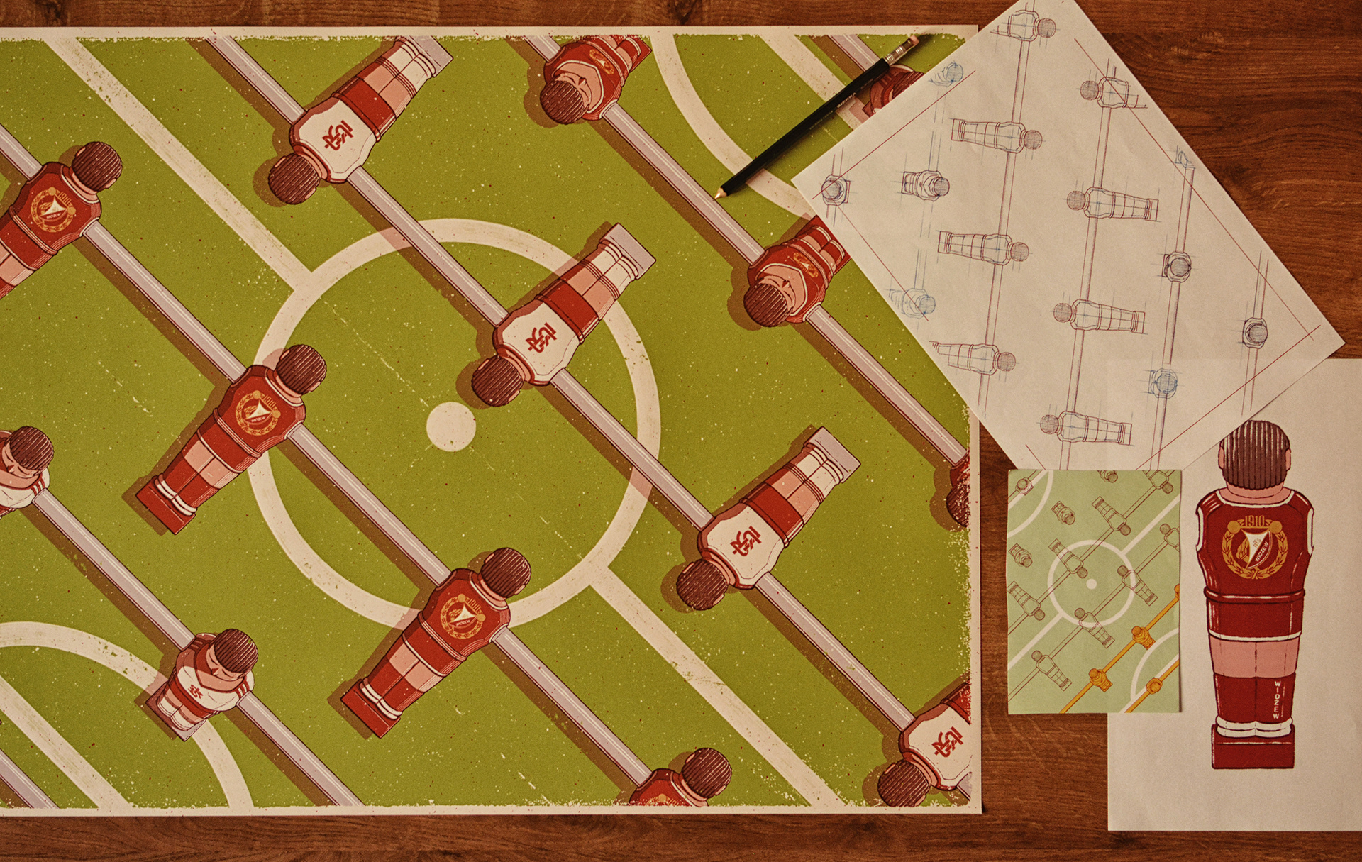 I was asked to illustrate the word for table soccer and I decided to portray two local clubs (ŁKS and Widzew).