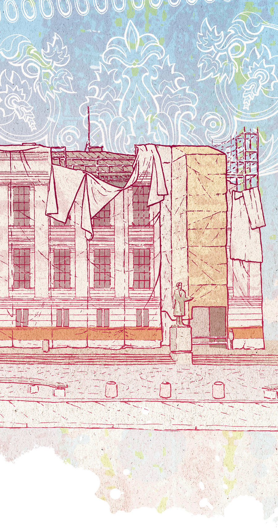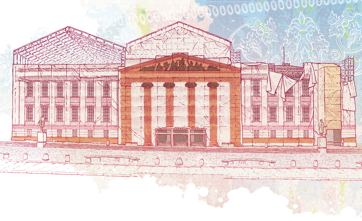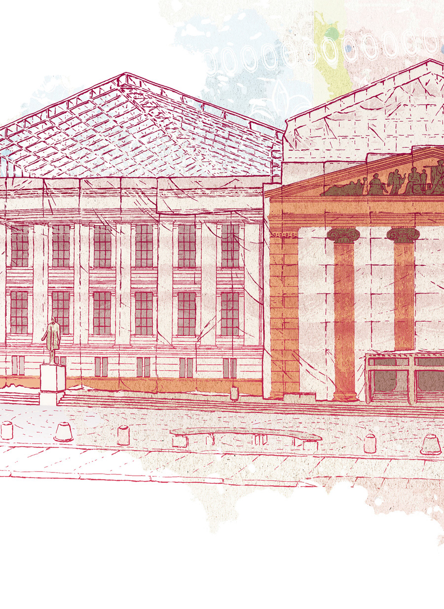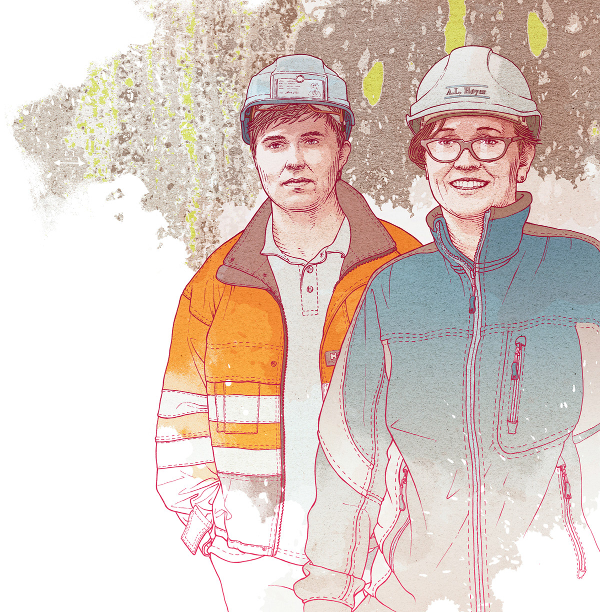 A double portrait and an illustration for a Norwegian magazine "Åpent Rom" published by Statsbygg - the Norwegian government's key advisor in construction and property affairs.