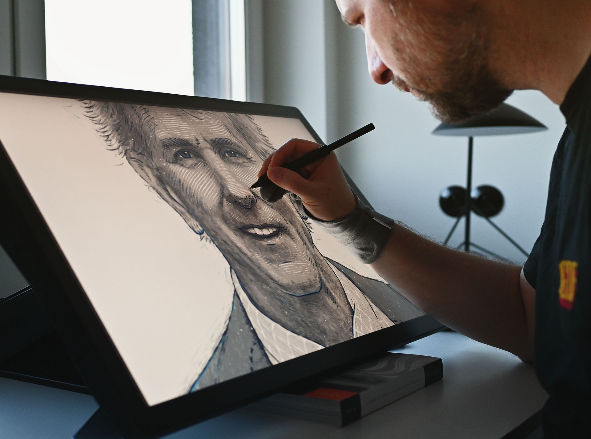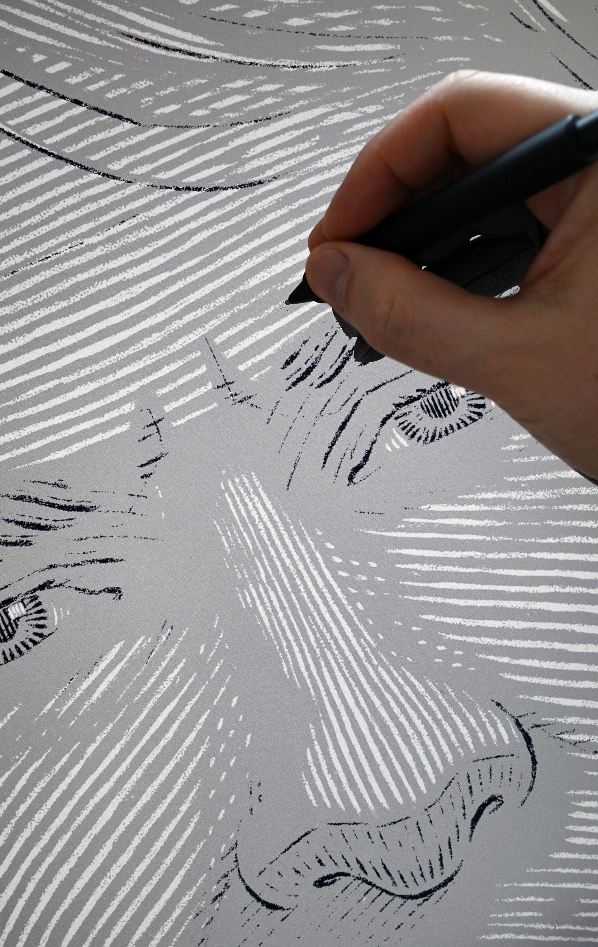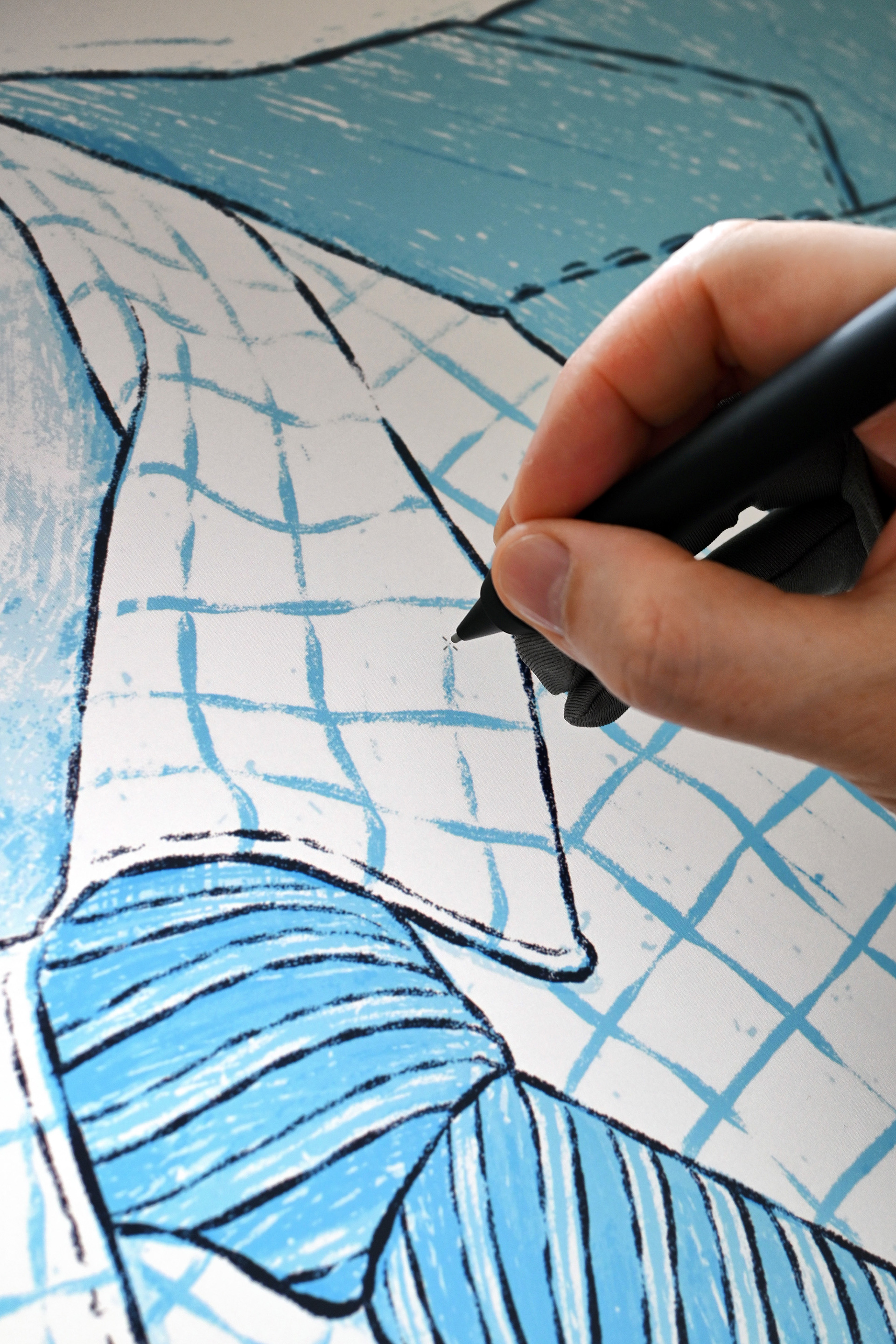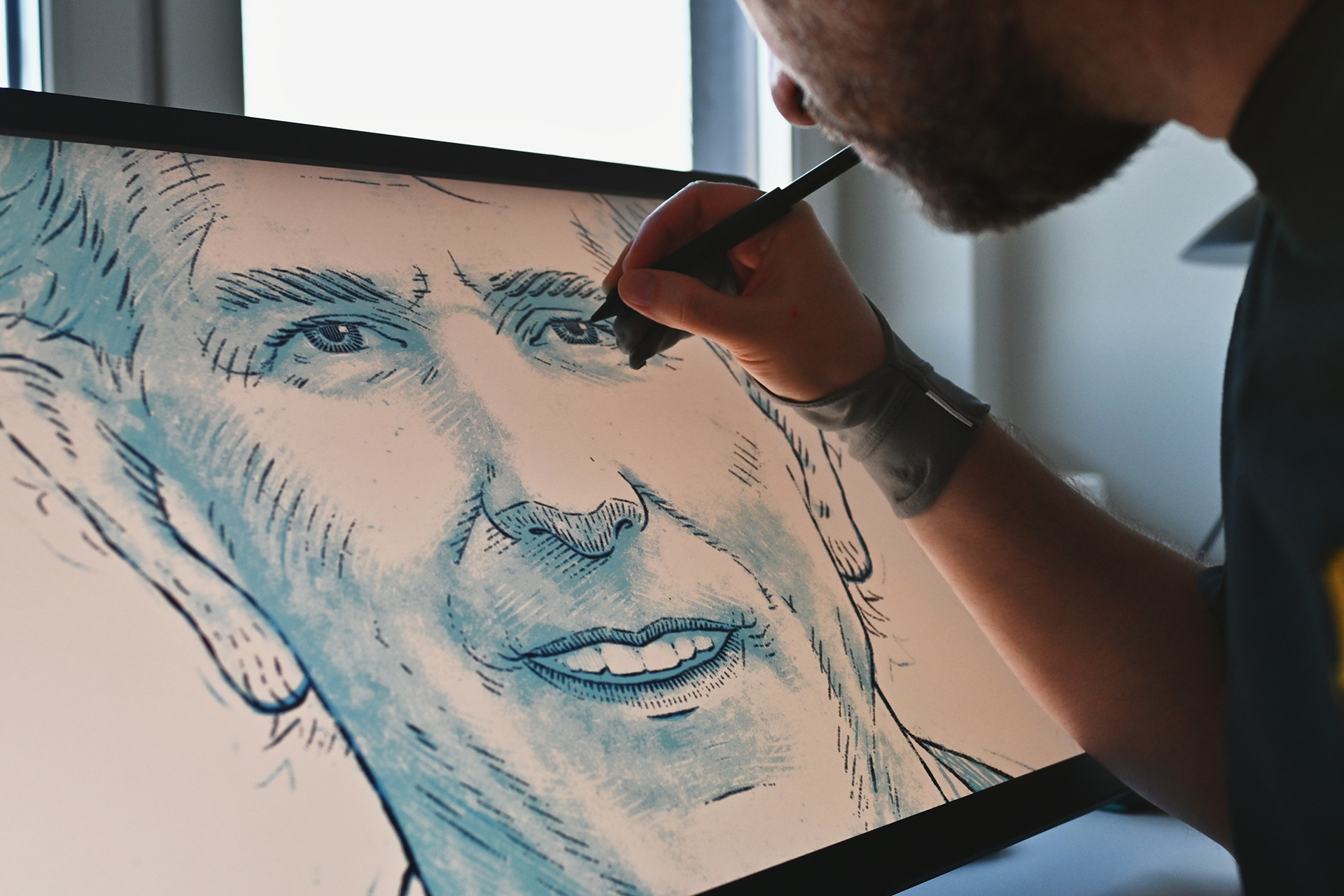The illustrations were drawn and coloured in PS with Wacom CintiQ Pro.