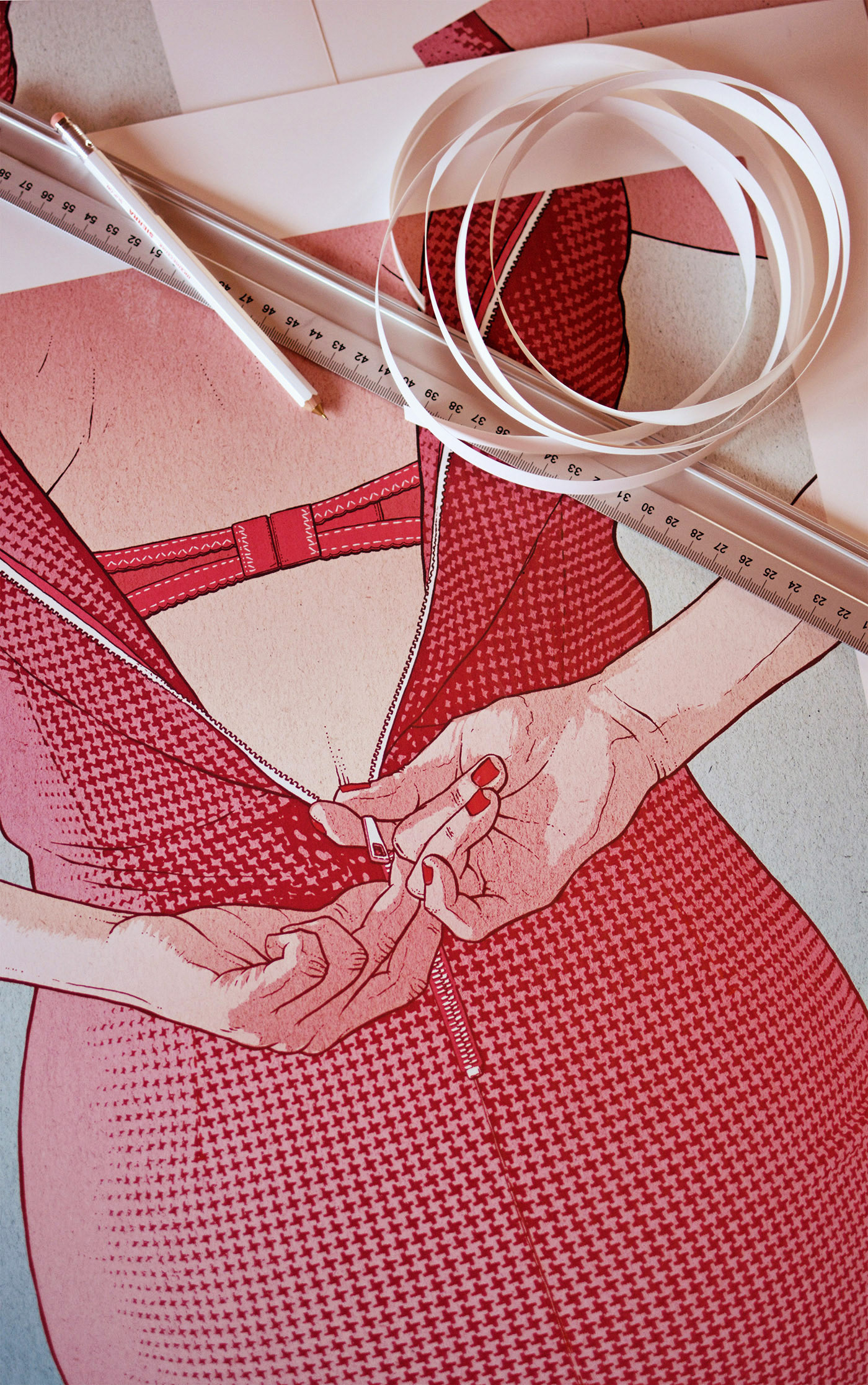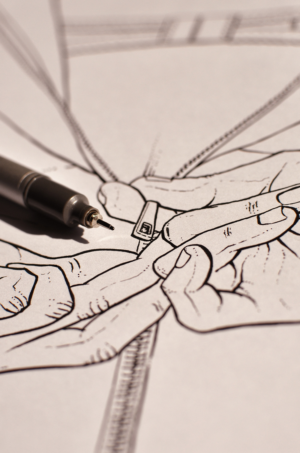 The illustrations were hand drawn with pencil, inked with Copic Multiliner SP and coloured in PS.